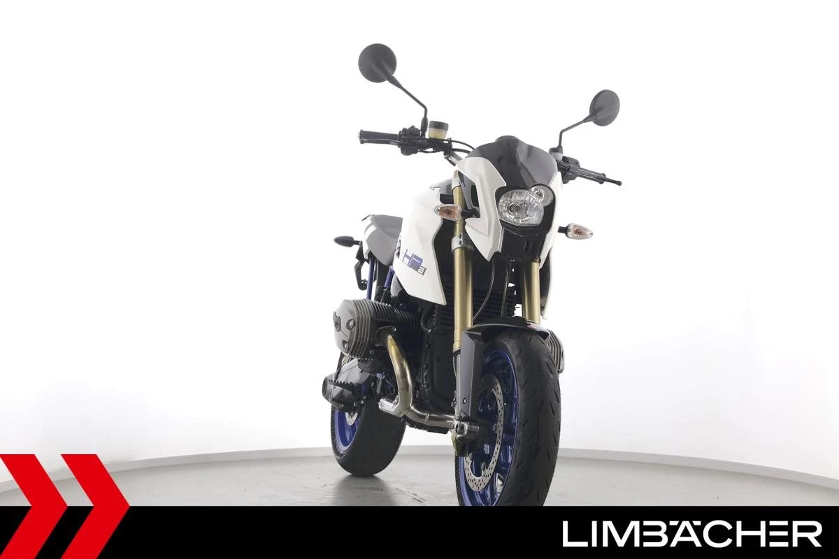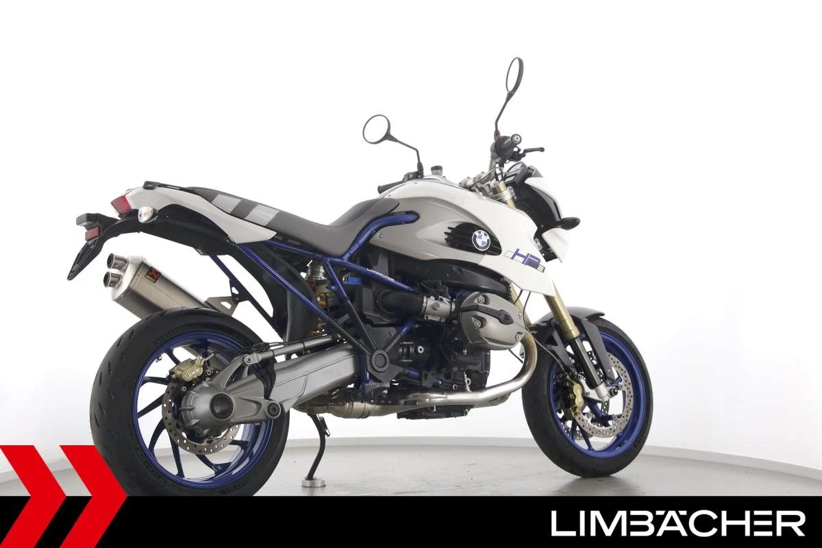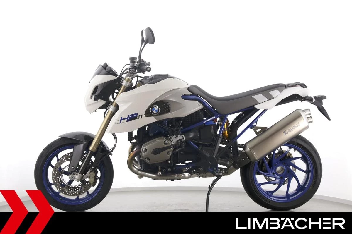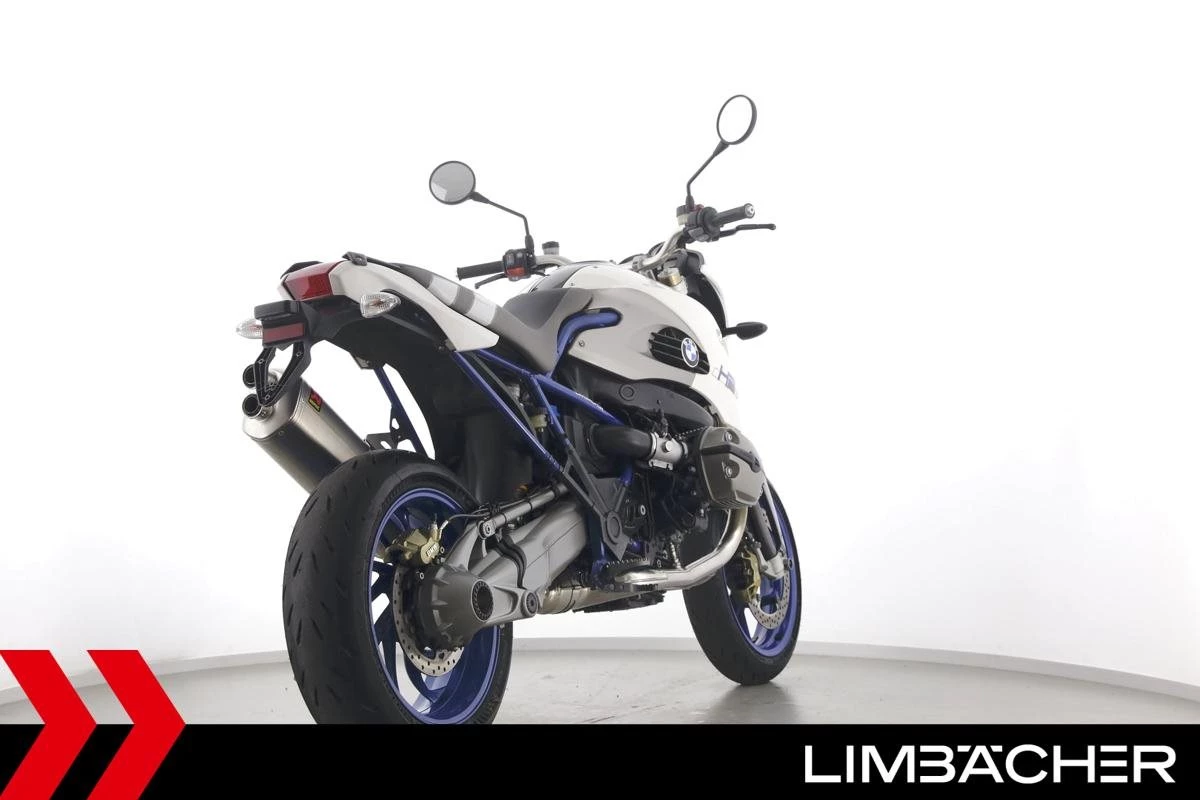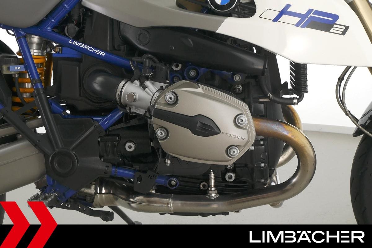 Eine BMW HP2 Megamoto in sehr gepflegtem Zustand u.a. mit Akrapovic-Endschalldämpfer und Öhlins-Federbein.