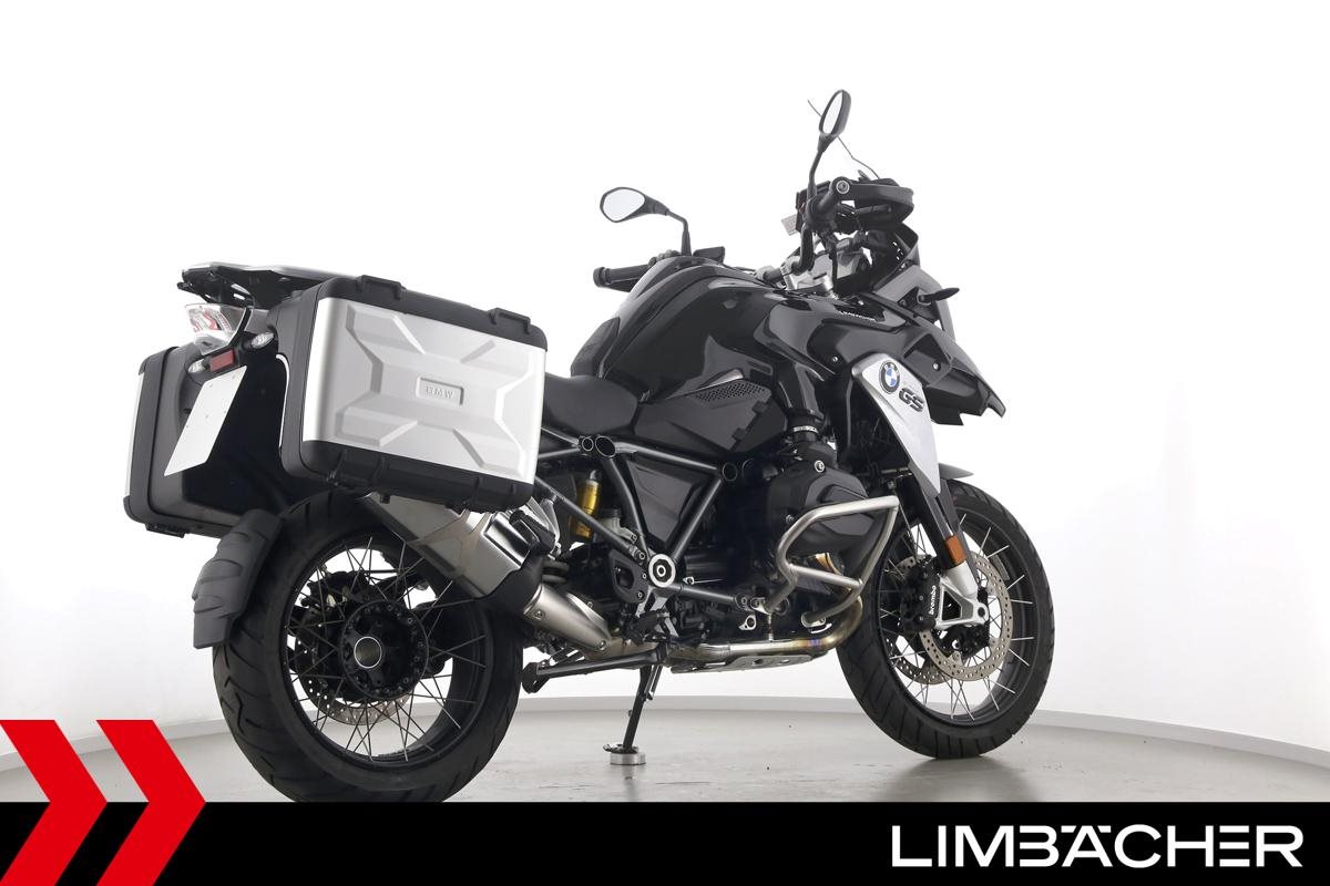 Eine scheckheftgepflegte BMW R 1200 GS LC Triple Black aus zweiter Hand in gepflegtem Zustand u.a. mit BMW-Variokoffer-System gleichschließend und Sturzbügel.