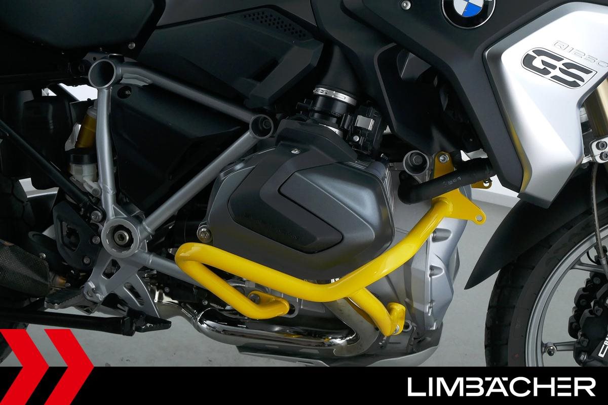 Eine scheckheftgepflegte BMW R 1250 GS in Topzustand u.a. mit Komfort- Touring- und Dynamik-Paket sowie Sturzbügel gelb.
