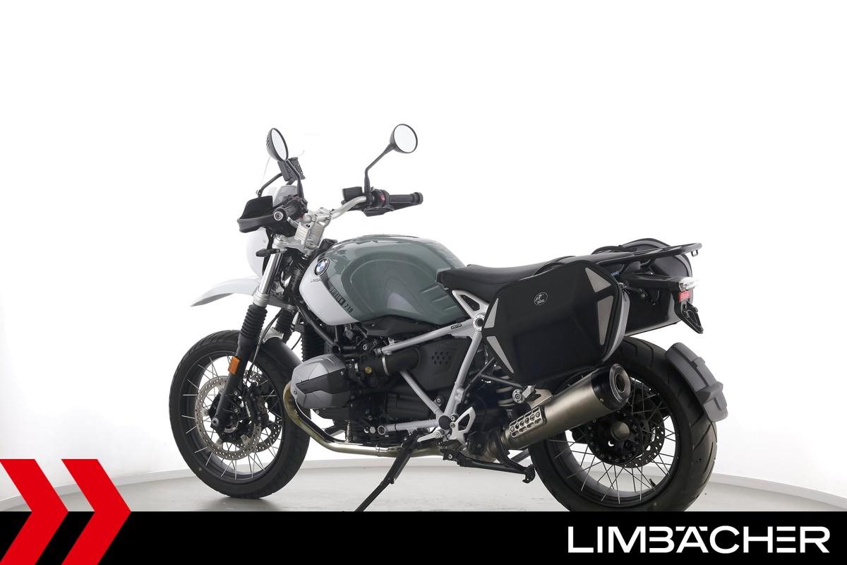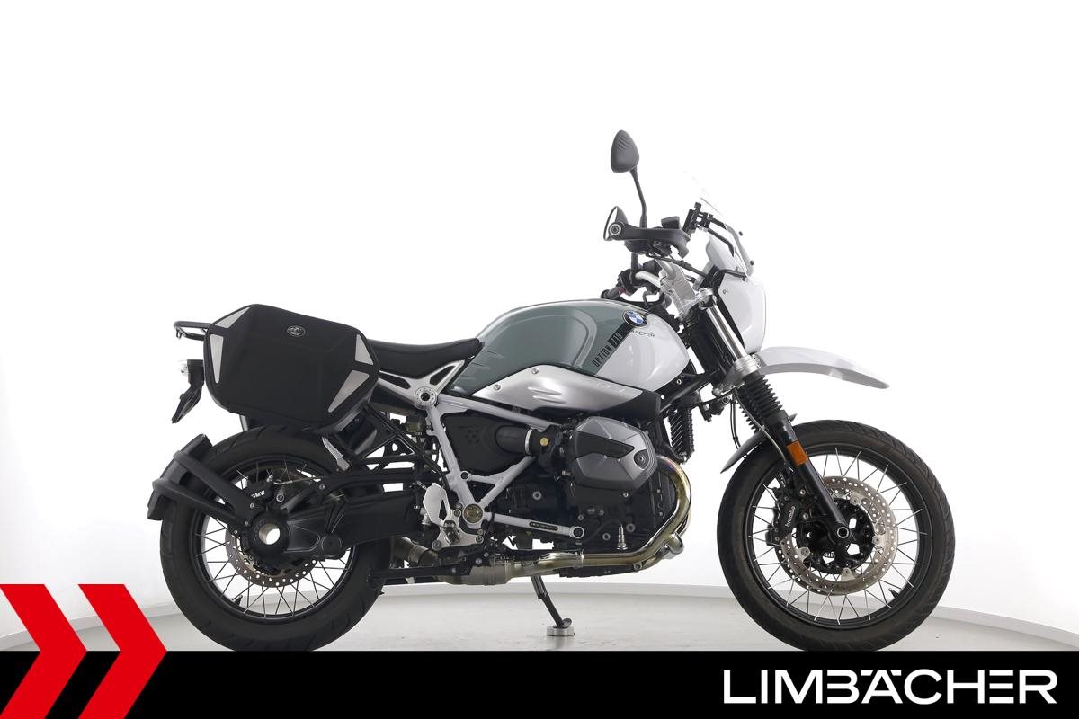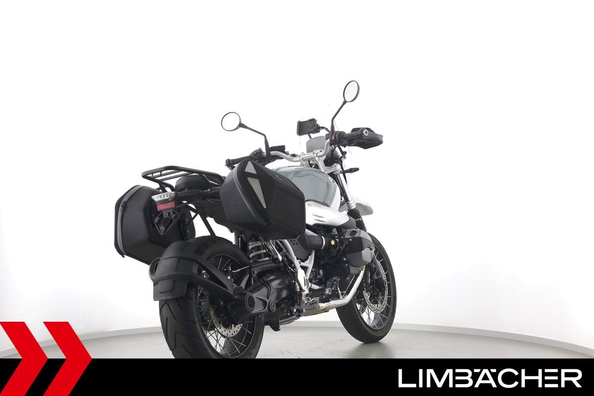 Eine scheckheftgepflegte BMW R nineT Urban G/S aus zweiter Hand in sehr gepflegtem Zustand u.a. mit Koffern und Heckträger von Hepco Becker sowie Griffschutz.