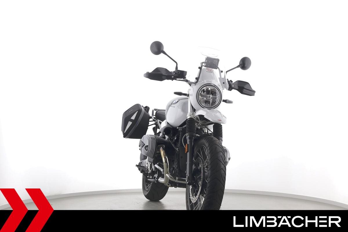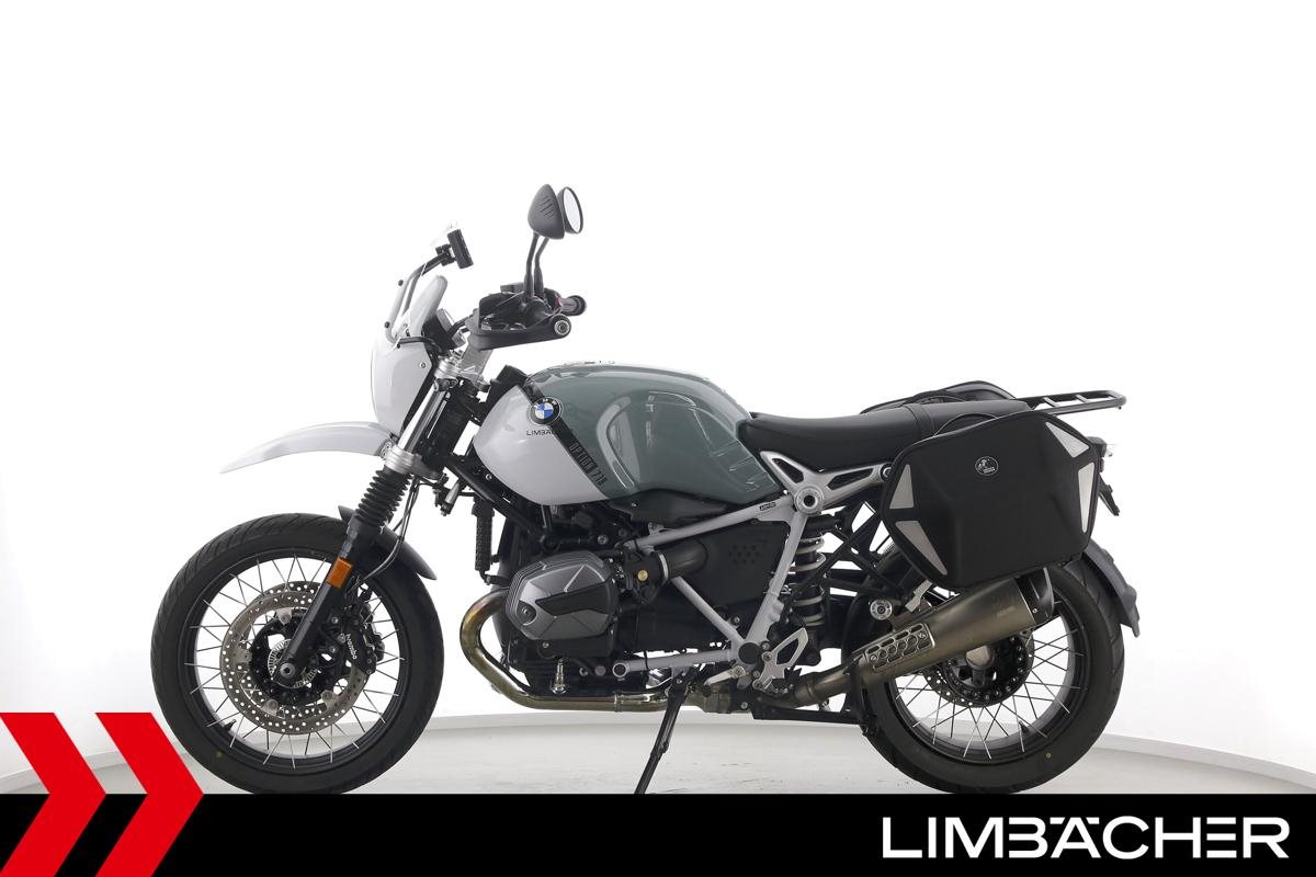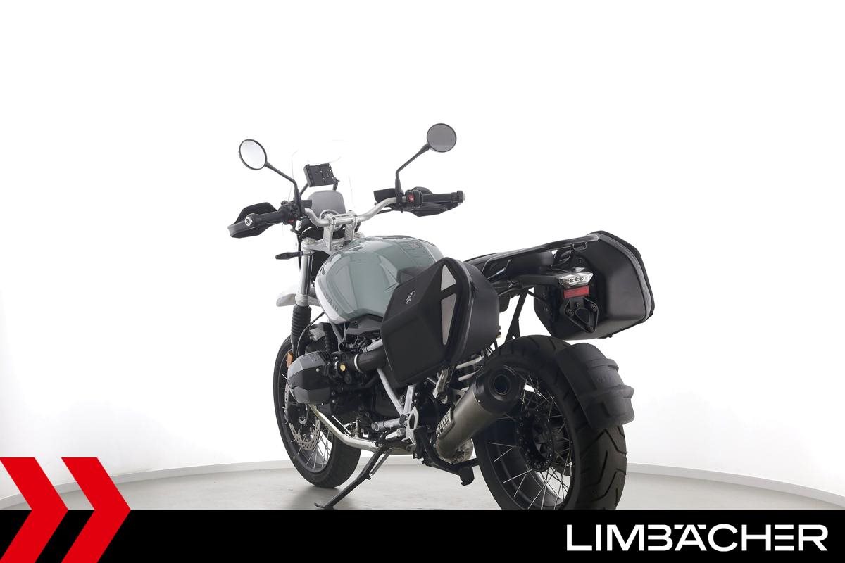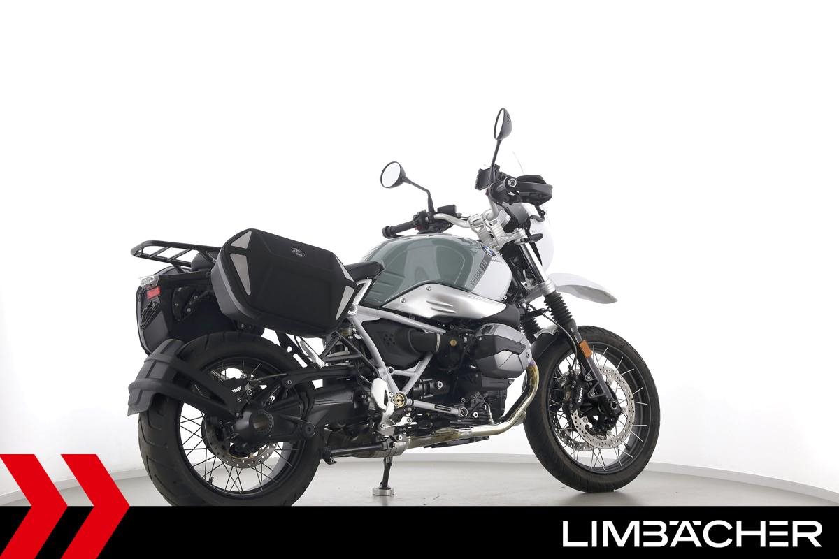 Eine scheckheftgepflegte BMW R nineT Urban G/S aus zweiter Hand in sehr gepflegtem Zustand u.a. mit Koffern und Heckträger von Hepco Becker sowie Griffschutz.
