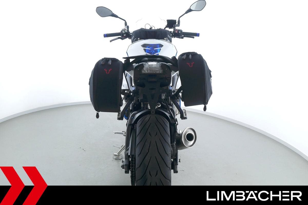 Eine scheckheftgepflegte BMW S 1000 R in gepflegtem Zustand u.a. mit kurzem Kennzeichenhalter sowie Softbags incl Halterung.