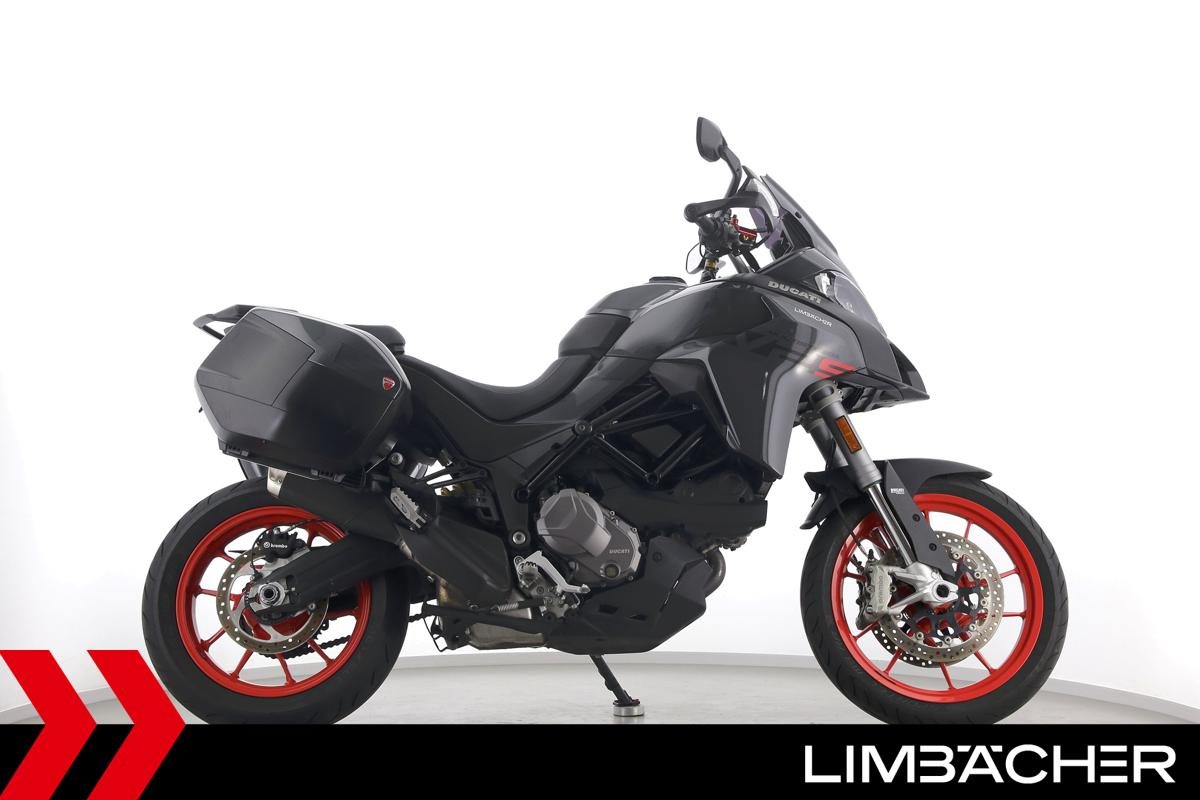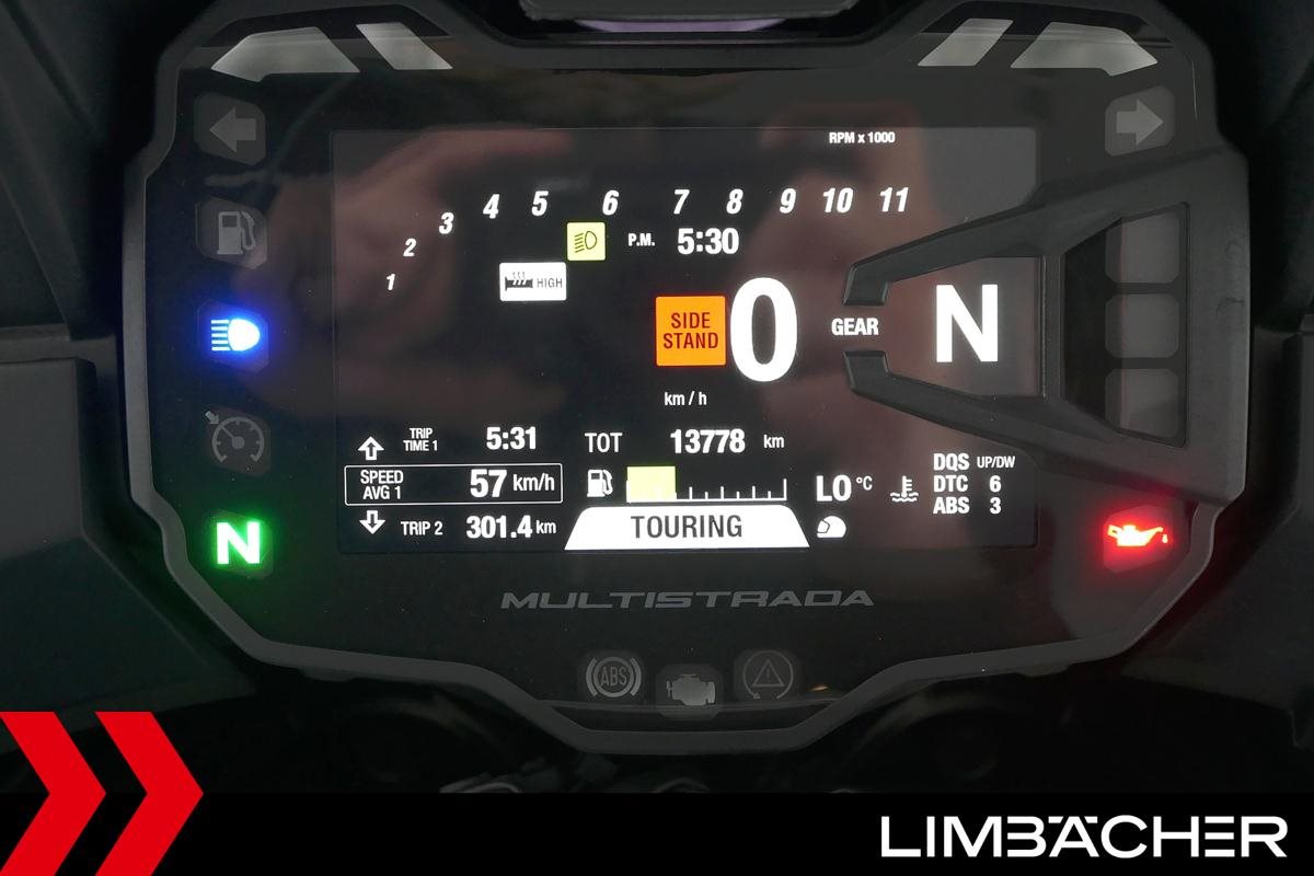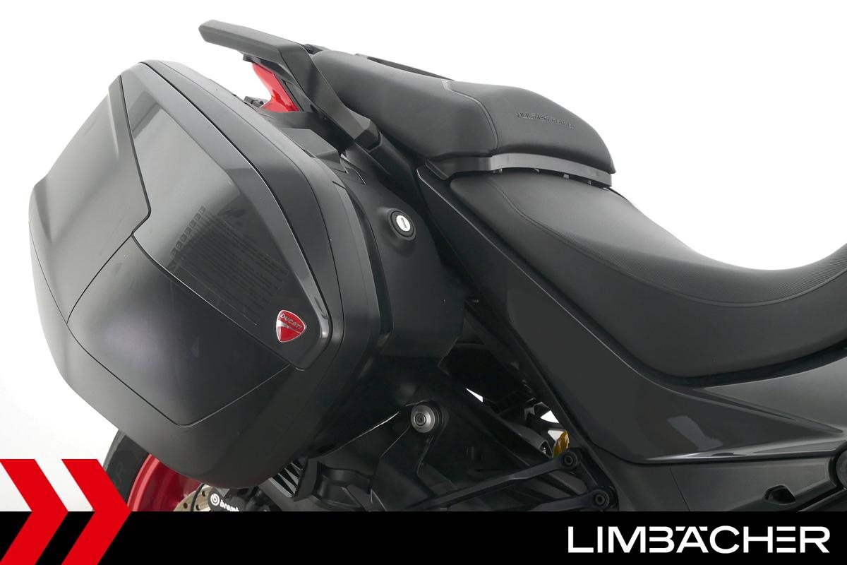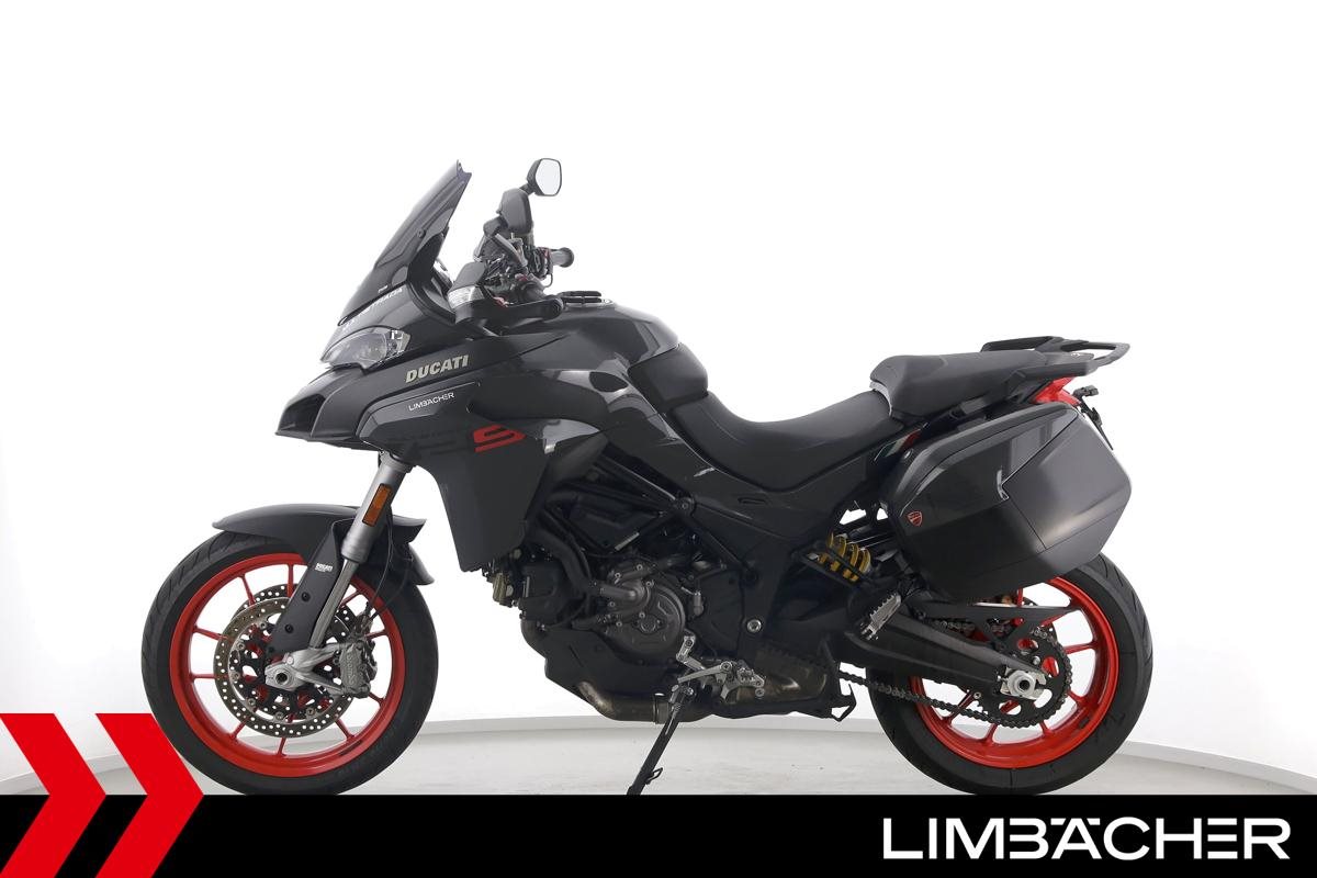 Eine Ducati Multistrada V2 S Travel aus zweiter Hand in sehr gepflegtem Zustand u.a. mit Ducati-Koffersystem und kurzem Kennzeichenhalter.