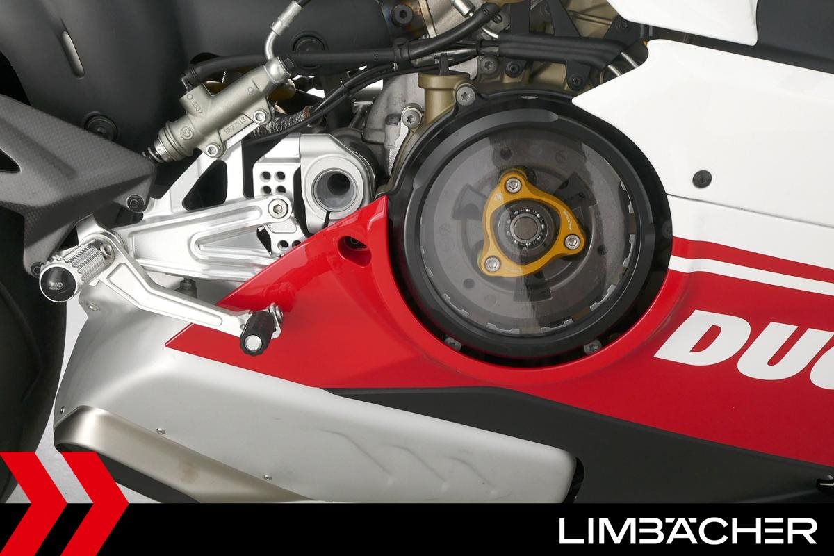 Eine scheckheftgepflegte Ducati Panigale V4 Speciale aus zweiter Hand in gepflegtem Zustand u.a. mit Öhlins-Fahrwerk sowie transparentem Kupplungsdeckel.