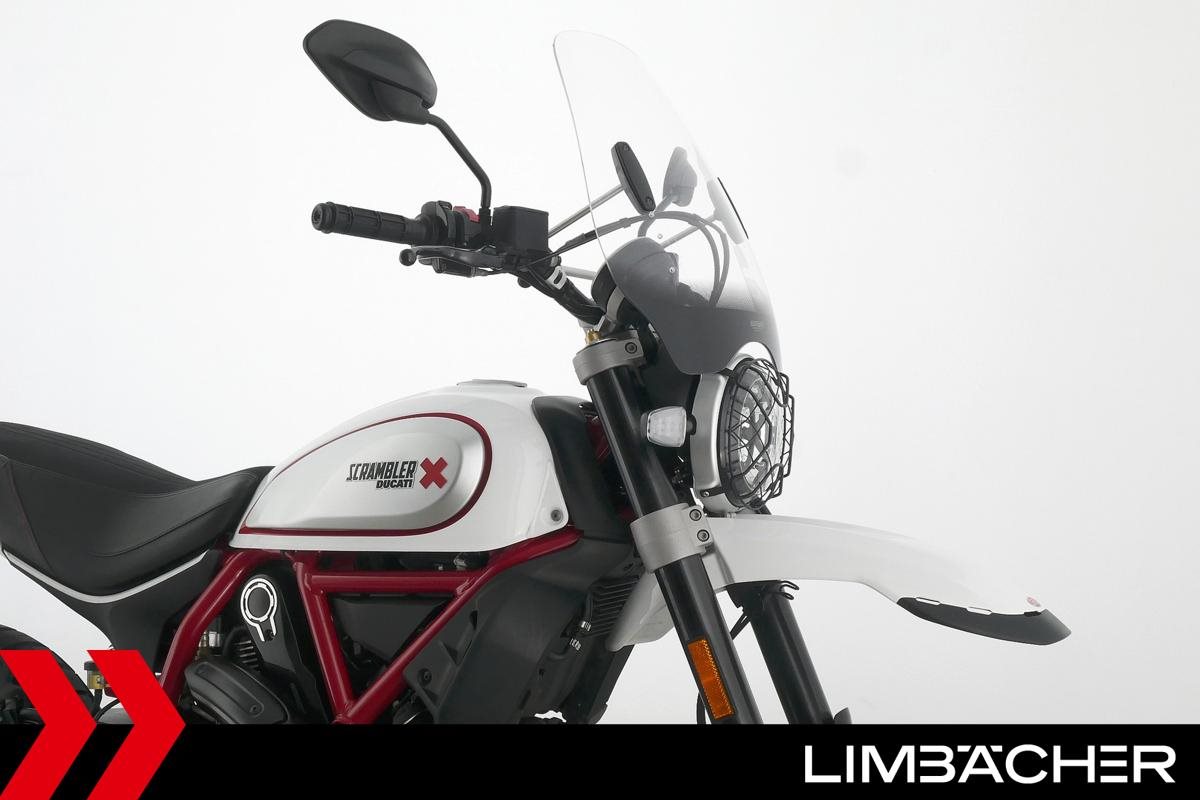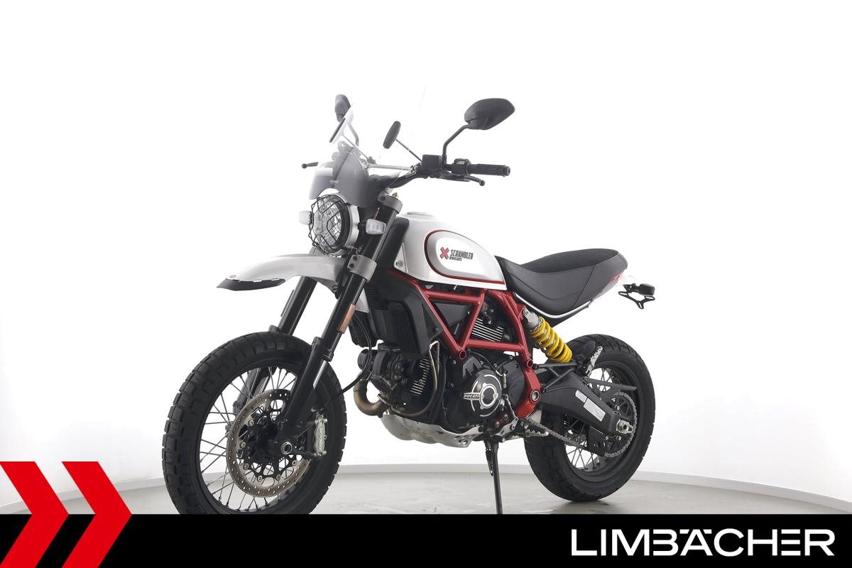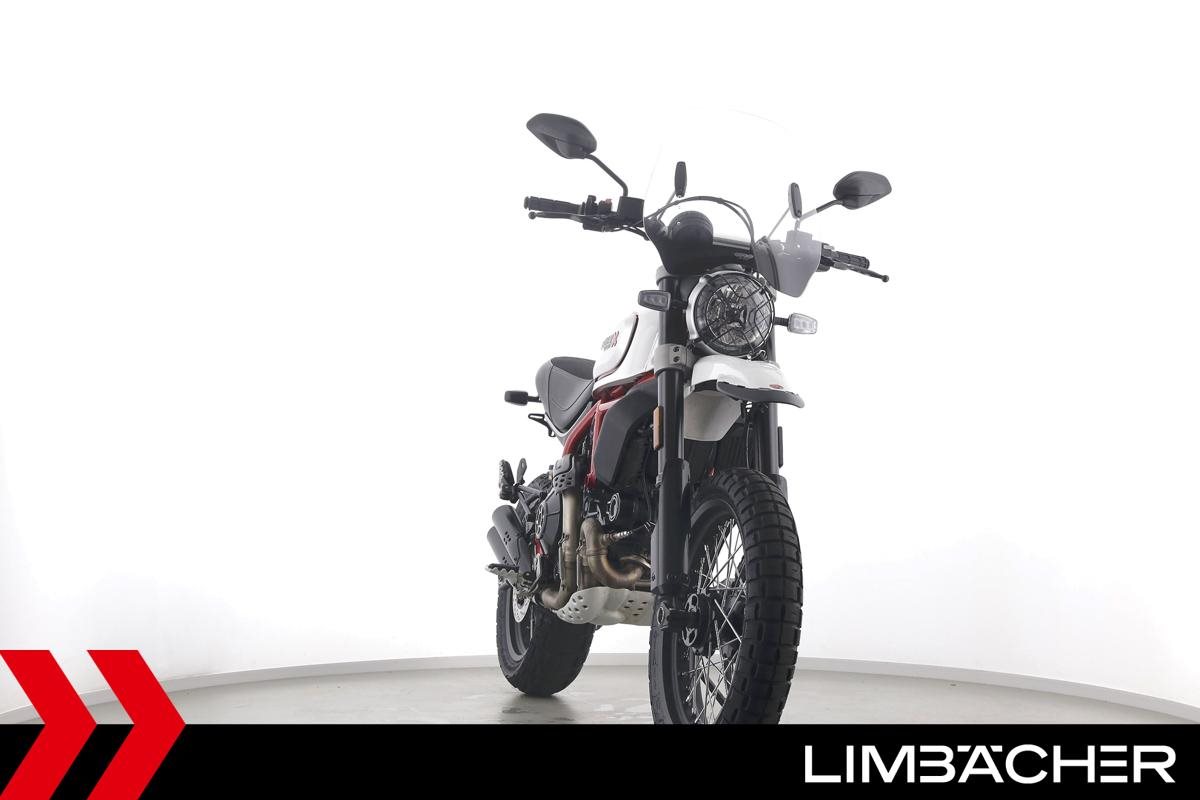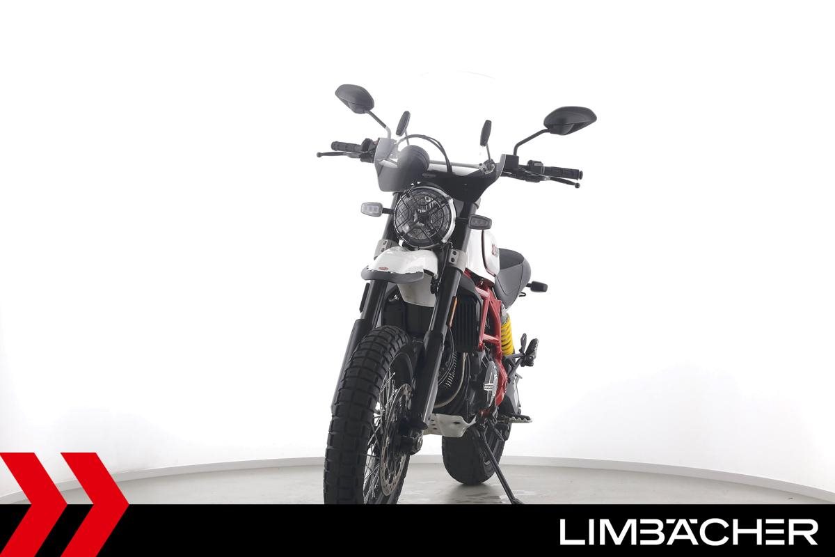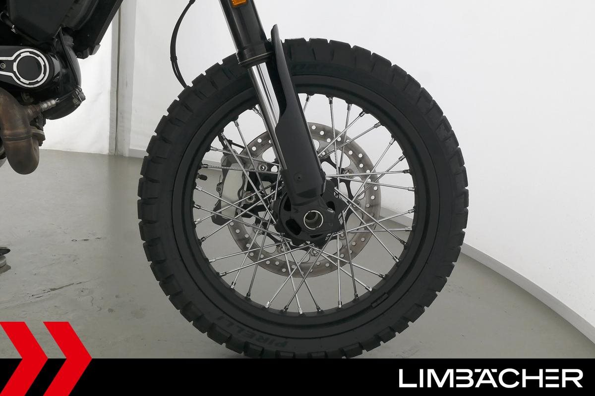 Eine scheckheftgepflegte Ducati Scrambler Desert Sled aus zweiter Hand in sehr gepflegtem Zustand u.a. mit kurzem Kennzeichenhalter sowie großem Windschild.