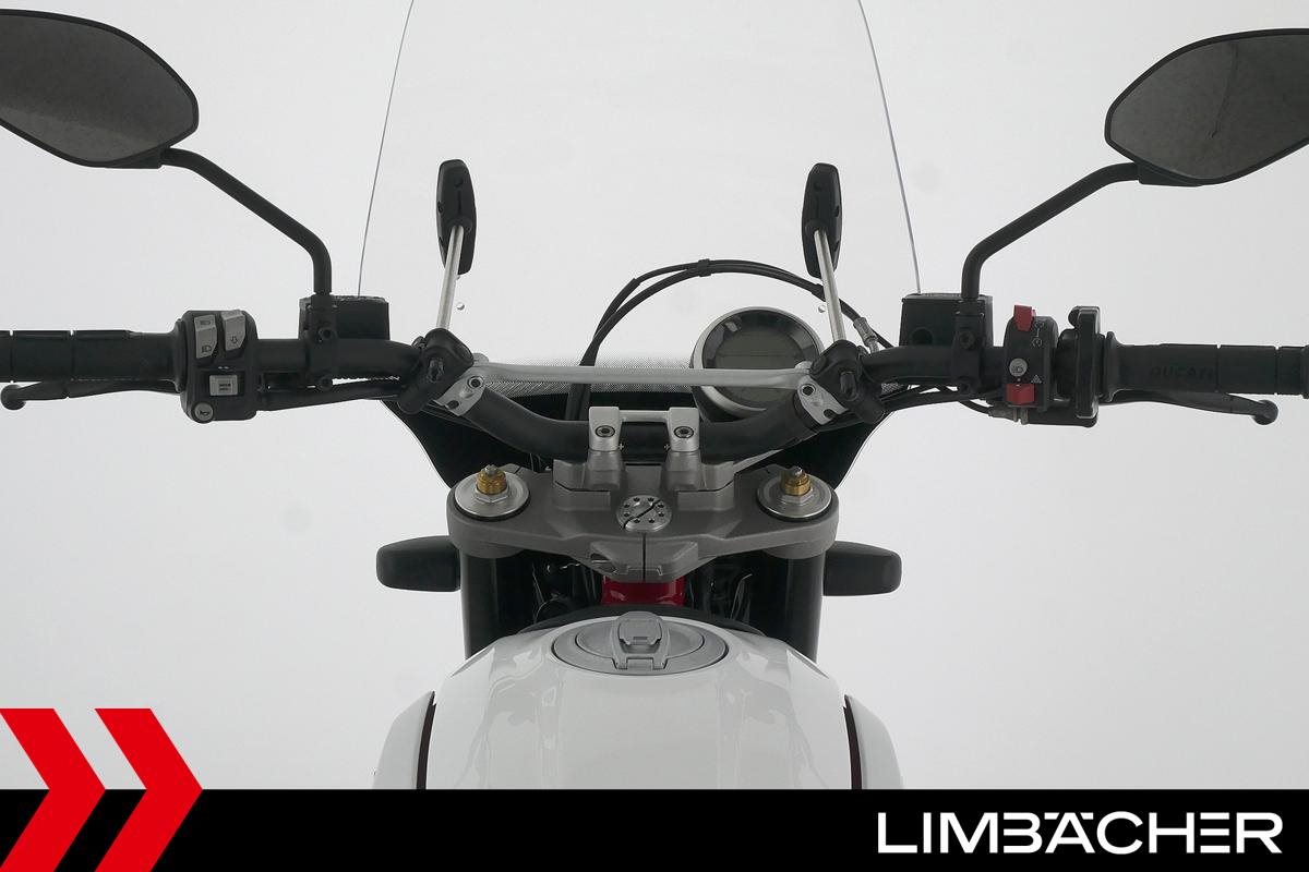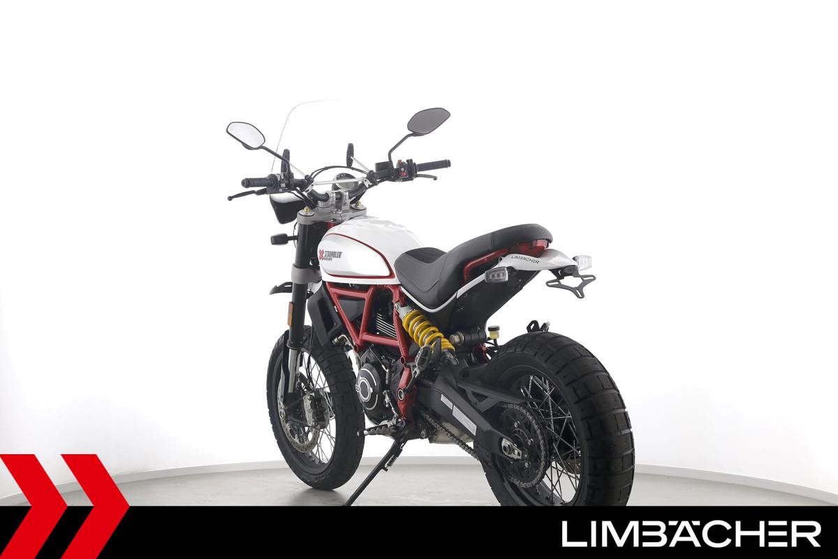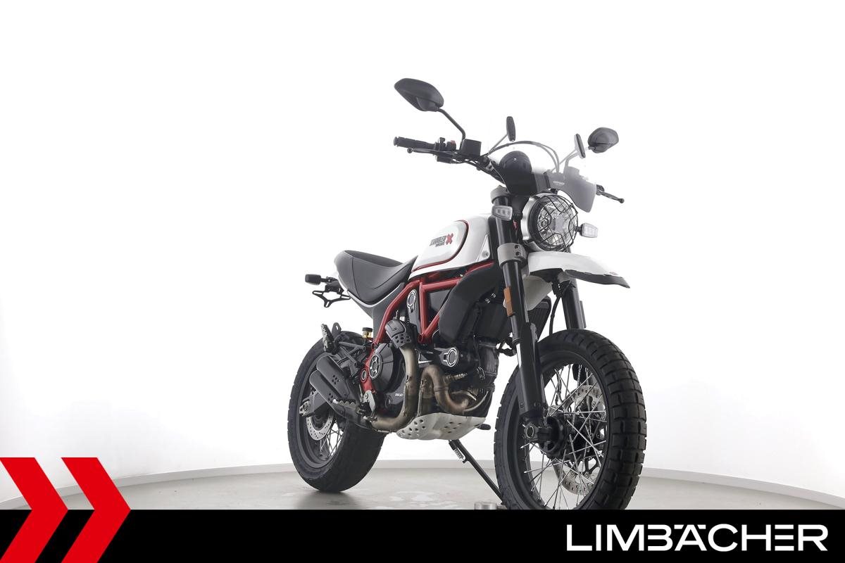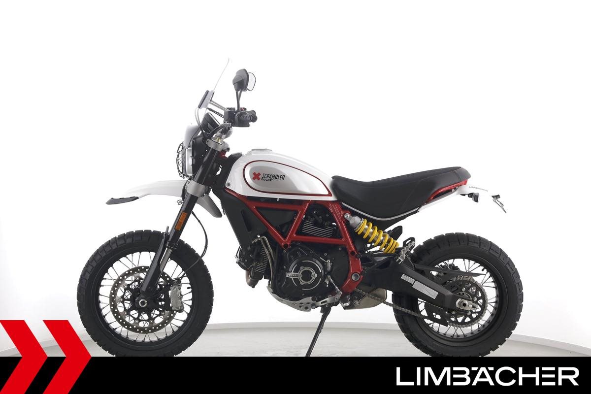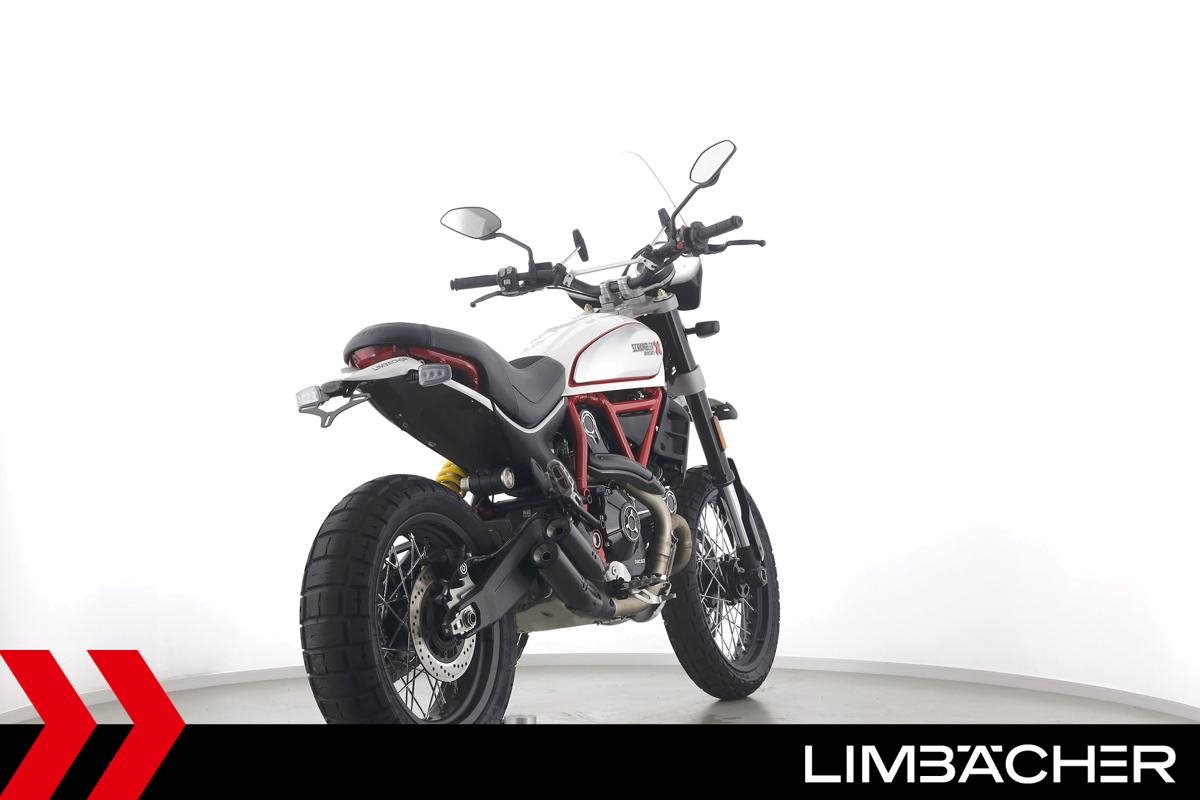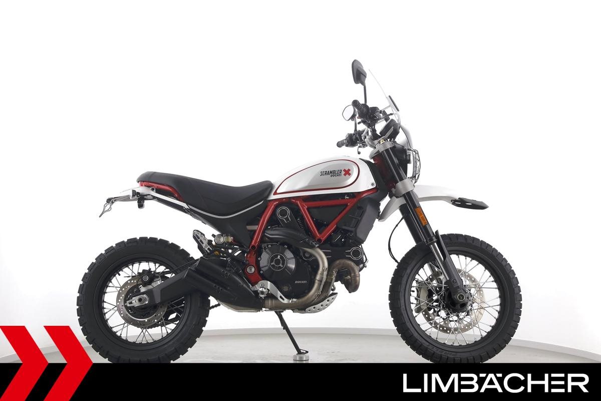 Eine scheckheftgepflegte Ducati Scrambler Desert Sled aus zweiter Hand in sehr gepflegtem Zustand u.a. mit kurzem Kennzeichenhalter sowie großem Windschild.