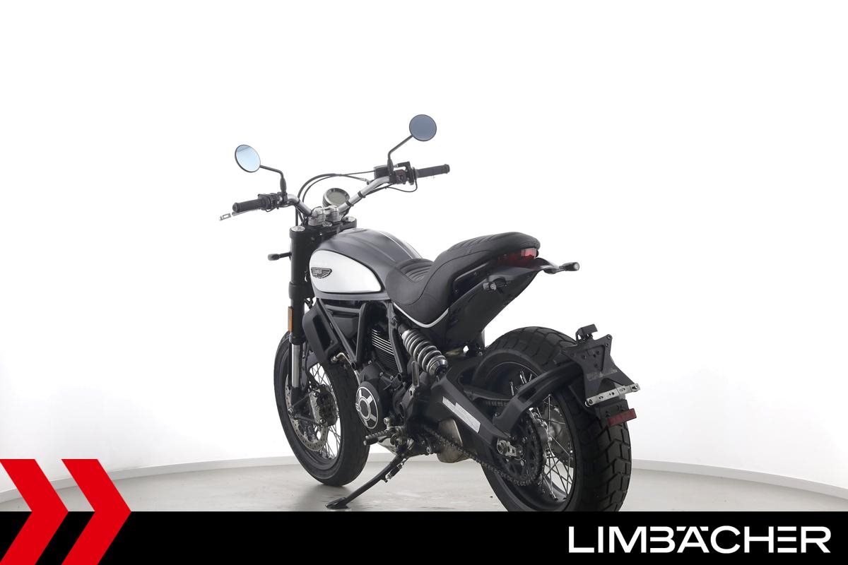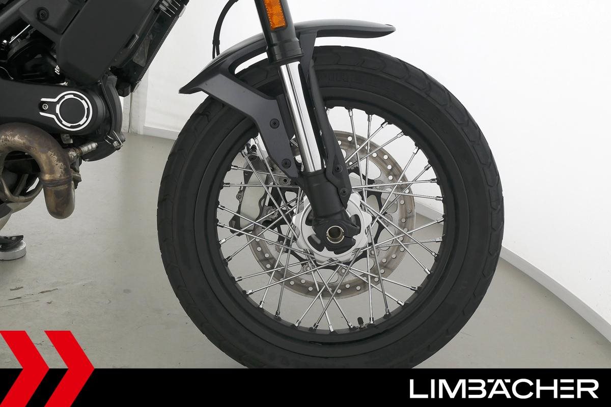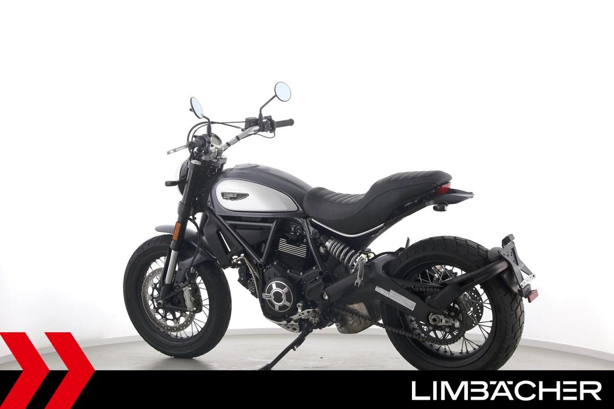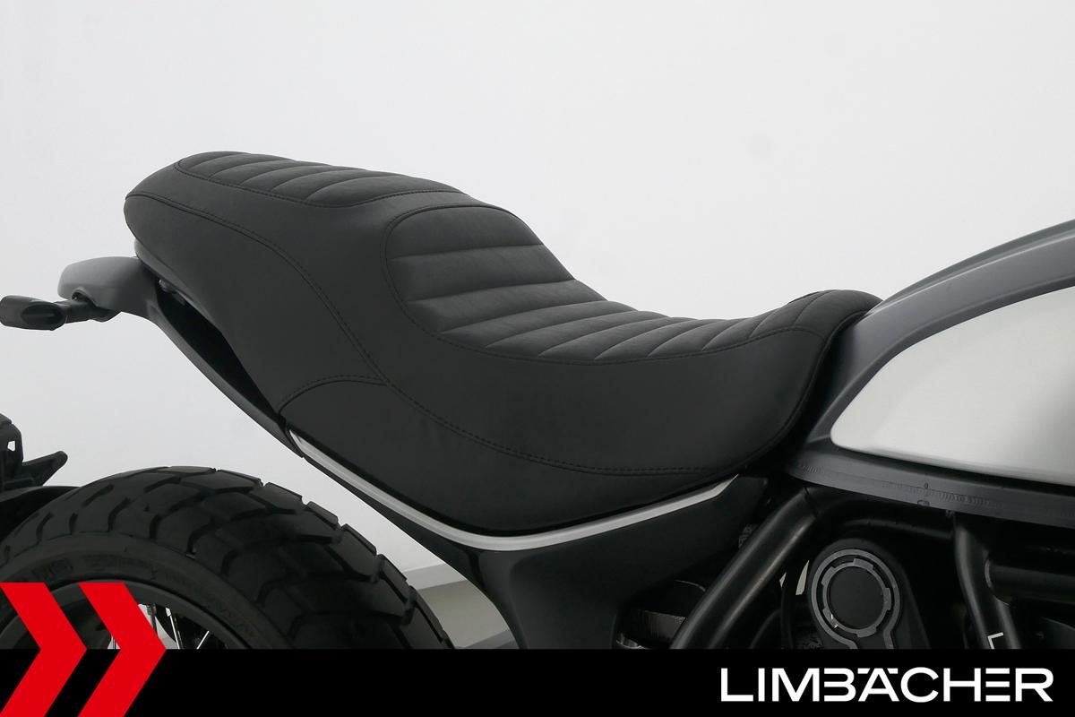Eine scheckheftgepflegte Ducati Scrambler Street Classic aus erster Hand in sehr gepflegtem Zustand u.a. mit Drosselung auf 34 kW und Akrapovic-Endschalldämpfer.