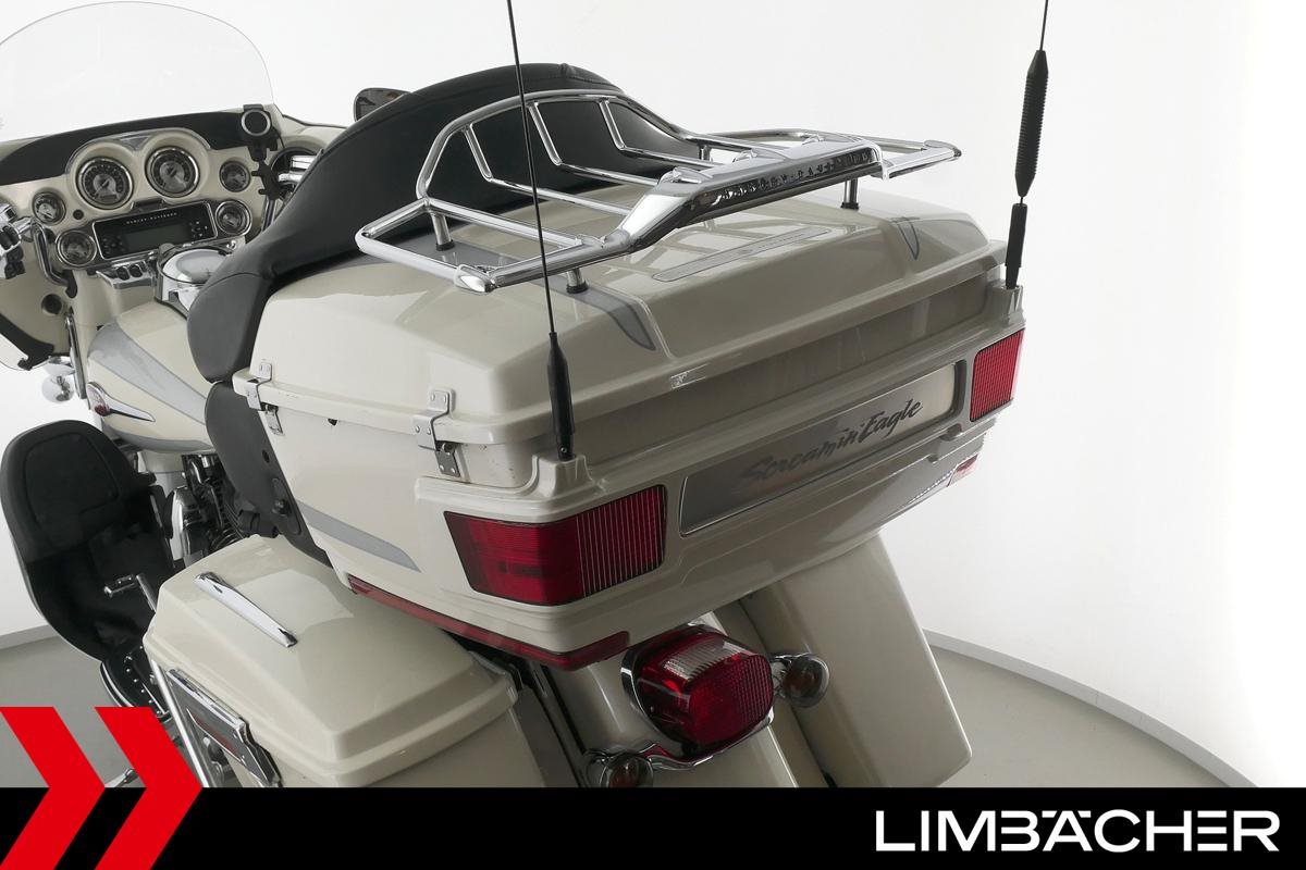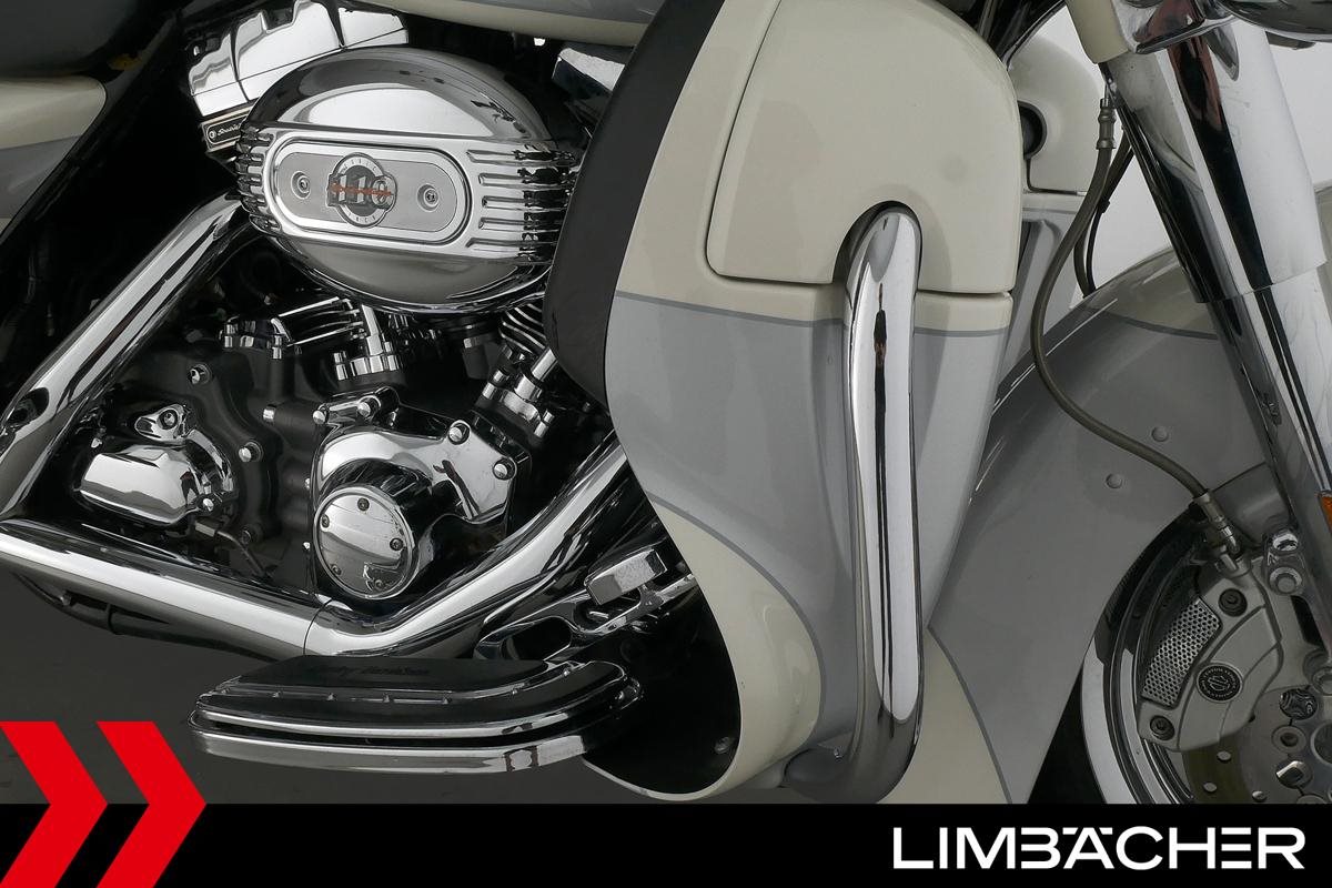 Eine Harley-Davidson CVO Ultra Classic Electra Glide in gepflegtem Zustand u.a. mit HD-Koffersystem incl. Topcase gleichschliessend sowie Batwing-Verkleidung.