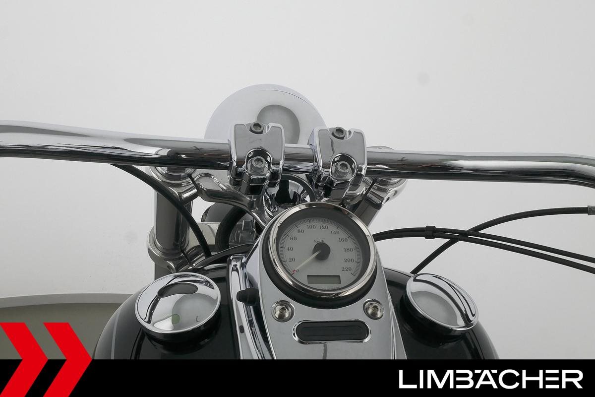 Eine Harley-Davidson Dyna Wide Glide FXDWG aus zweiter Hand in gepflegtem Zustand u.a. mit Kodlin "Radikal"-Endschalldämpfer sowie Thunderbike "Hollywood" Sonderlenker.