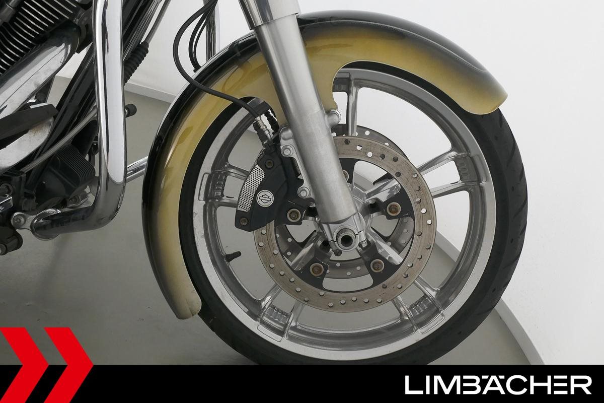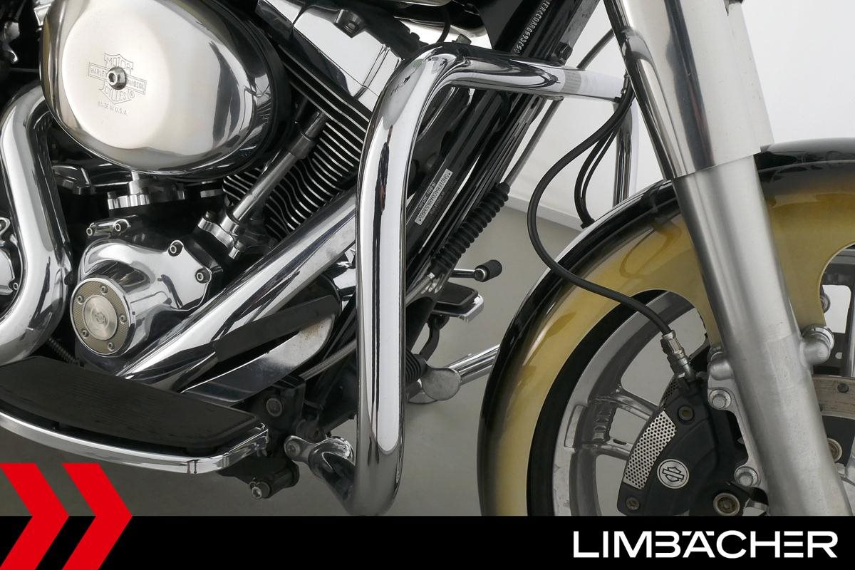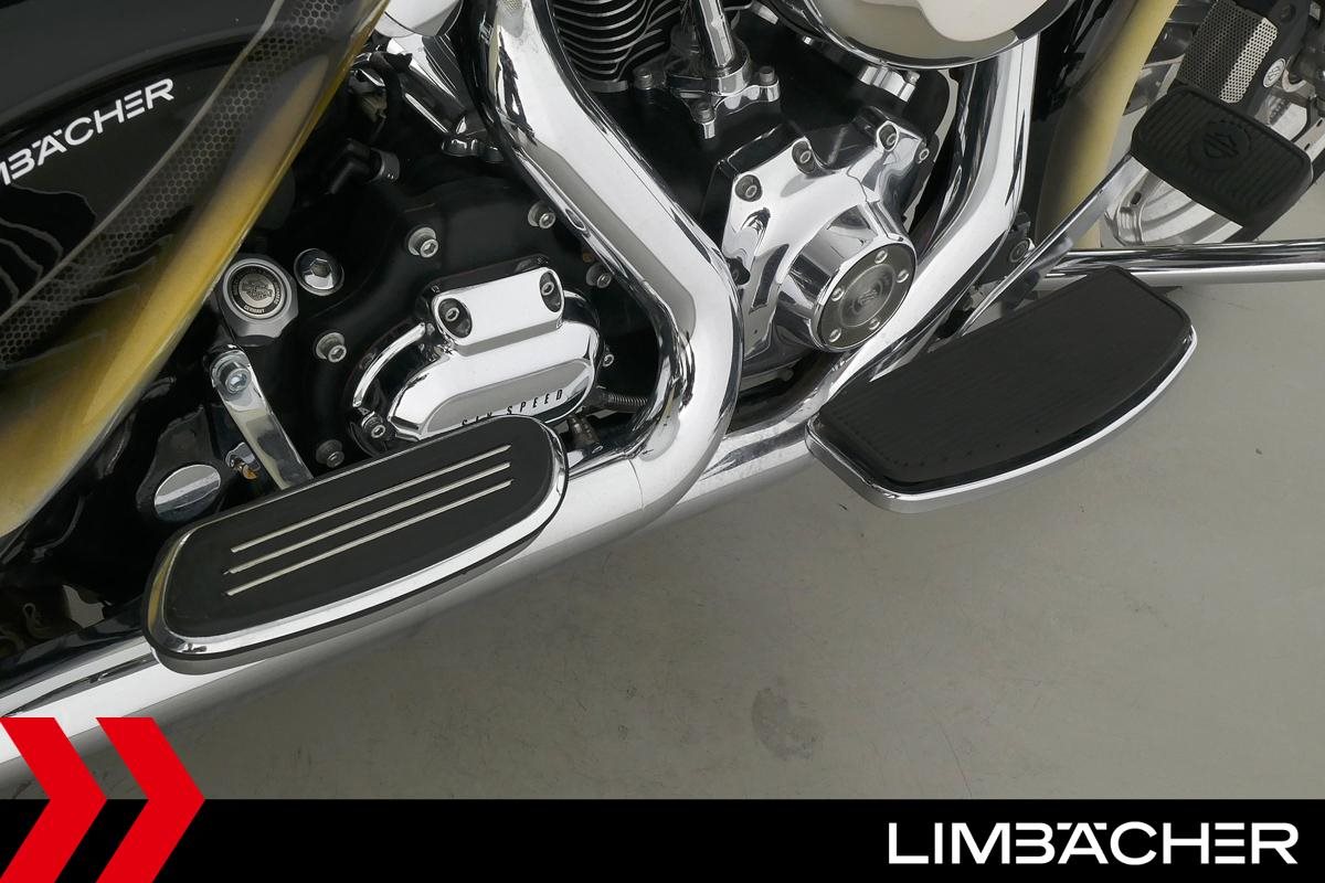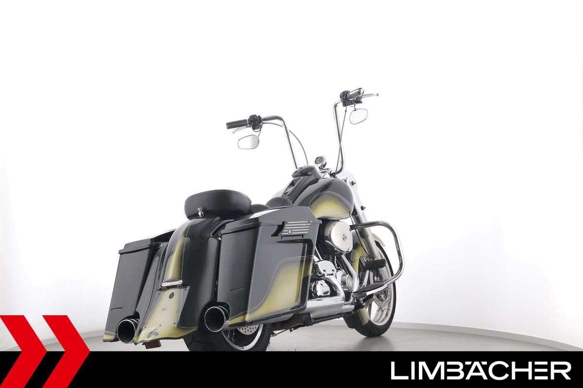 Eine scheckheftgepflegte Harley-Davidson Road King Classic FLHRC Chicano in sehr gepflegtem Zustand u.a. mit Jekill&Hyde-Klappenauspuff sowie Öhlins-Federbeinen.
