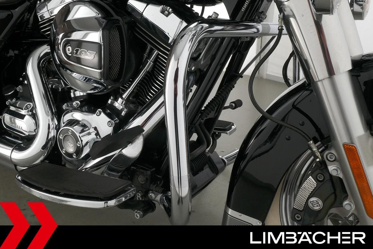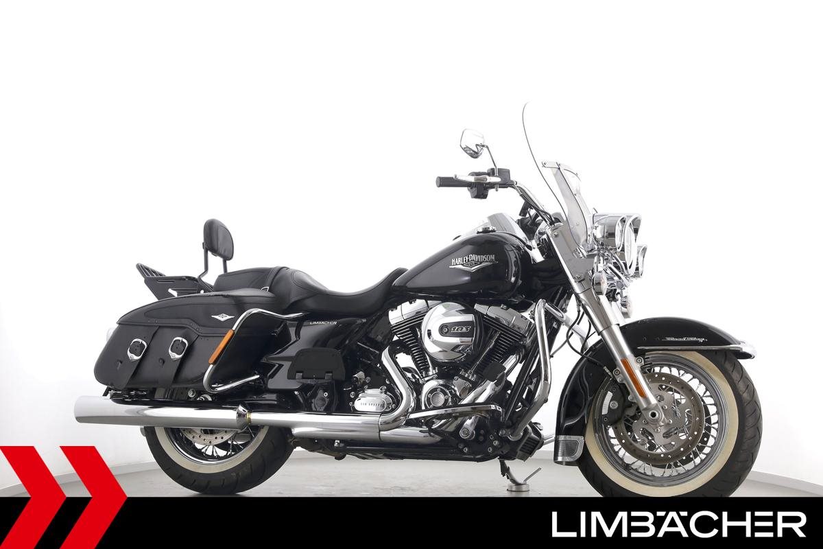 Eine scheckheftgepflegte Harley-Davidson Road King Classic FLHRC aus zweiter Hand in sehr gepflegtem Zustand u.a. mit Remus-Endschalldämpfer sowie HD-Lederkoffer-System.