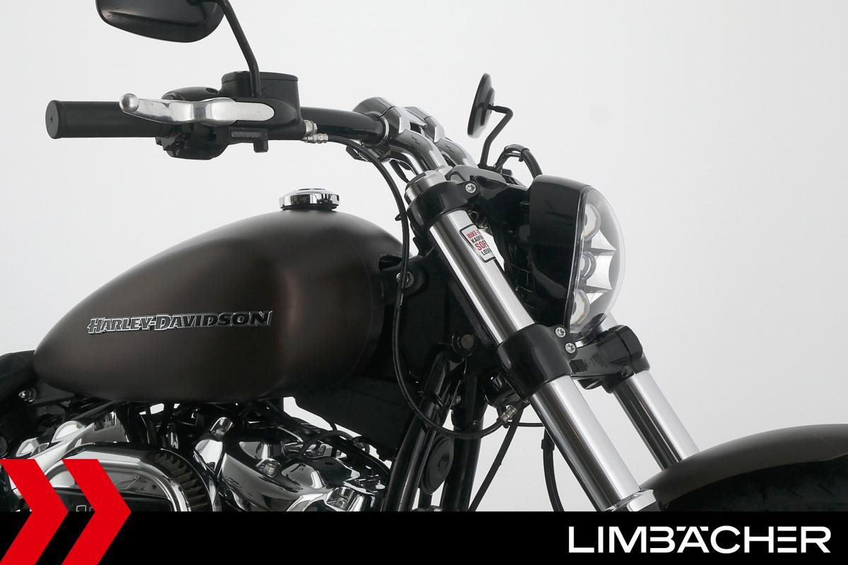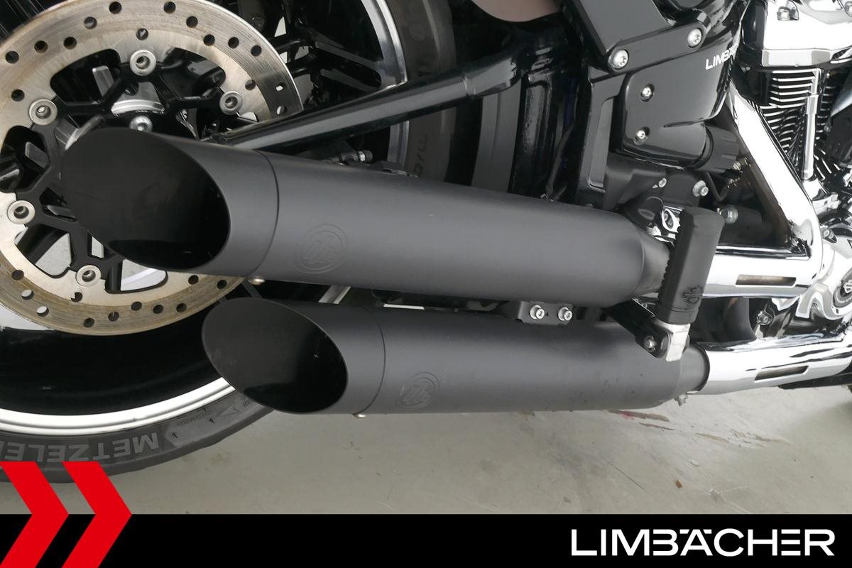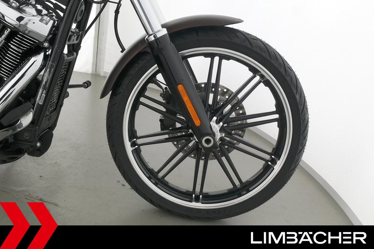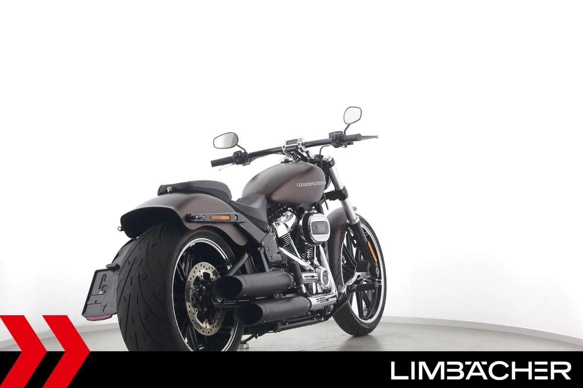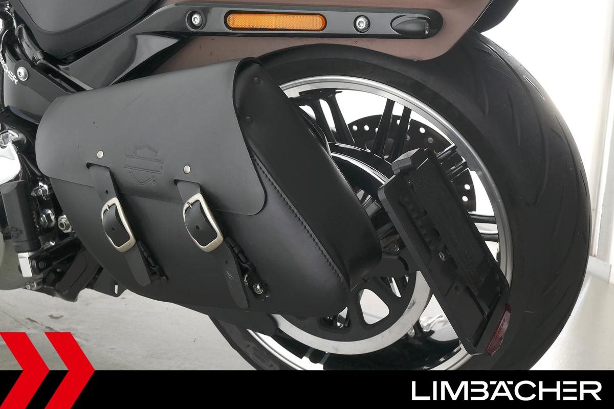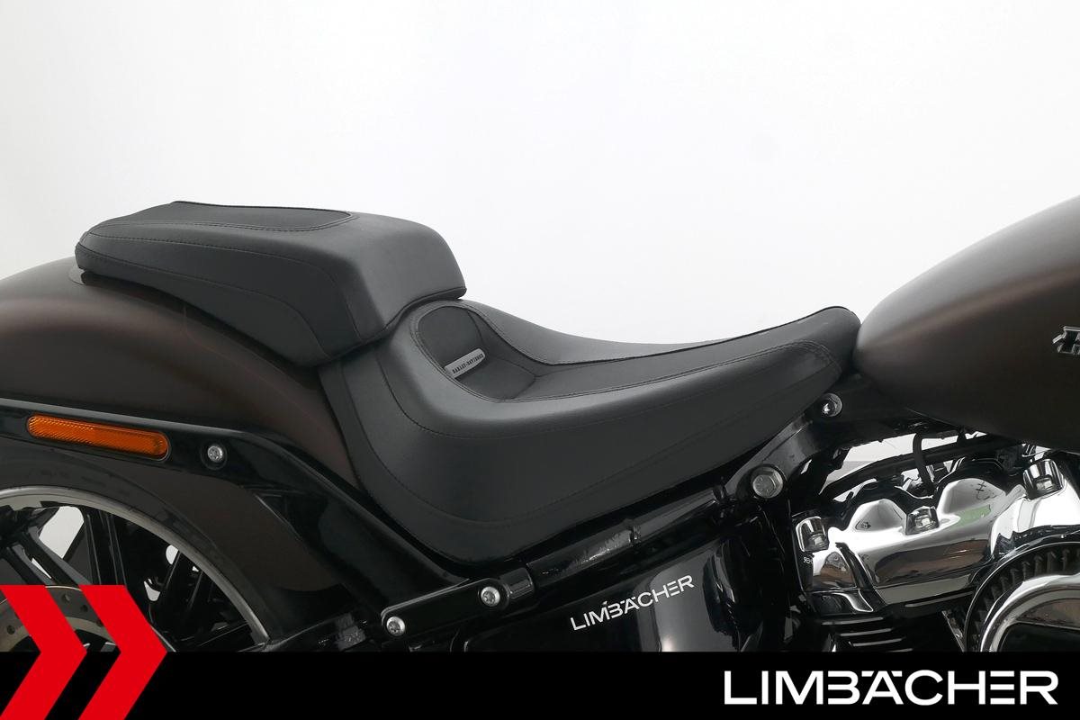 Eine Harley-Davidson Softail Breakout 114 FXBRS aus zweiter Hand in sehr gepflegtem Zustand u.a. mit KessTech-Klappenauspuff sowie seitlichem Kennzeichenhalter.