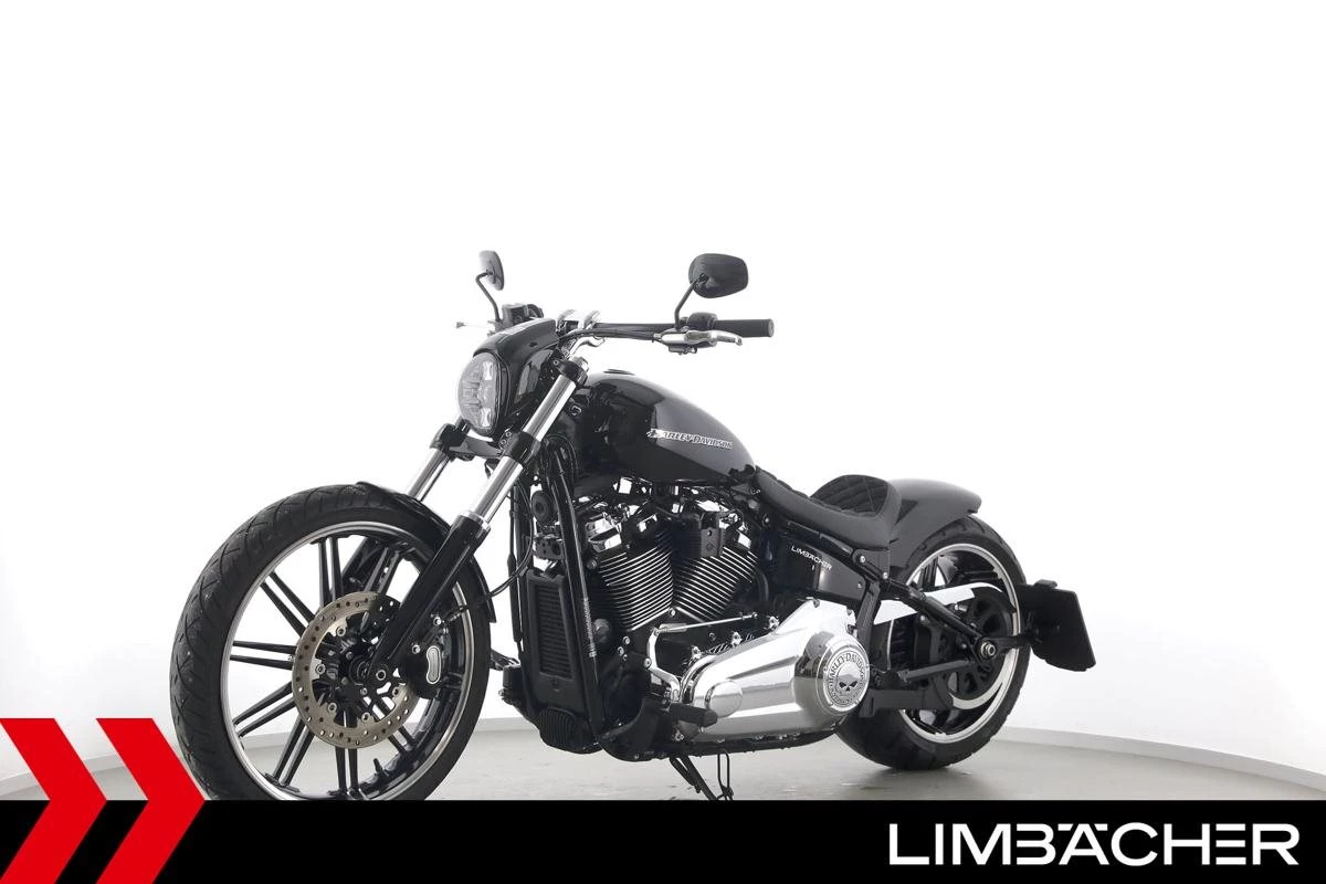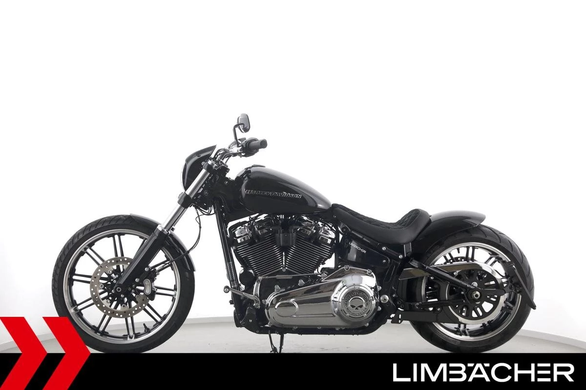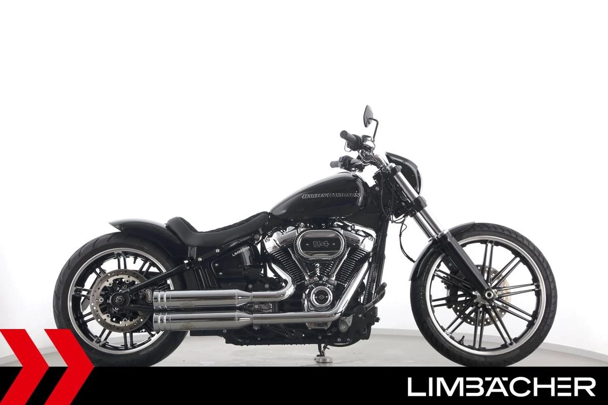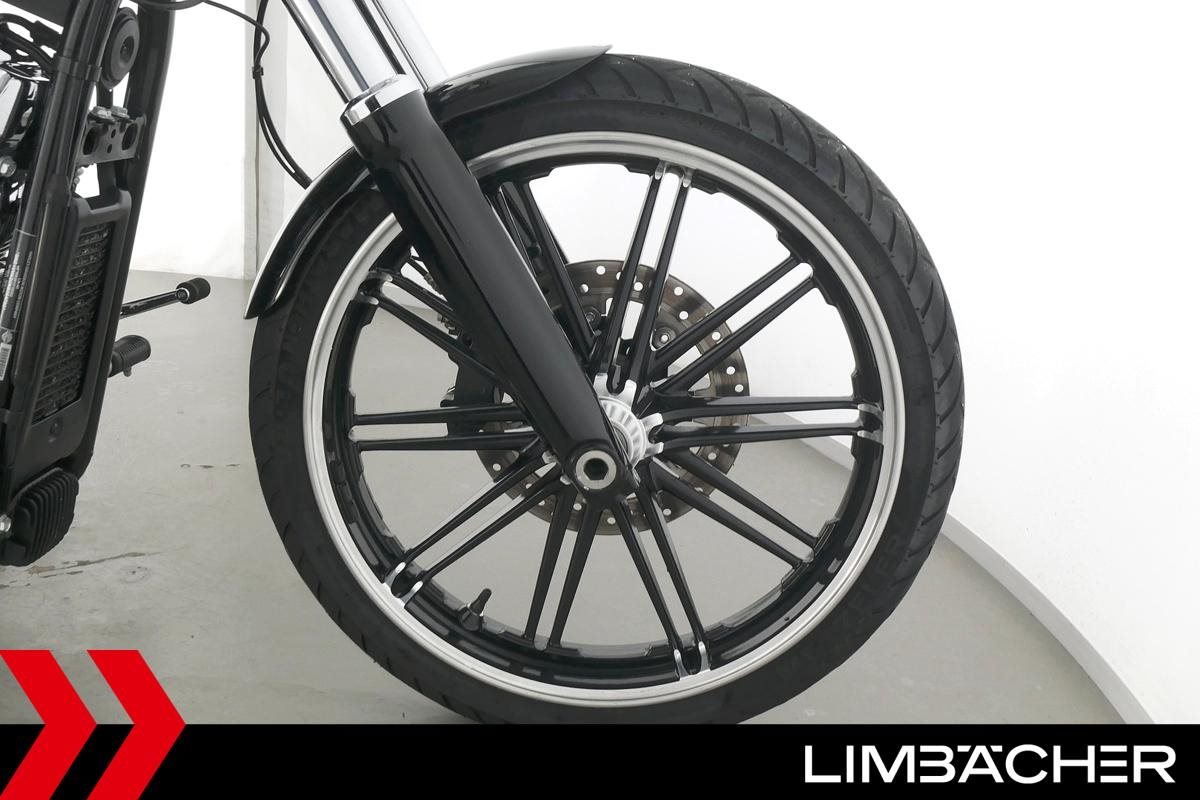 Eine scheckheftgepflegte Harley-Davidson Softail Breakout 114 FXBRS aus zweiter Hand in Topzustand u.a. mit Jekill&Hyde-Klappenauspuff sowie THUNDERBIKE Heckfender.