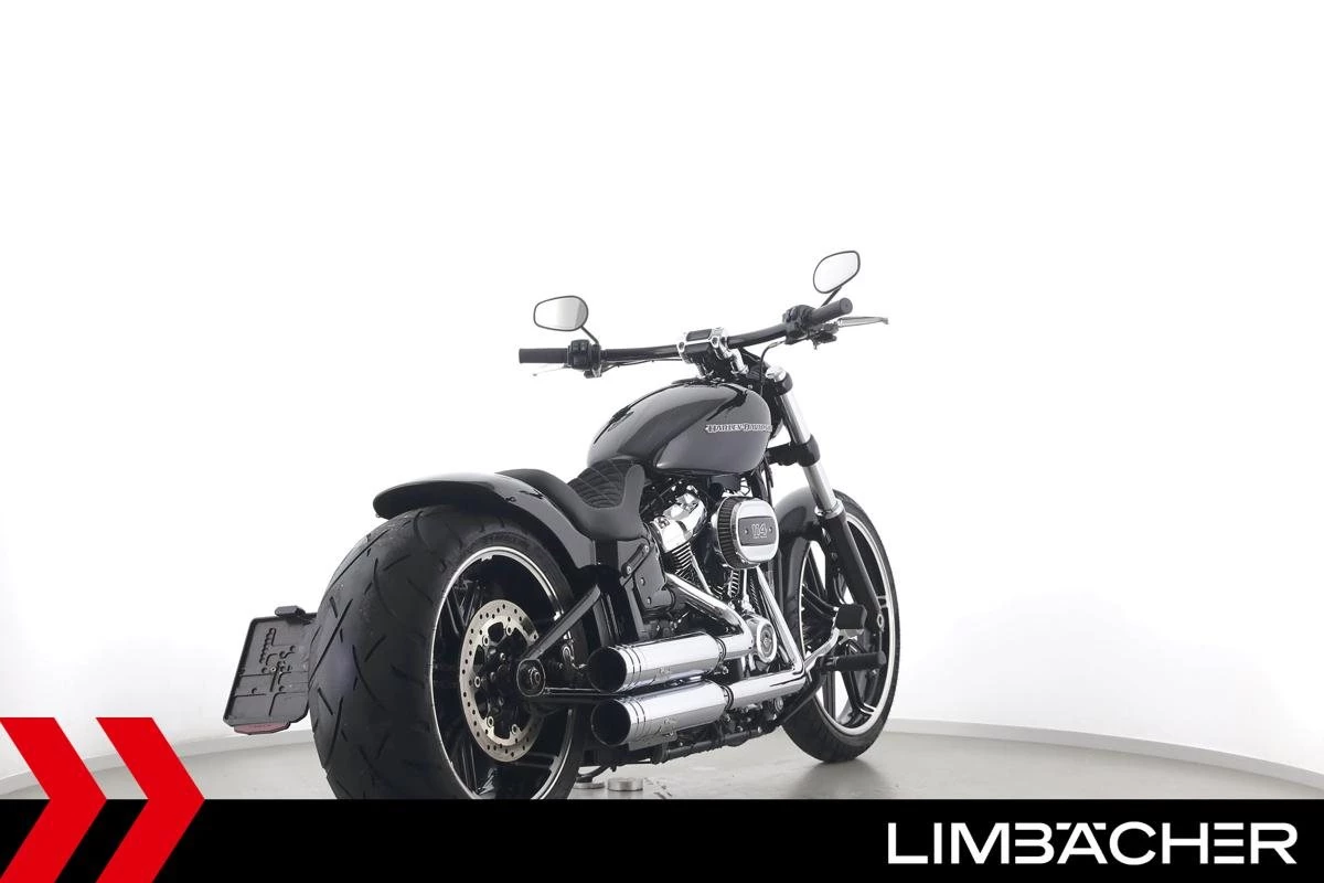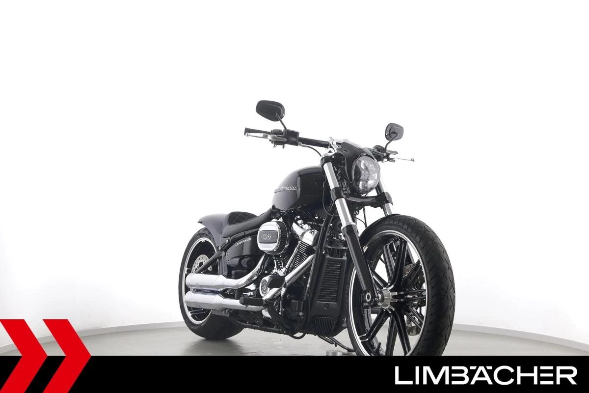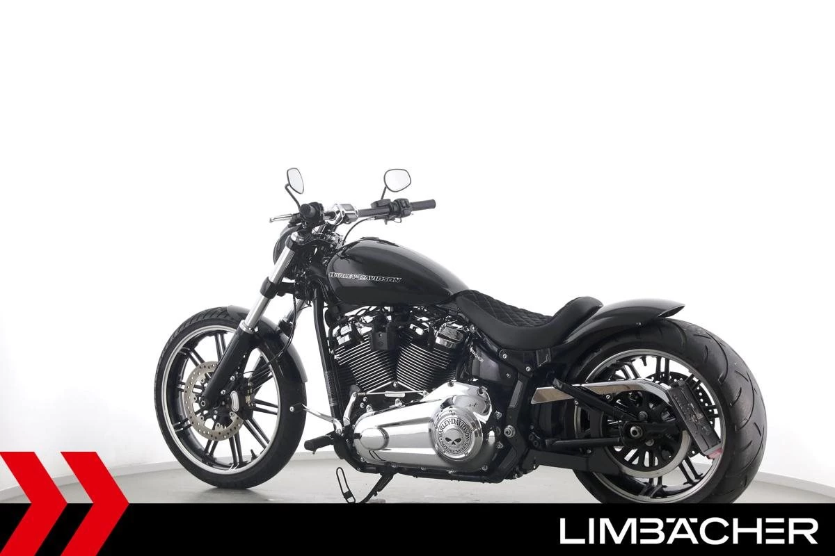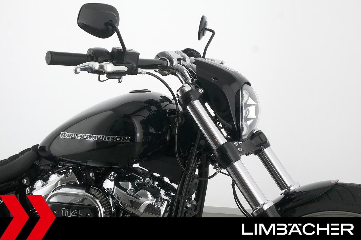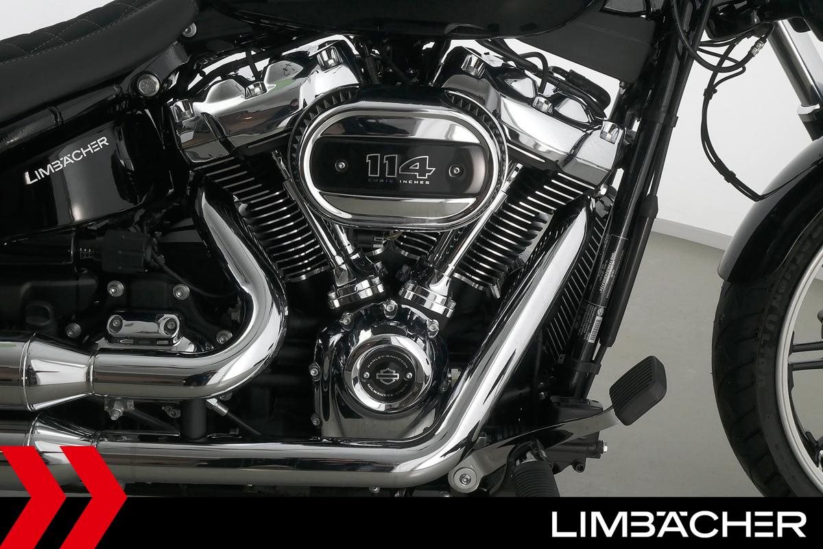 Eine scheckheftgepflegte Harley-Davidson Softail Breakout 114 FXBRS aus zweiter Hand in Topzustand u.a. mit Jekill&Hyde-Klappenauspuff sowie THUNDERBIKE Heckfender.