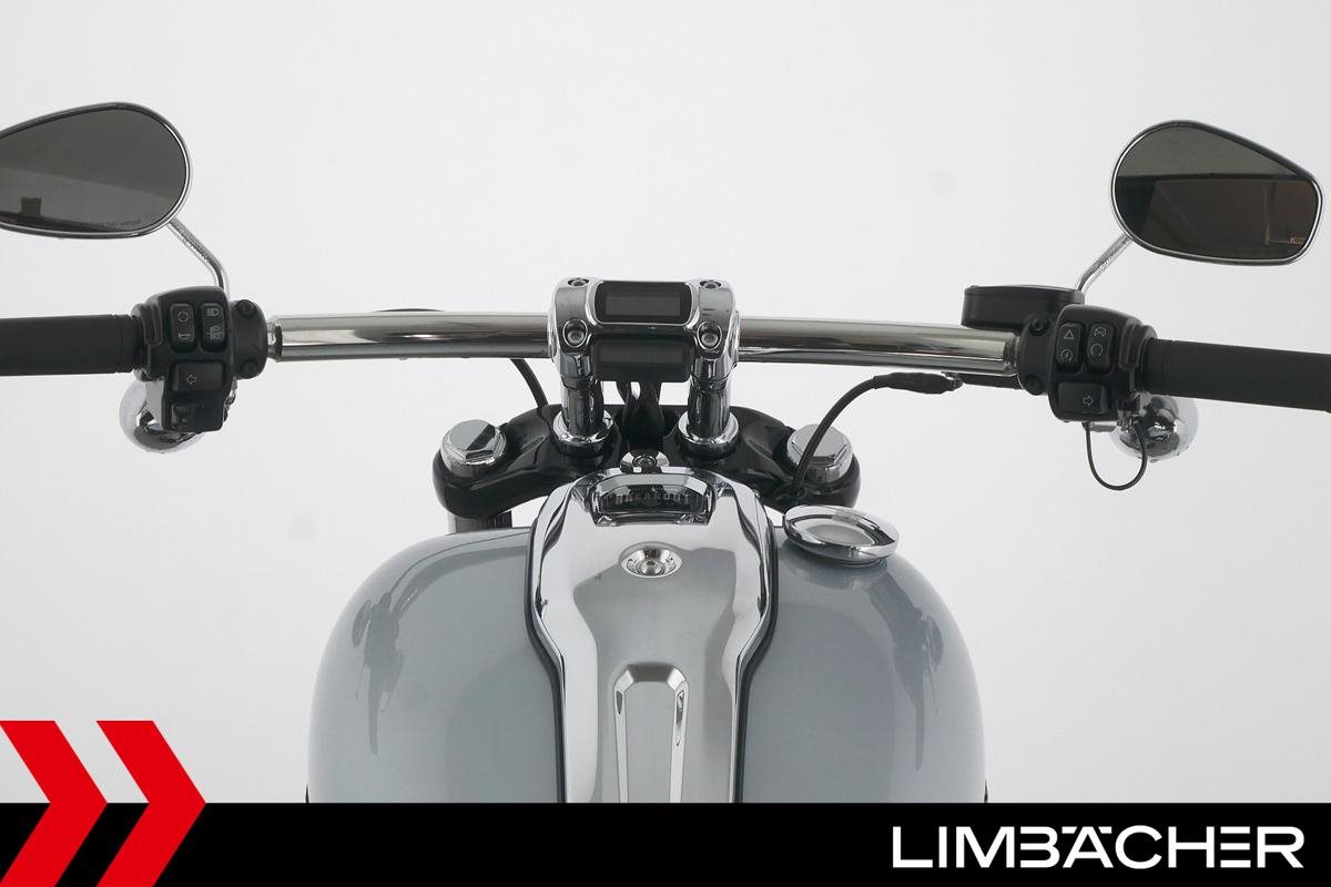 Eine scheckheftgepflegte Harley-Davidson Softail Breakout FXBR in Topzustand u.a. mit Miller-Endschalldämpfer und Tempomat.