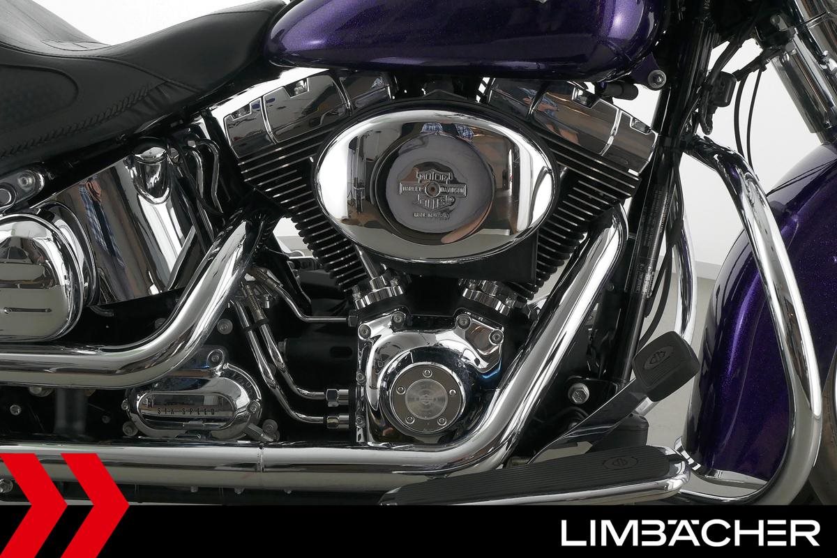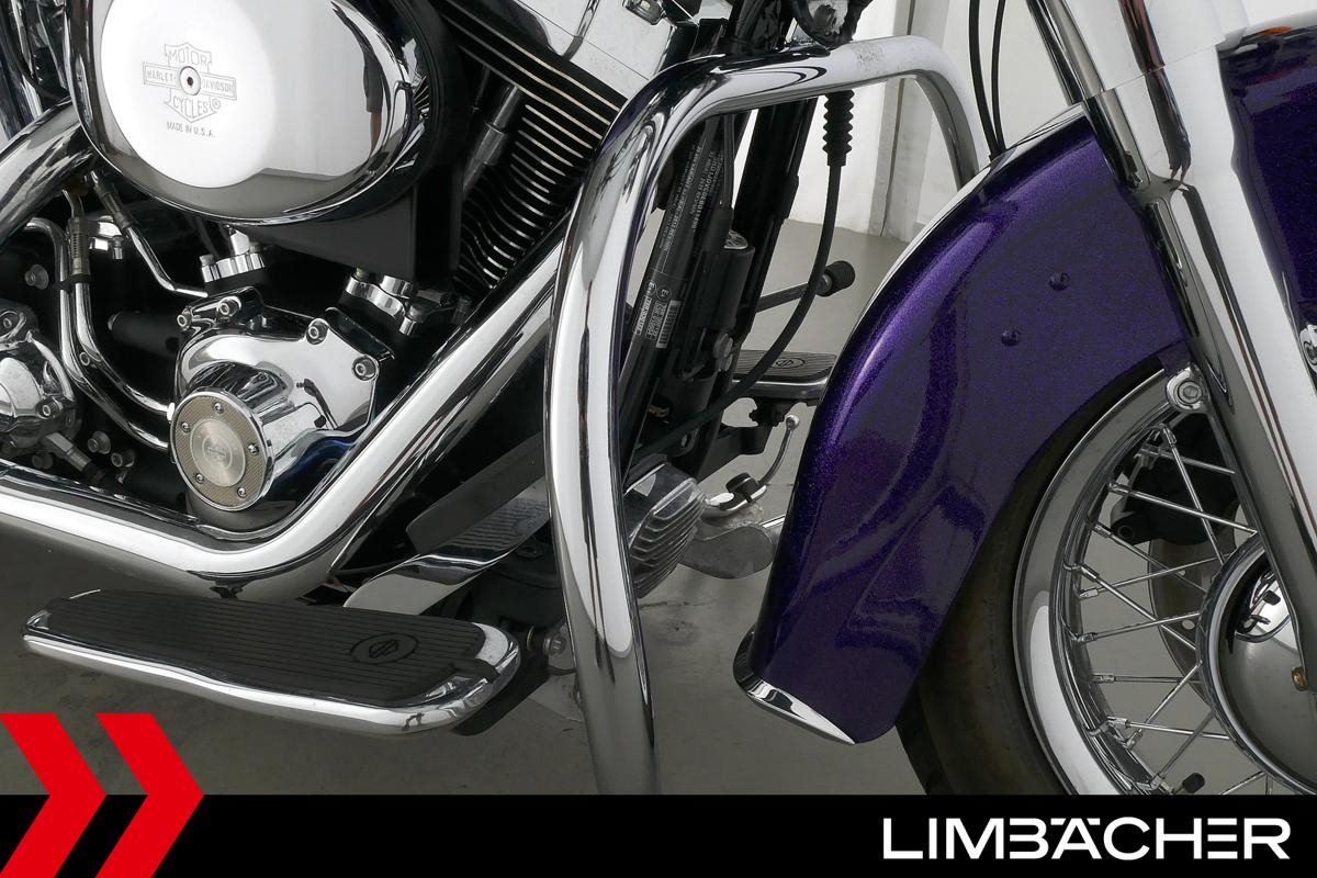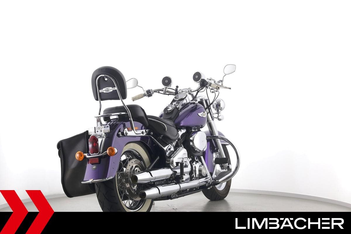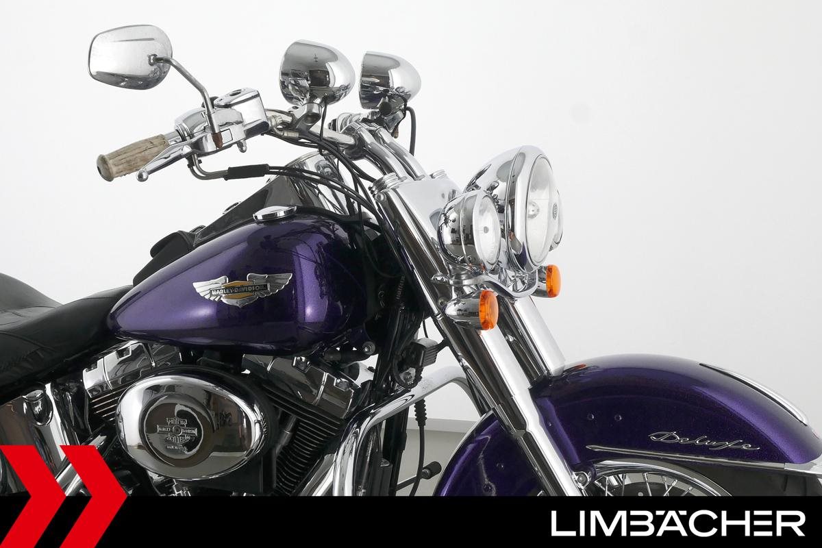Eine Harley-Davidson Softail Deluxe FLSTN in gepflegtem Zustand u.a. mit Audiosystem sowie Sturzbügel.