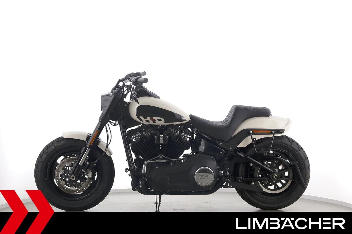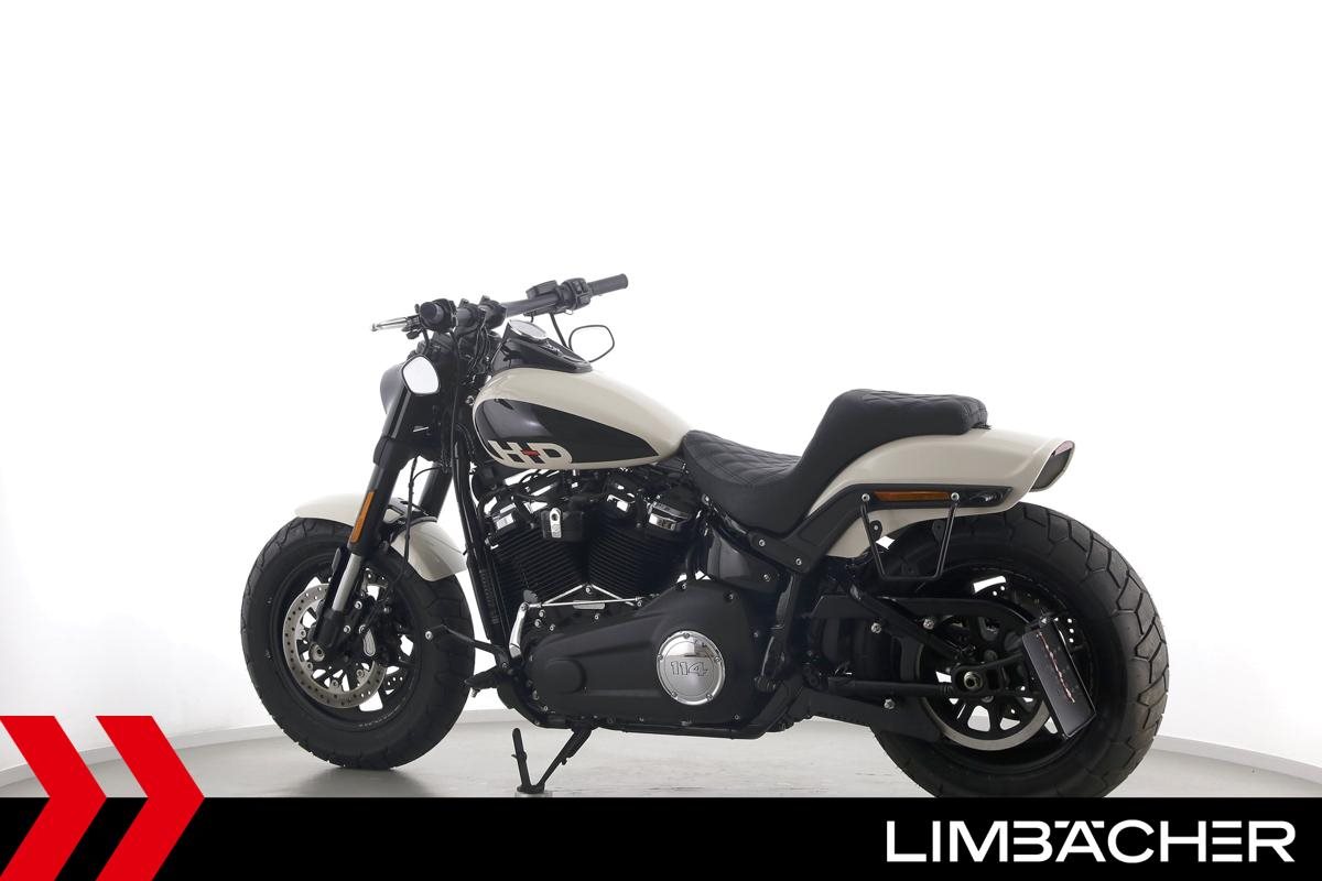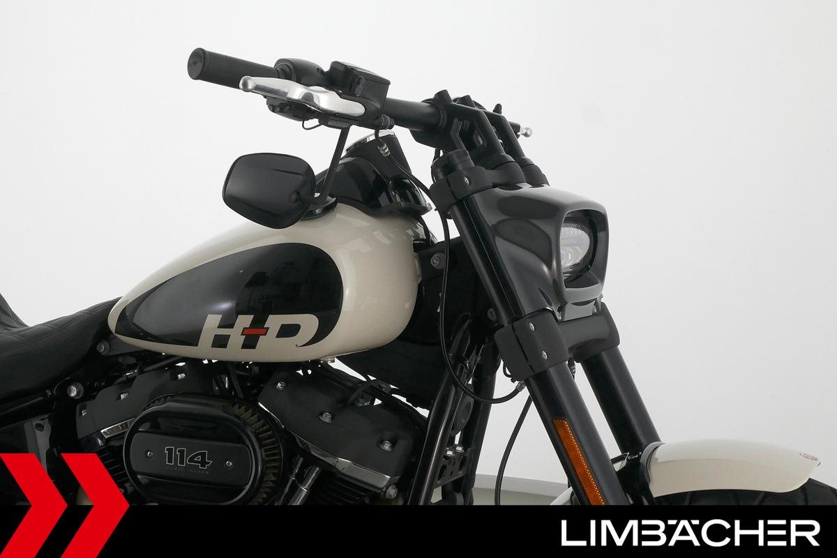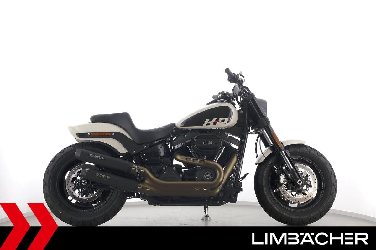 Eine Harley-Davidson Softail Fat Bob 114 FXFBS in gepflegtem Zustand u.a. mit Miller-Endschalldämpfer sowie seitlichem Kennzeichenträger.