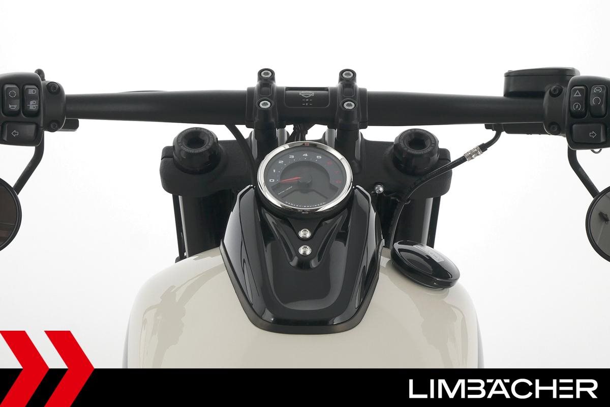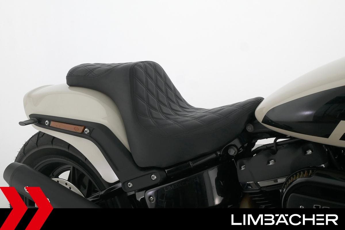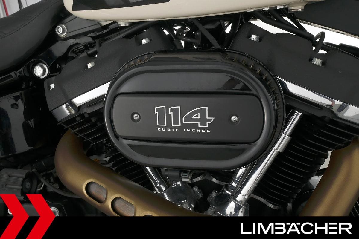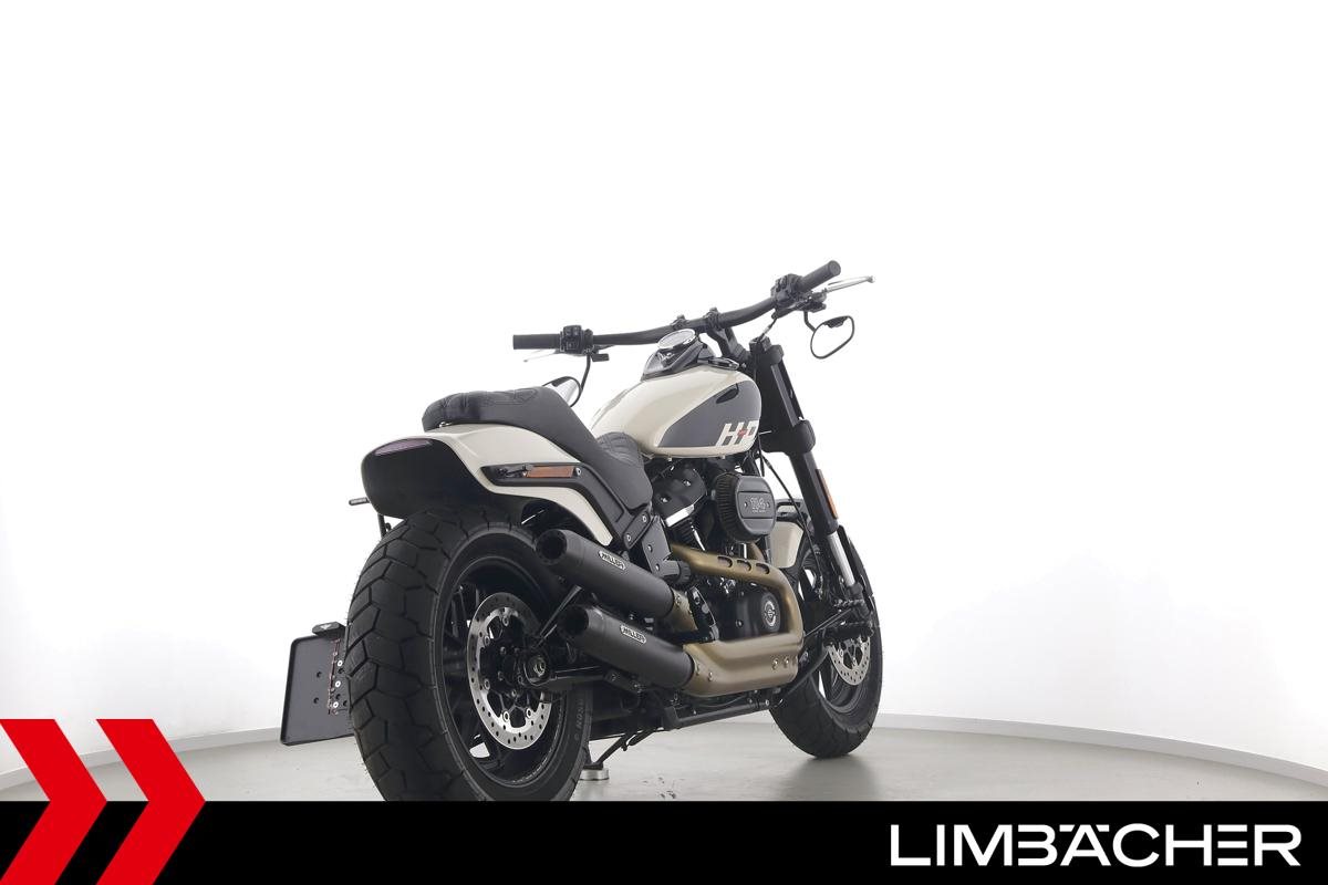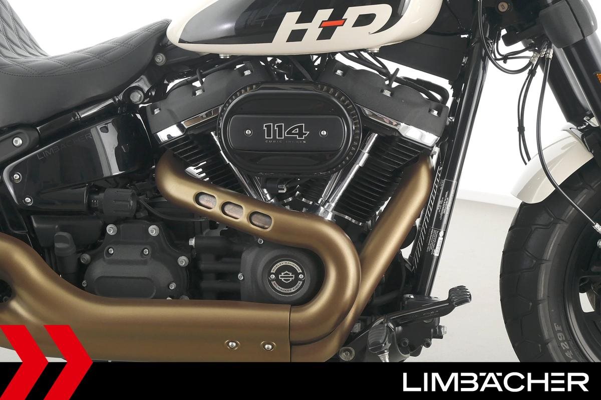 Eine Harley-Davidson Softail Fat Bob 114 FXFBS in gepflegtem Zustand u.a. mit Miller-Endschalldämpfer sowie seitlichem Kennzeichenträger.