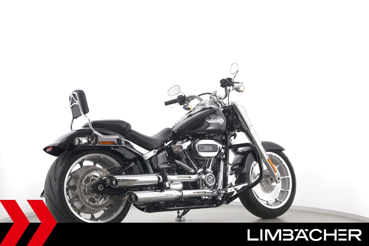 Eine Harley-Davidson Softail Fat Boy 114 FLFBS aus erster Hand in neuwertigem Zustand u.a. mit Jekill&Hyde-Klappenauspuff sowie Sturzbügel in schwarz.