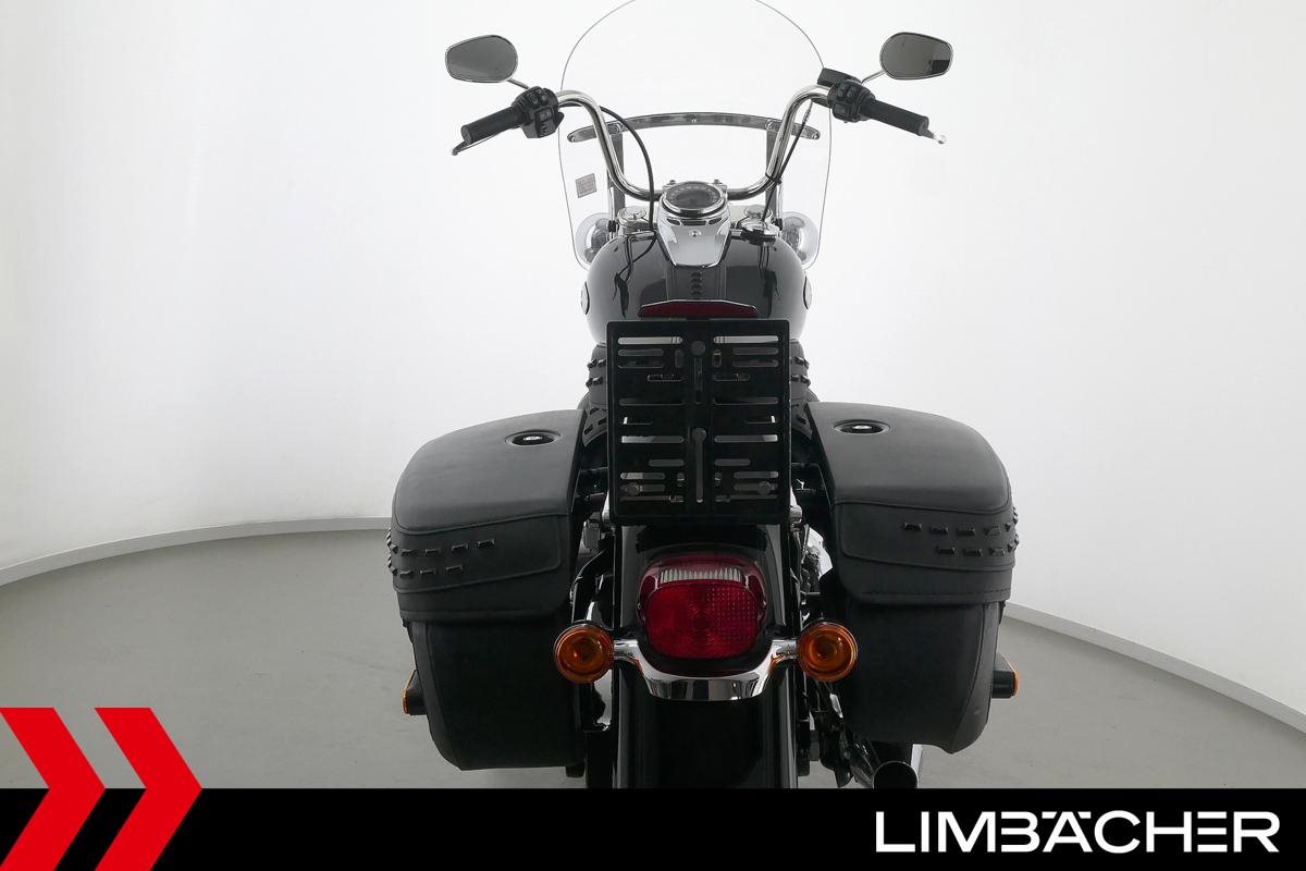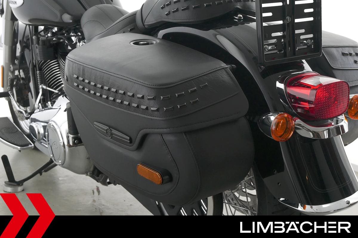 Eine Harley-Davidson Heritage Softail Classic FLHCS aus zweiter Hand in sehr gepflegtem Zustand u.a. mit Jekill&Hyde-Klappenauspuff sowie HD-Lederkoffersystem.
