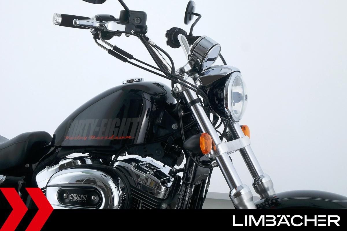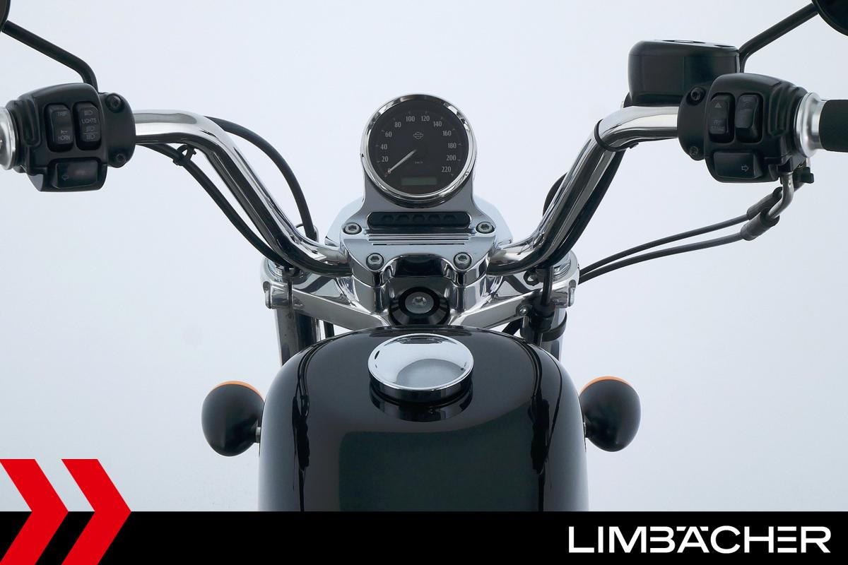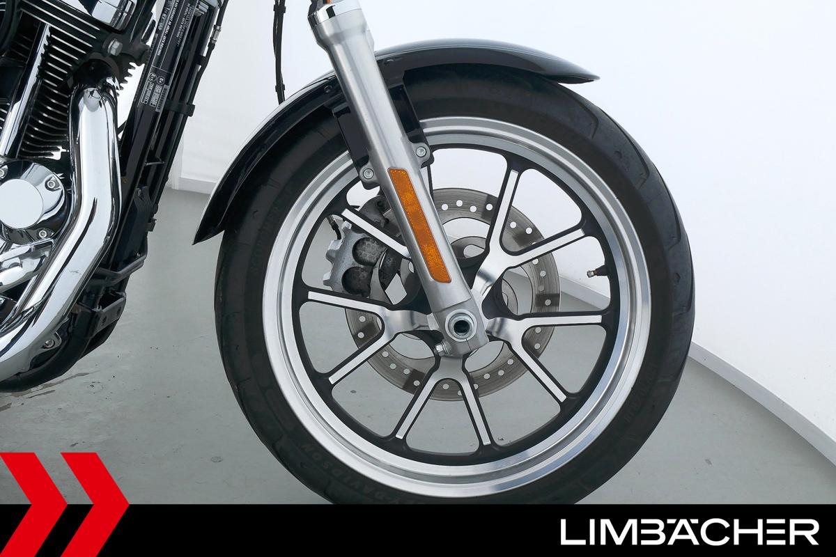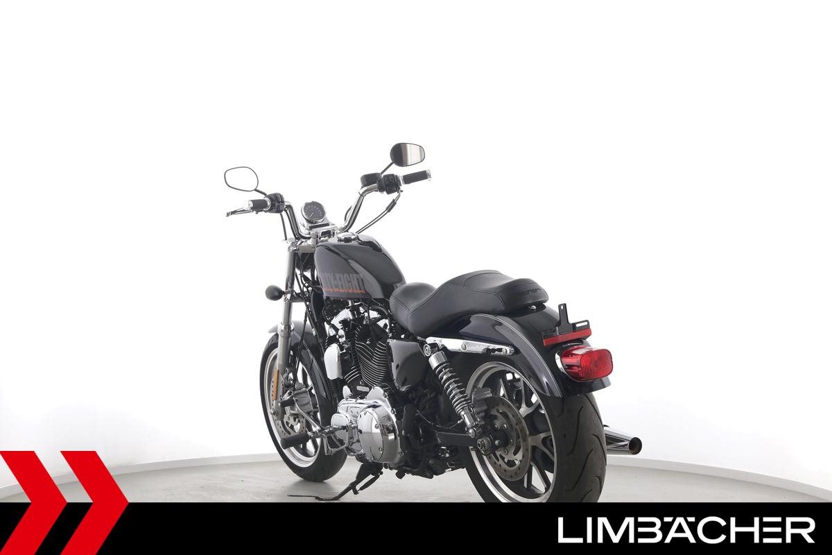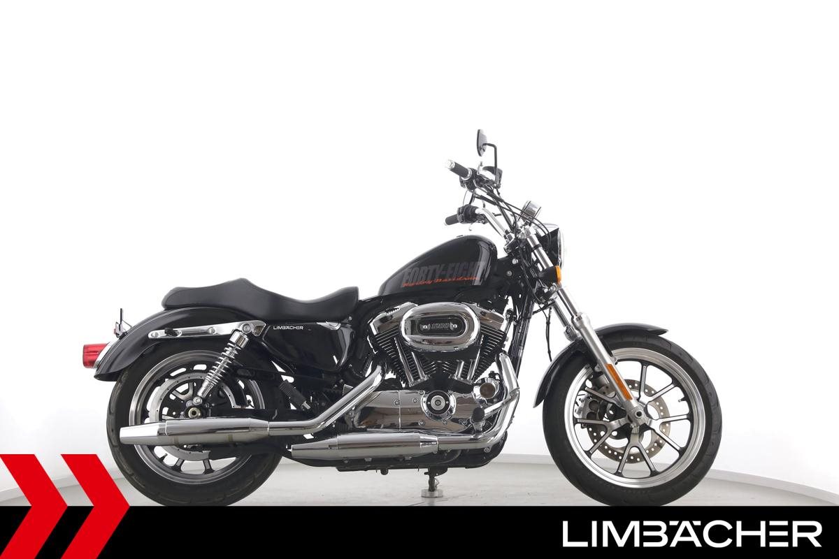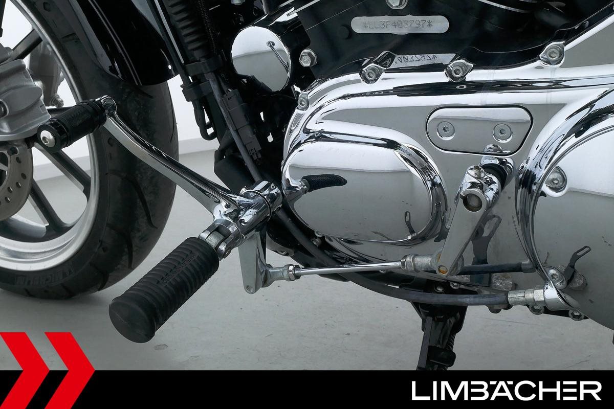 Eine scheckheftgepflegte Harley-Davidson Sportster XL 1200 T Superlow aus zweiter Hand in sehr gepflegtem Zustand u.a. mit FortyEight-Tank sowie vorverlegten Fußrasten.