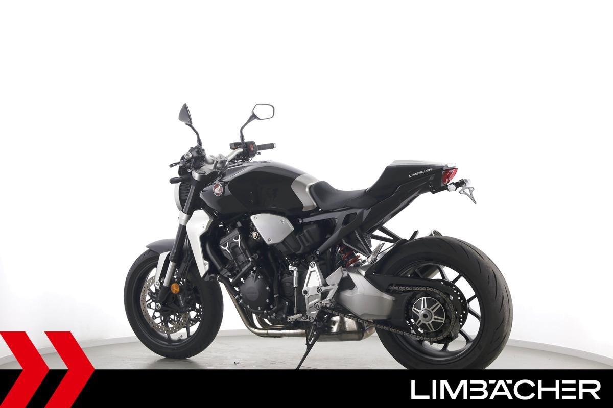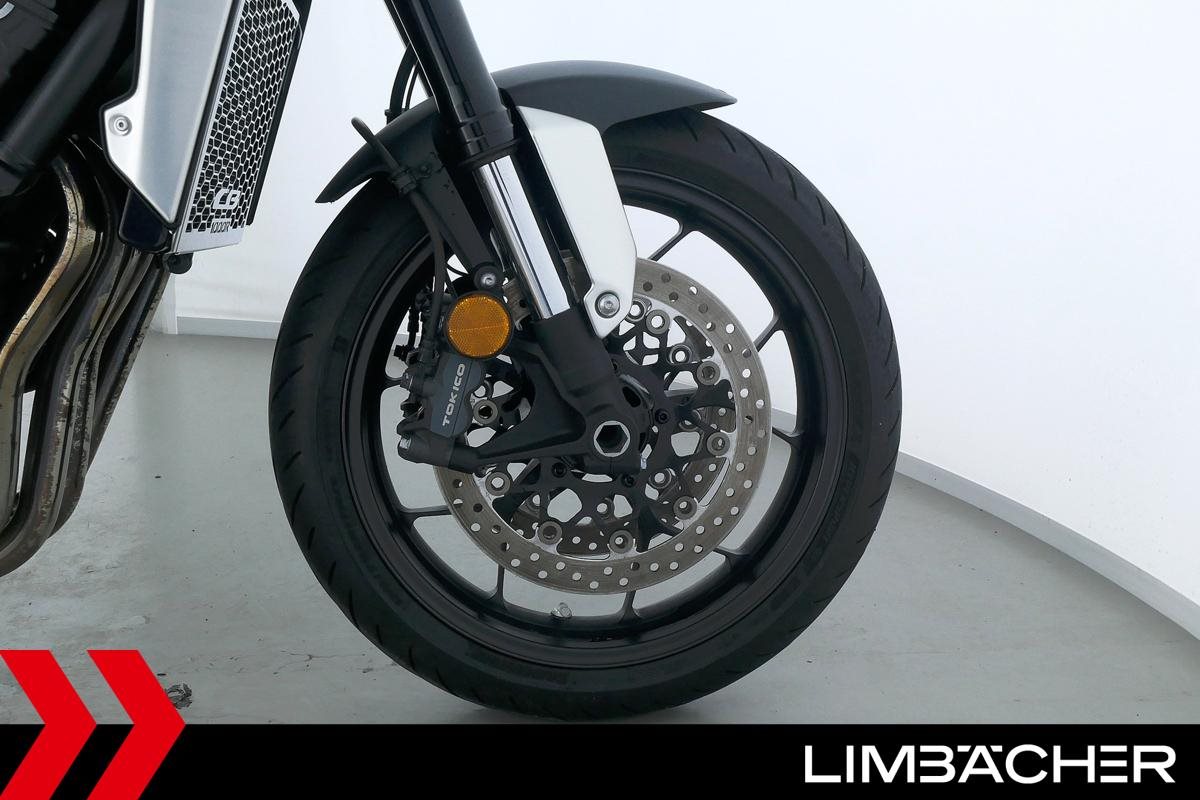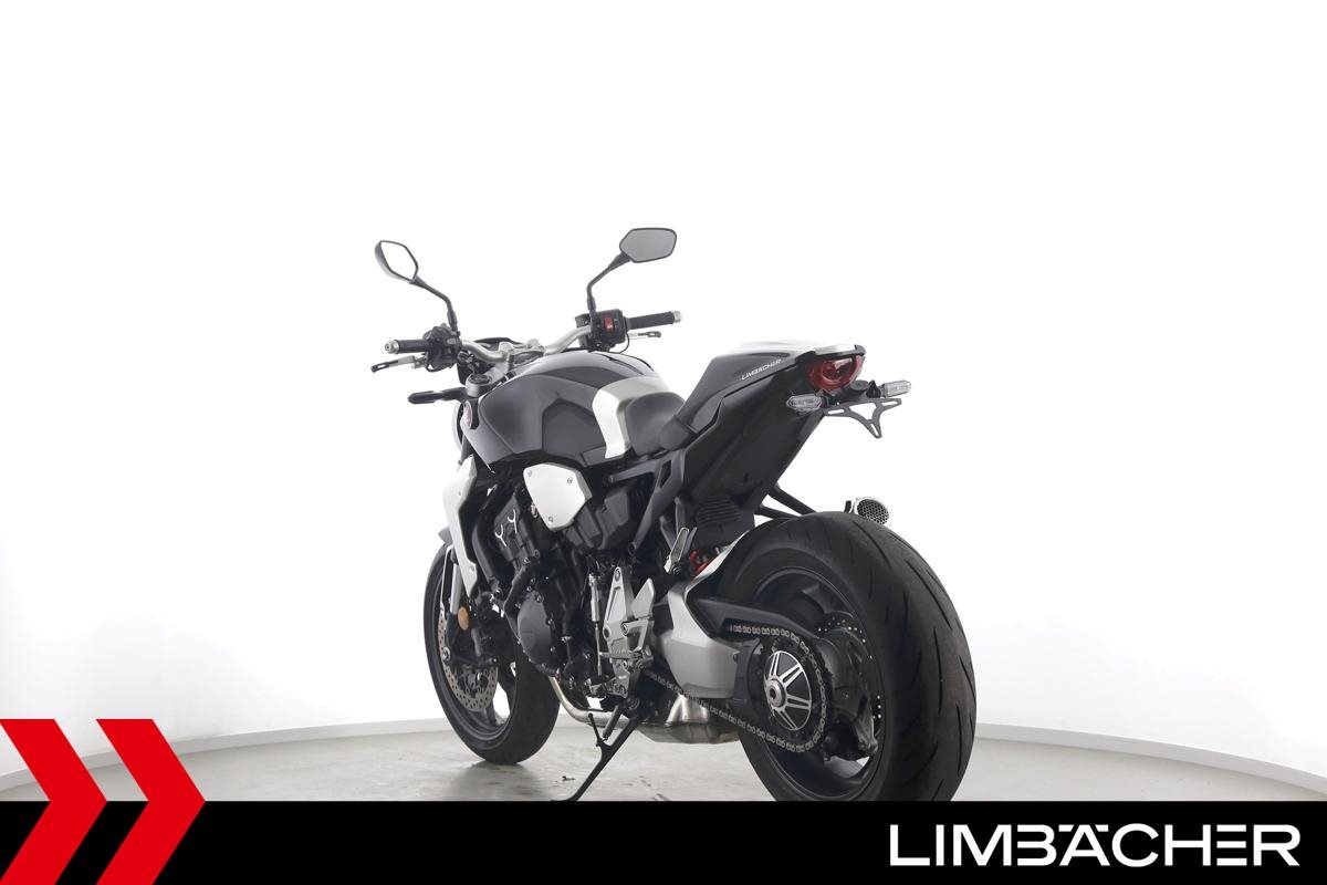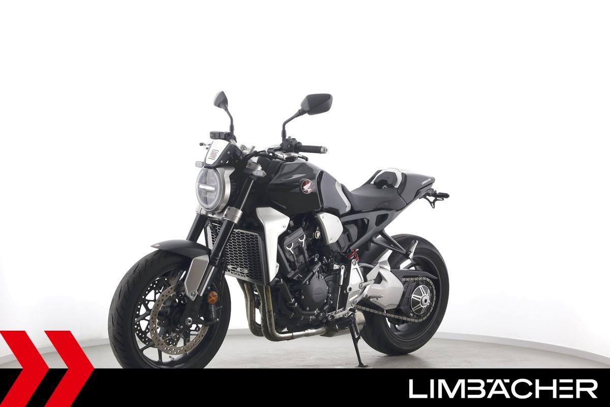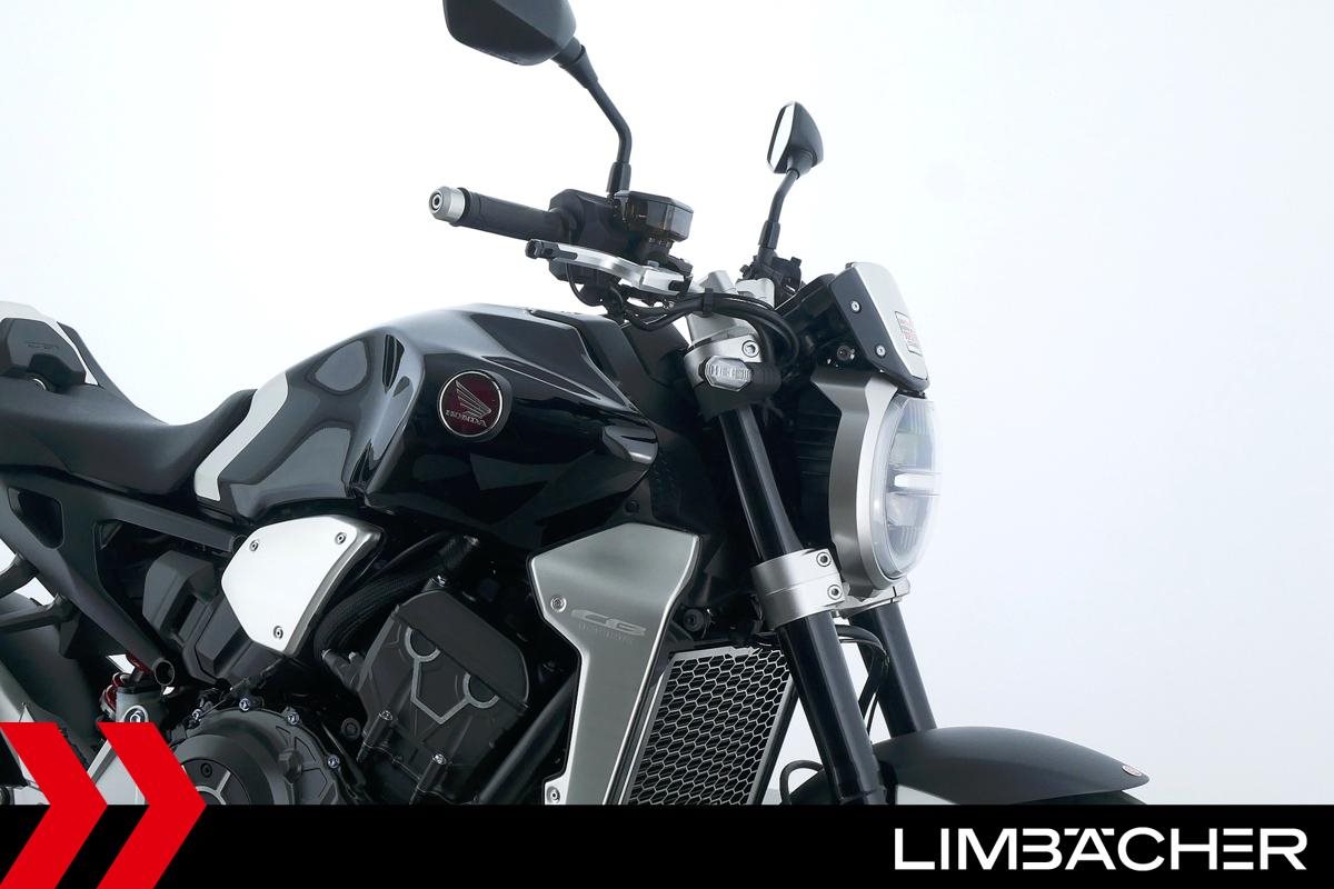 Eine scheckheftgepflegte Honda CB 1000 R aus zweiter Hand in sehr gepflegtem Zustand u.a. mit Shark-Endschalldämpfer sowie Synto-Brems- und -Kuppungshebel.