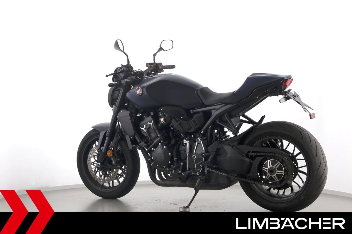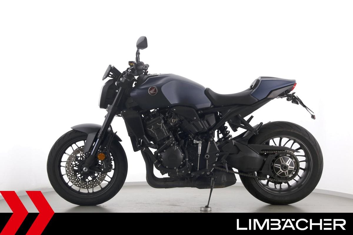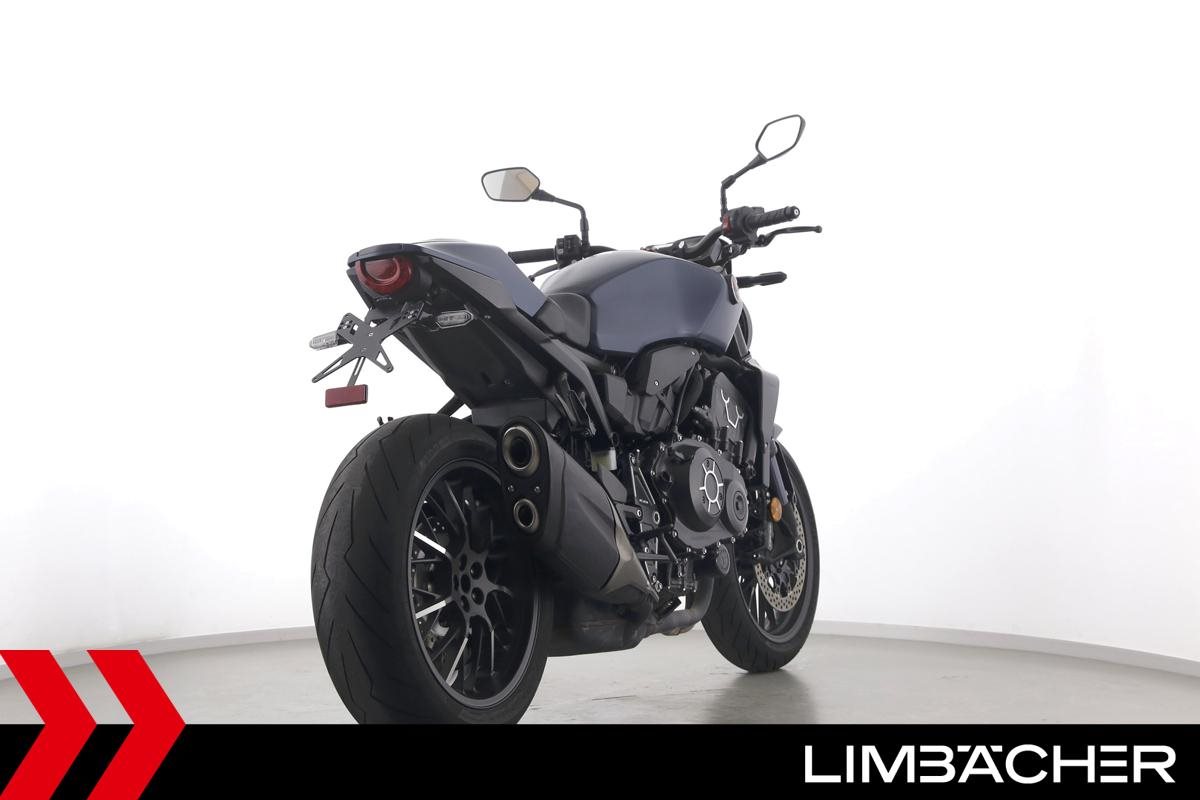 Eine Honda CB 1000 R Black Edition aus erster Hand in gebrauchtem Zustand mit kurzem Kennzeichenhalter und Soziussitzabdeckung.