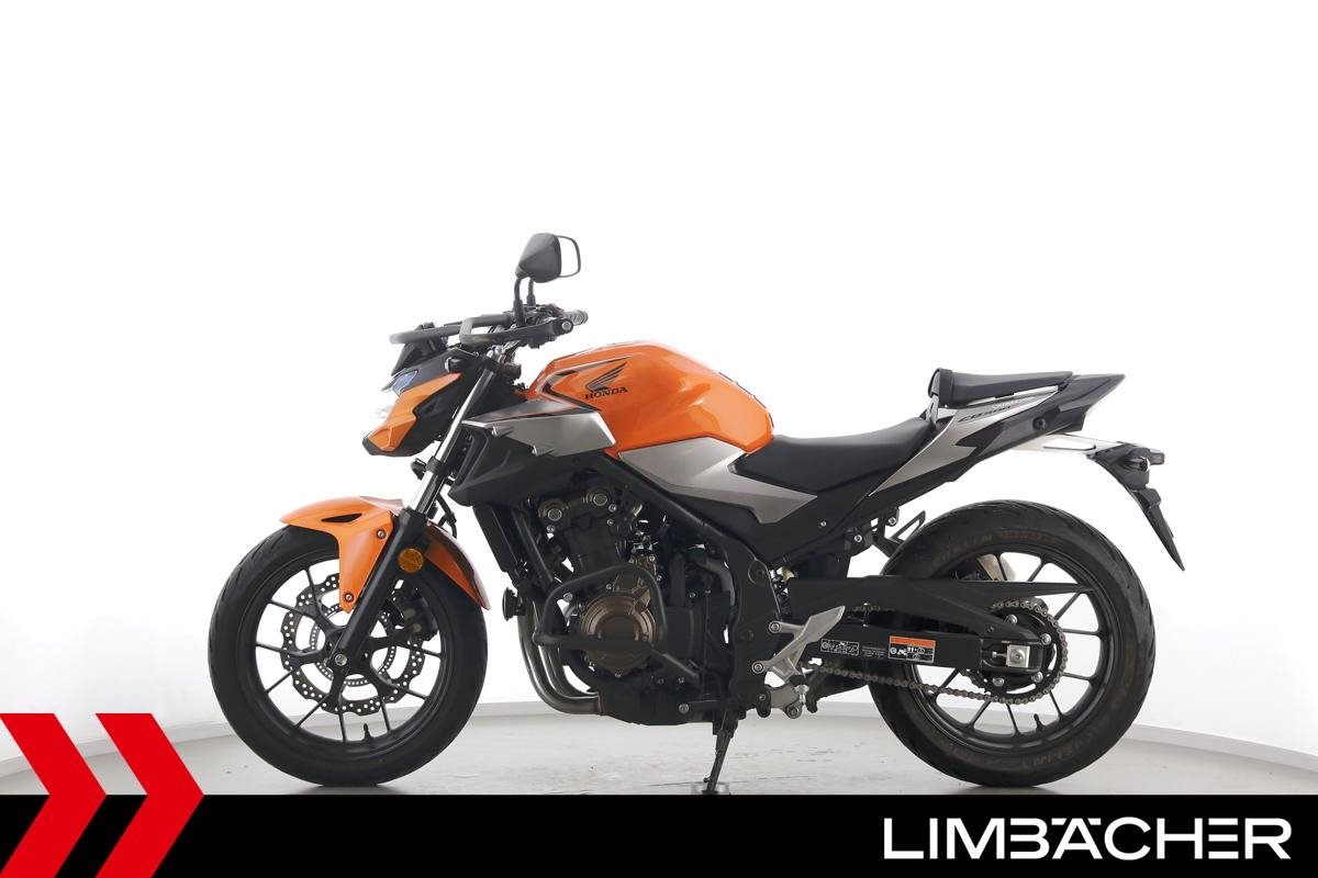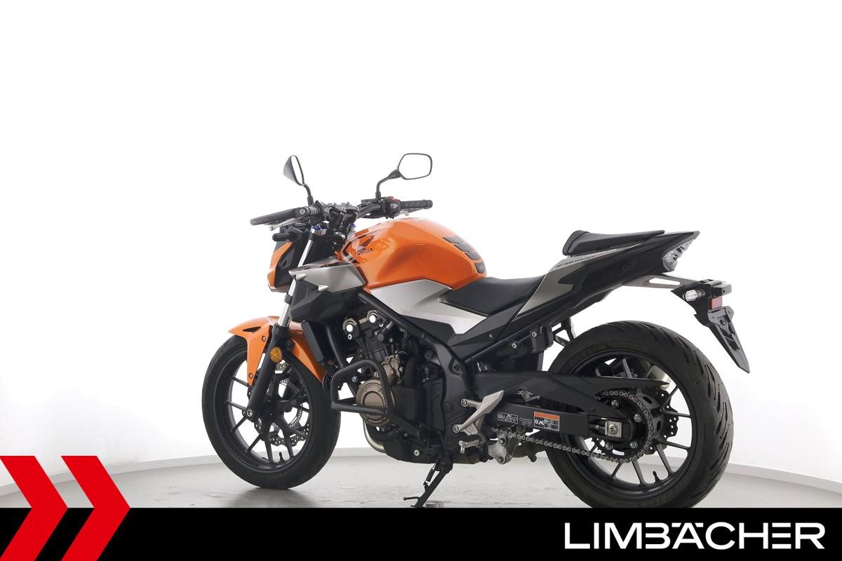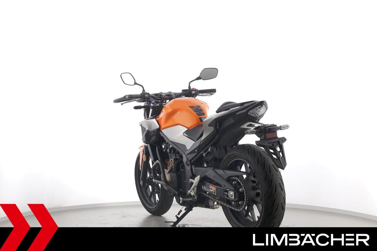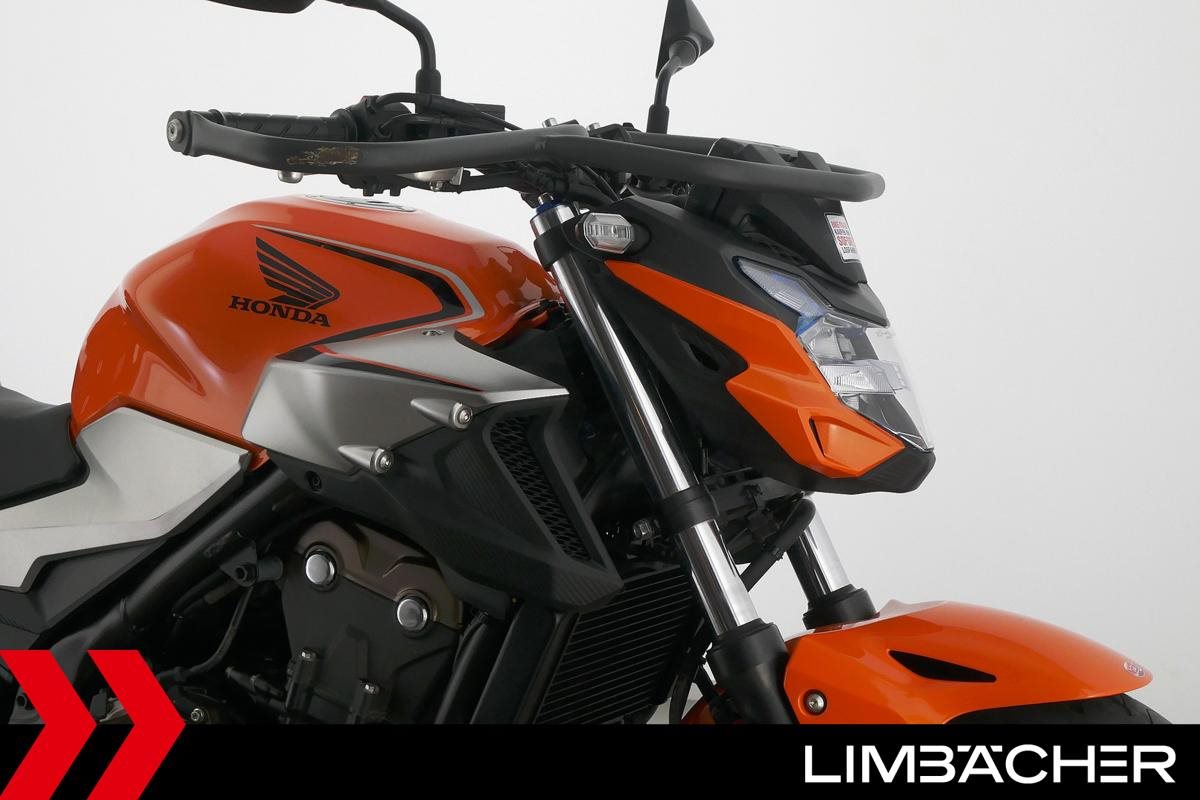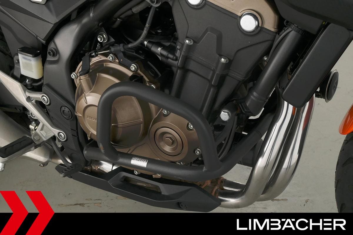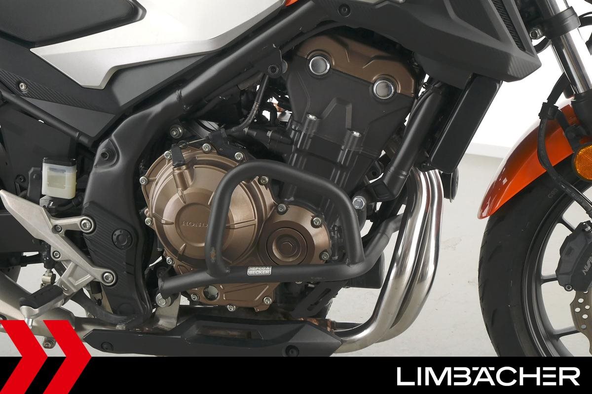 Eine Honda CB 500 F aus zweiter Hand in gepflegtem Zustand u.a. mit Tieferlegung sowie Sturzbügelpaket von Hepco&Becker.