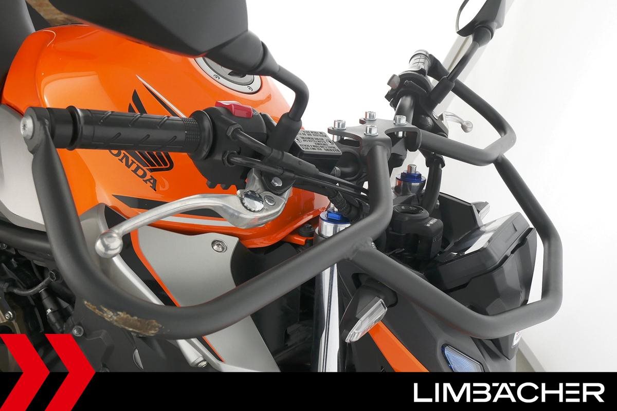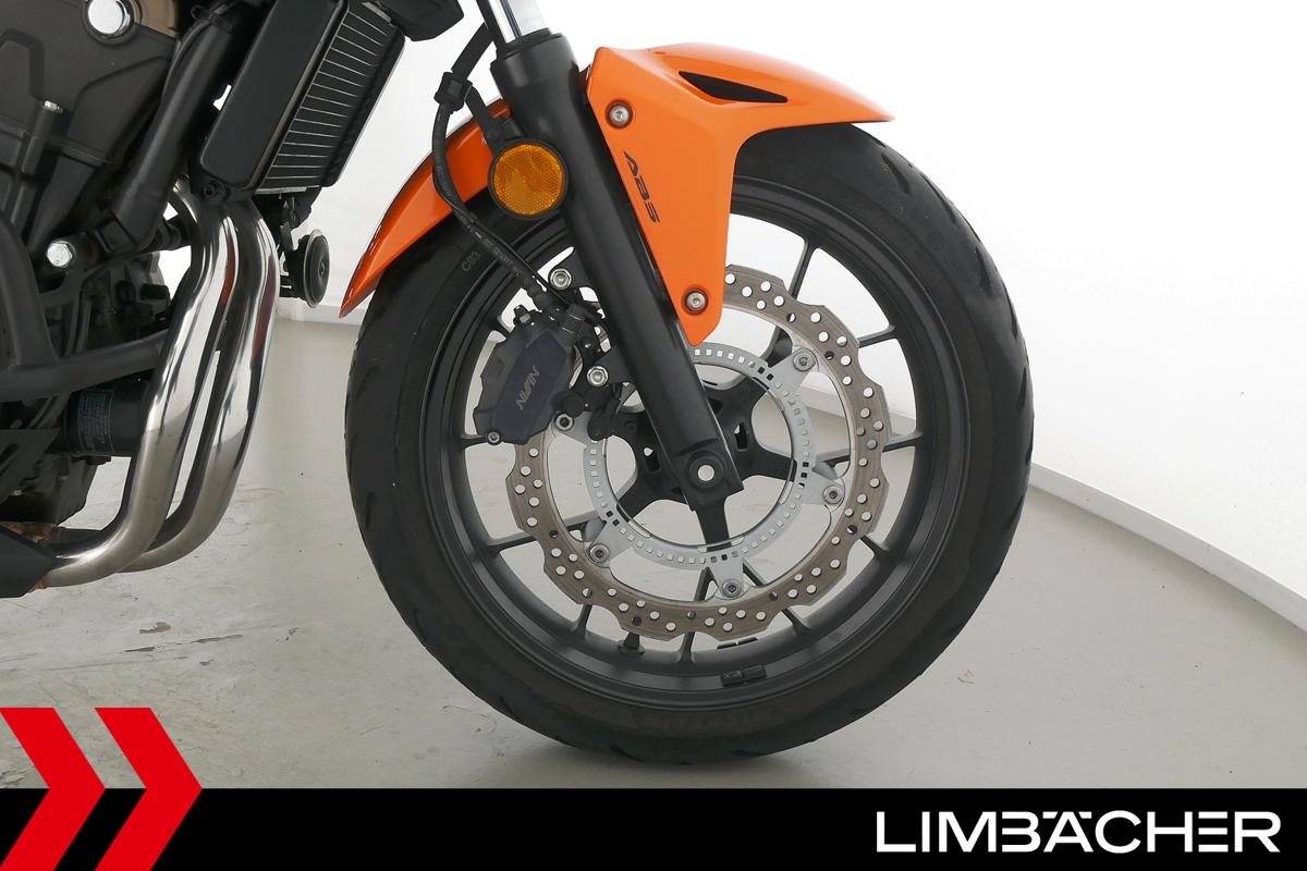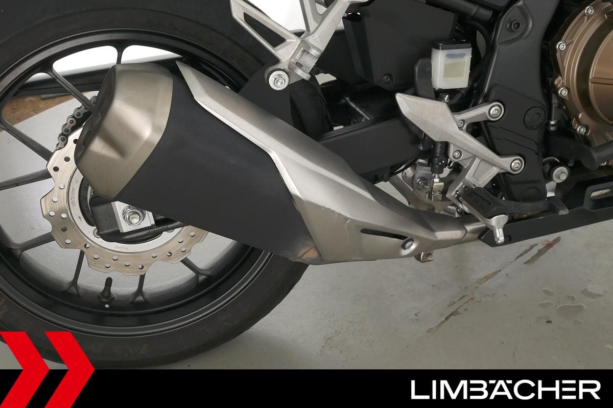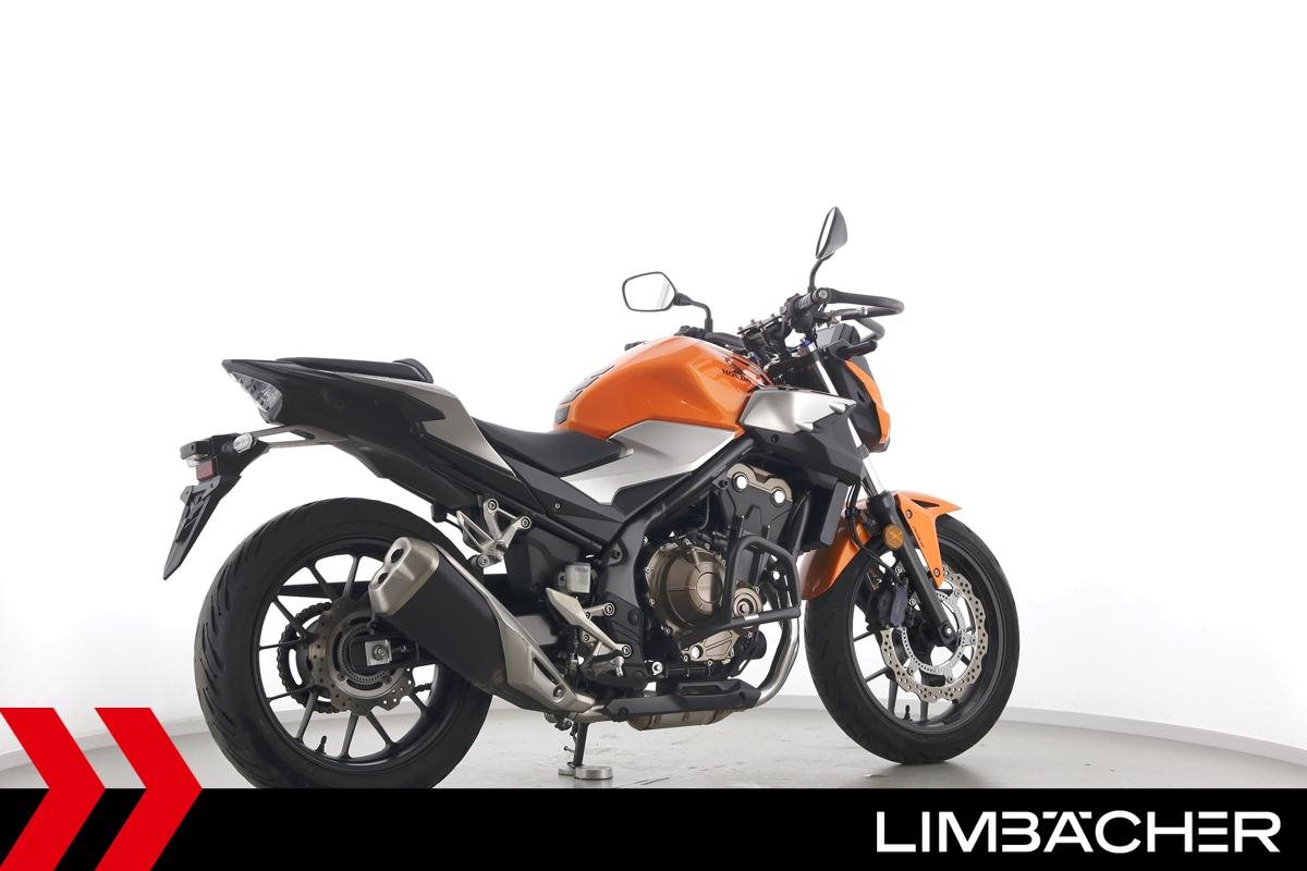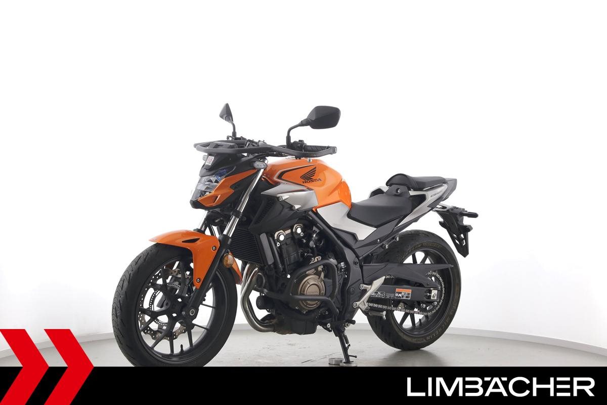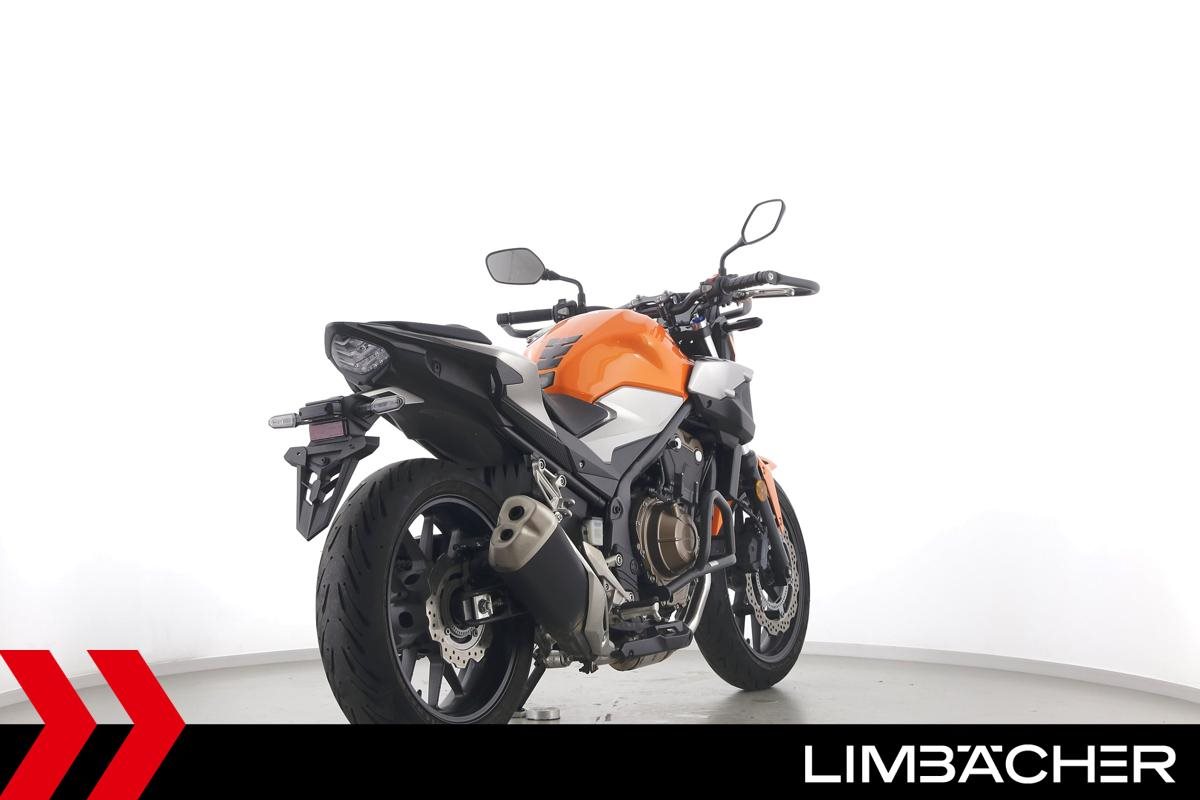 Eine Honda CB 500 F aus zweiter Hand in gepflegtem Zustand u.a. mit Tieferlegung sowie Sturzbügelpaket von Hepco&Becker.
