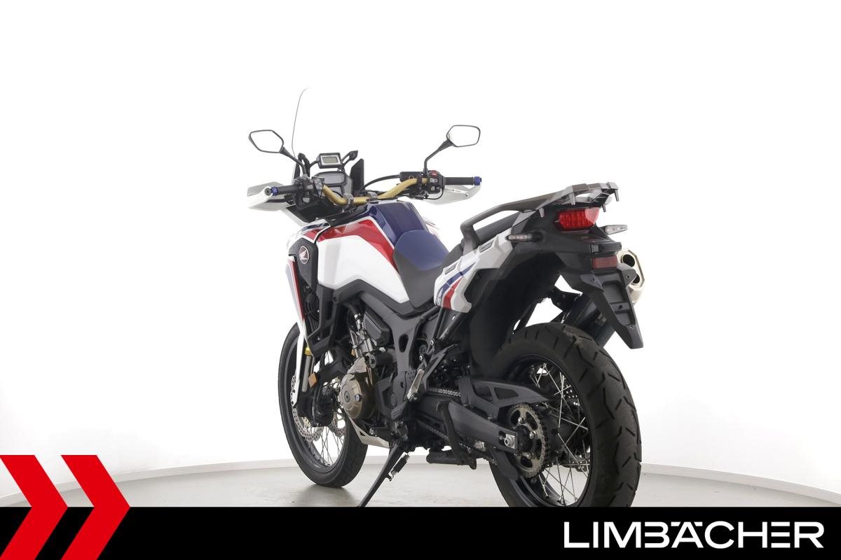 Eine Honda CRF 1000 L Africa Twin DCT in gepflegtem Zustand u.a. mit BOS-Endschalldämpfer sowie DCT-Automatik.