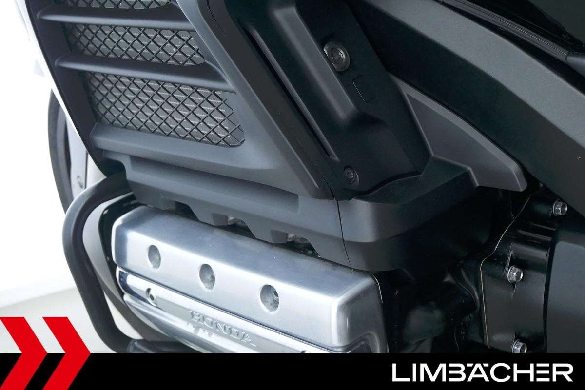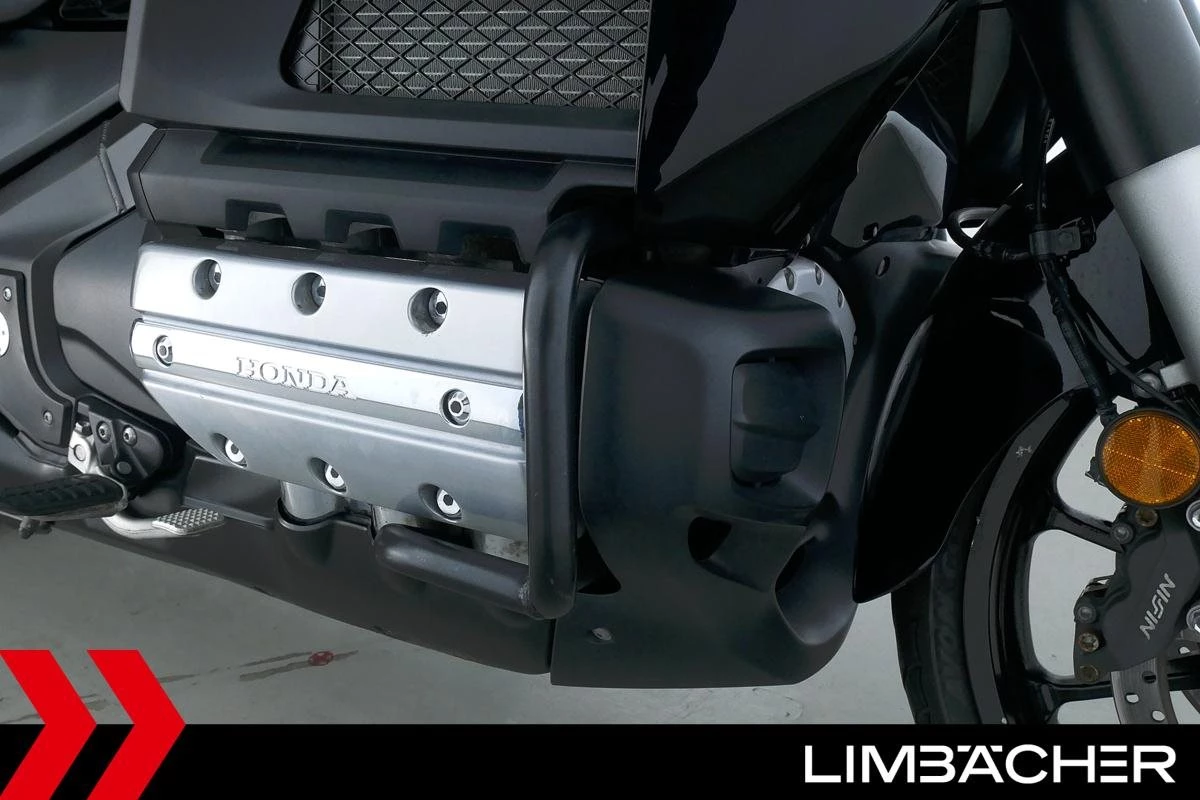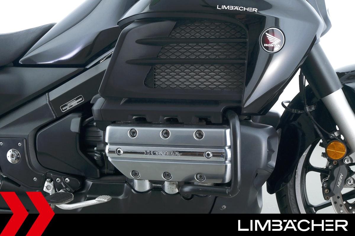 Eine scheckheftgepflegte Honda GL 1800 aus zweiter Hand in gepflegtem Zustand u.a. mit Sturzbügel in schwarz sowie LED-Blinkern und -Rücklicht.
