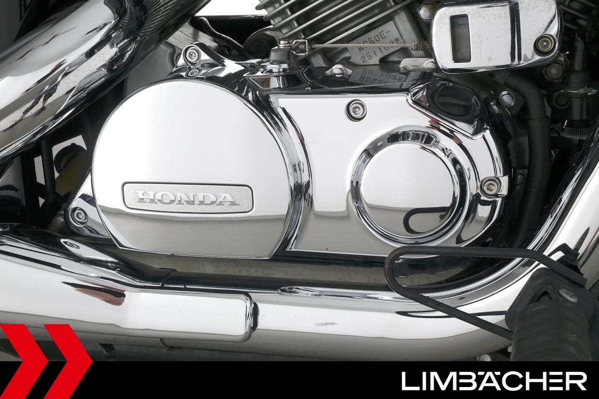 Eine Honda VT 750 CS Shadow aus zweiter Hand in sehr gepflegtem Zustand u.a. mit Originalausstattung sowie Honda-Packtaschen incl.Halter.