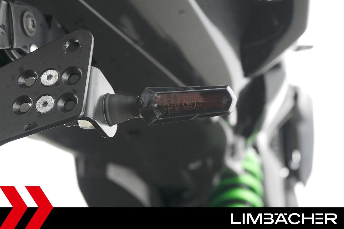 Eine Kawasaki ER-6n in gepflegtem Zustand u.a. mit MIVV-Endschalldämpfer und kurzem Kennzeichenhalter.