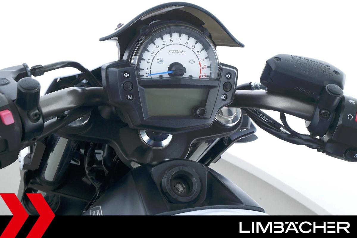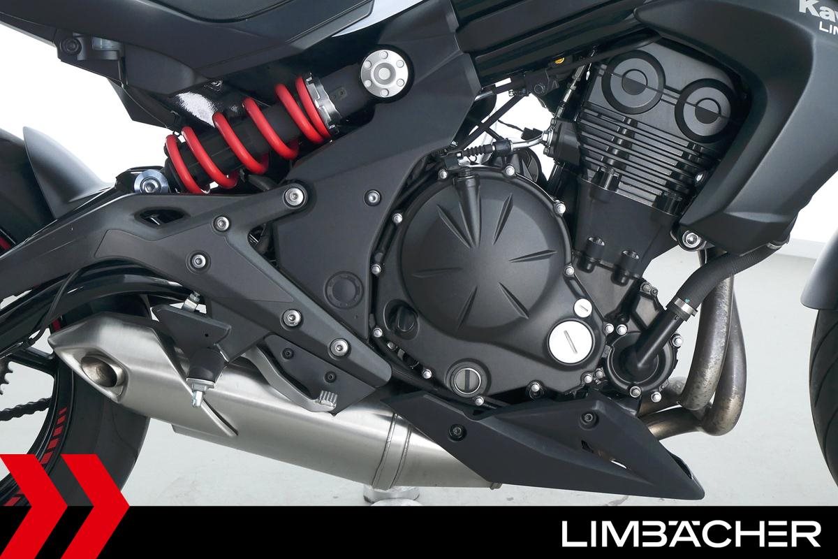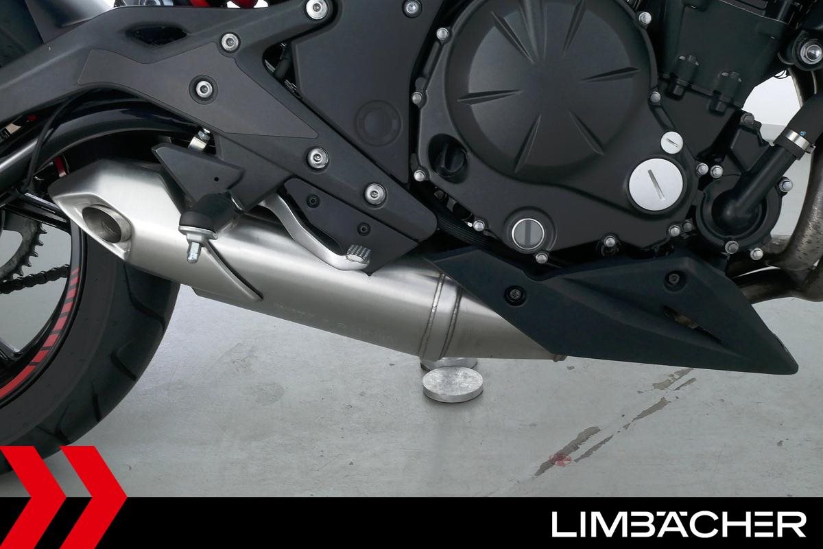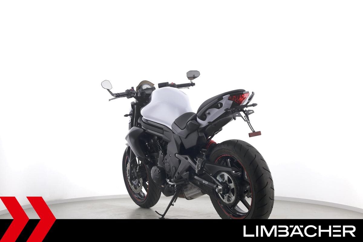 Eine scheckheftgepflegte Kawasaki ER-6n in gepflegtem Zustand u.a. mit kurzem Kennzeichenhalter sowie Highsider-Lenkerend-Spiegeln.