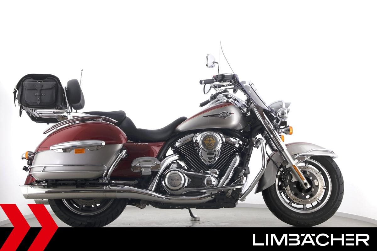 Eine scheckheftgepflegte Kawasaki VN 1700 Classic Tourer in sehr gepflegtem Zustand u.a. mit Kawasaki-Koffersystem gleichschließend sowie großem Touring-Windschild.
