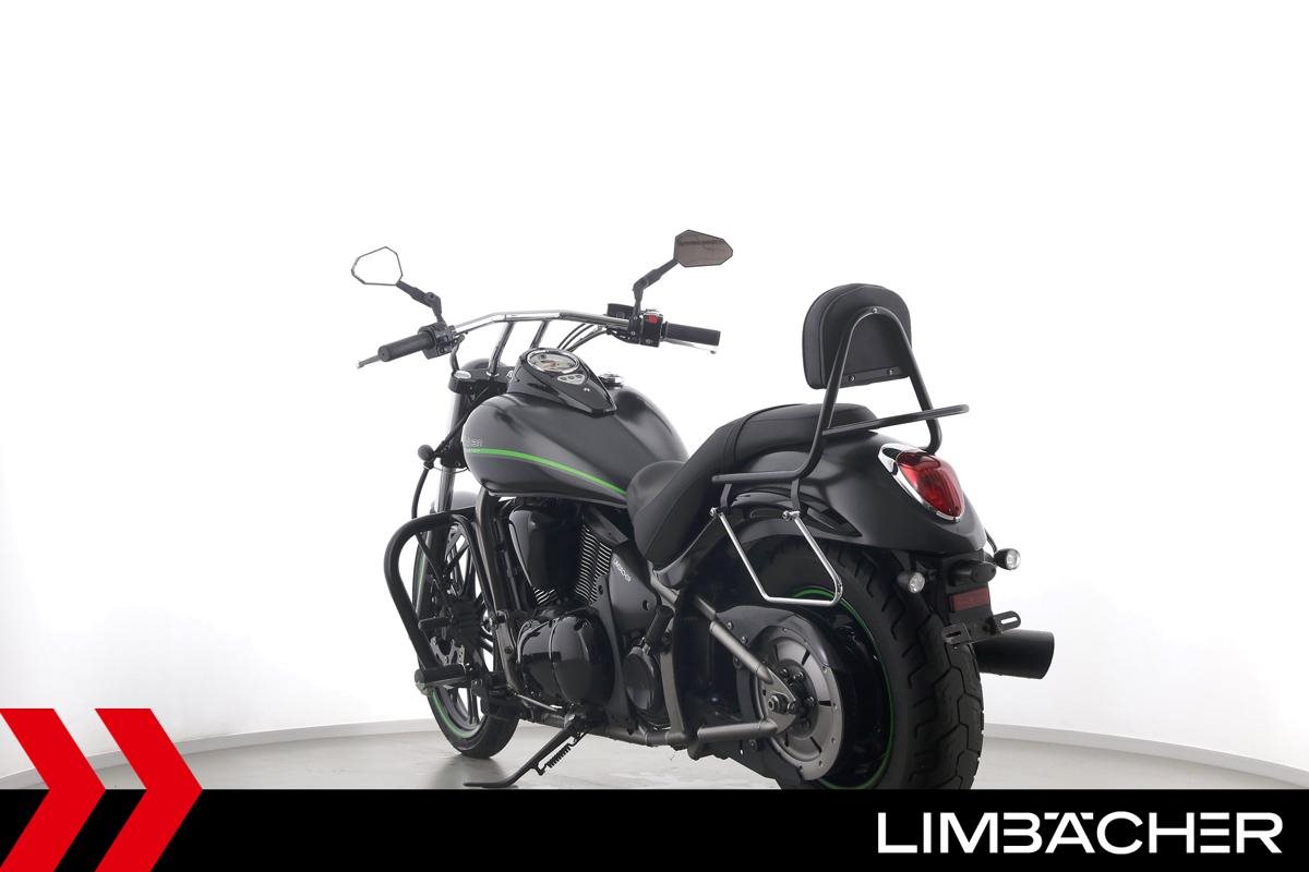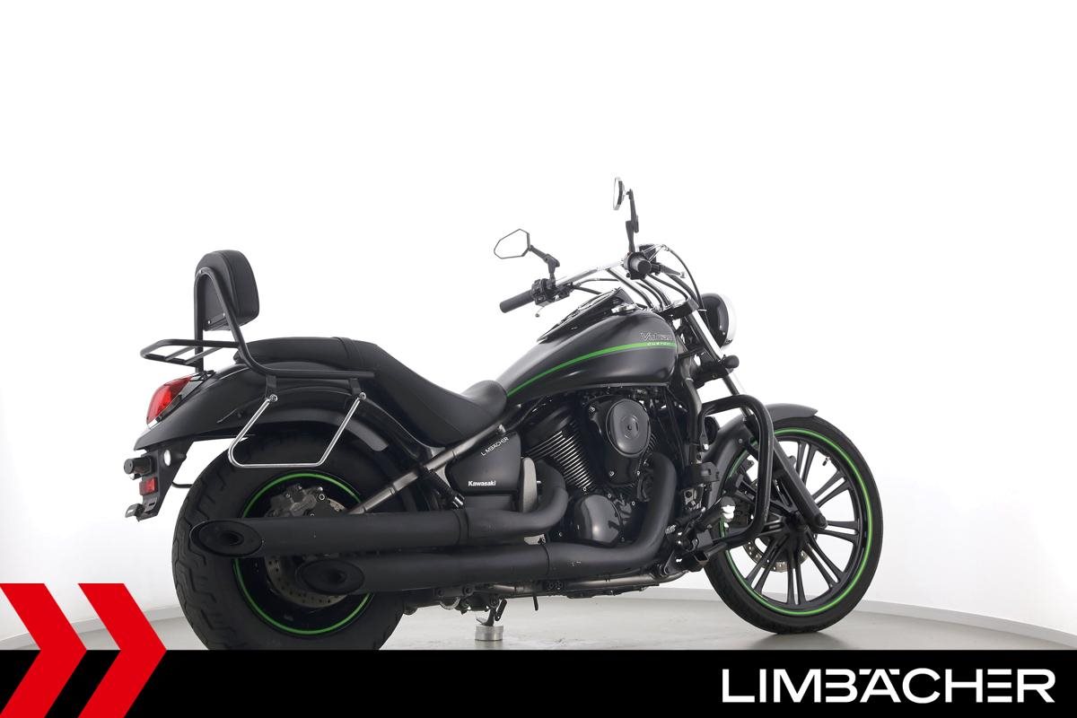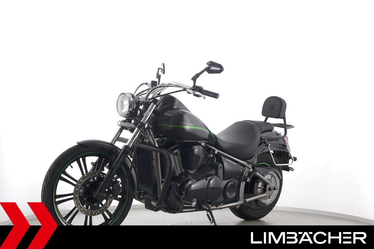 Eine scheckheftgepflegte Kawasaki Vulcan 900 Custom aus zweiter Hand in gepflegtem Zustand u.a. mit Sturzbügel und Sissybar.