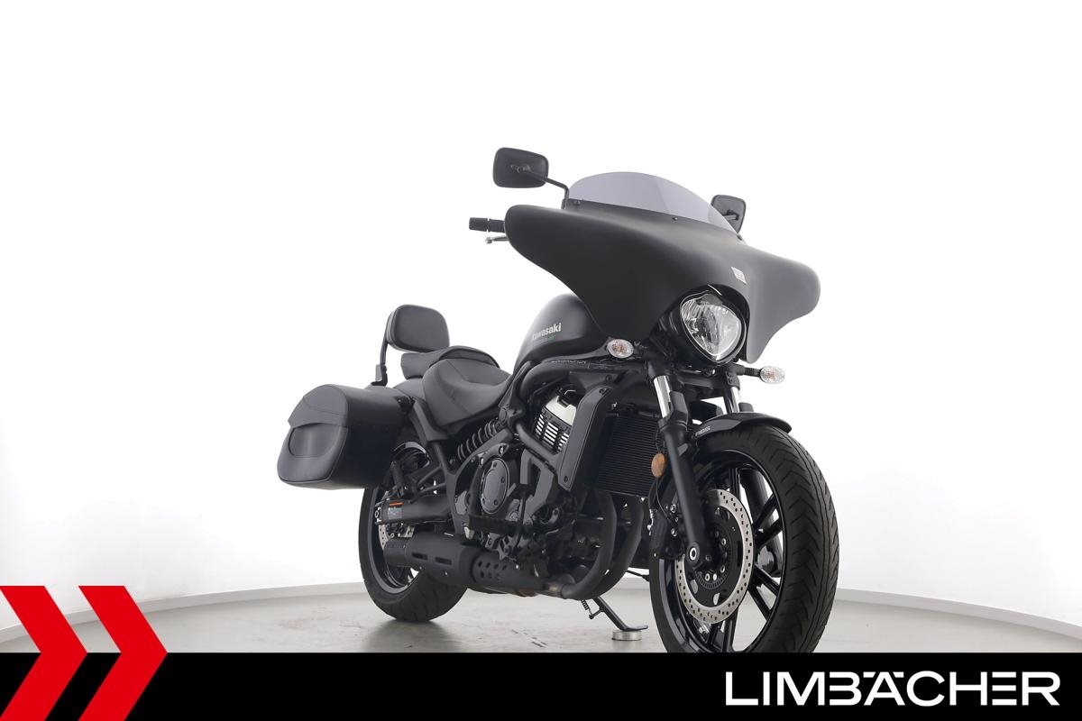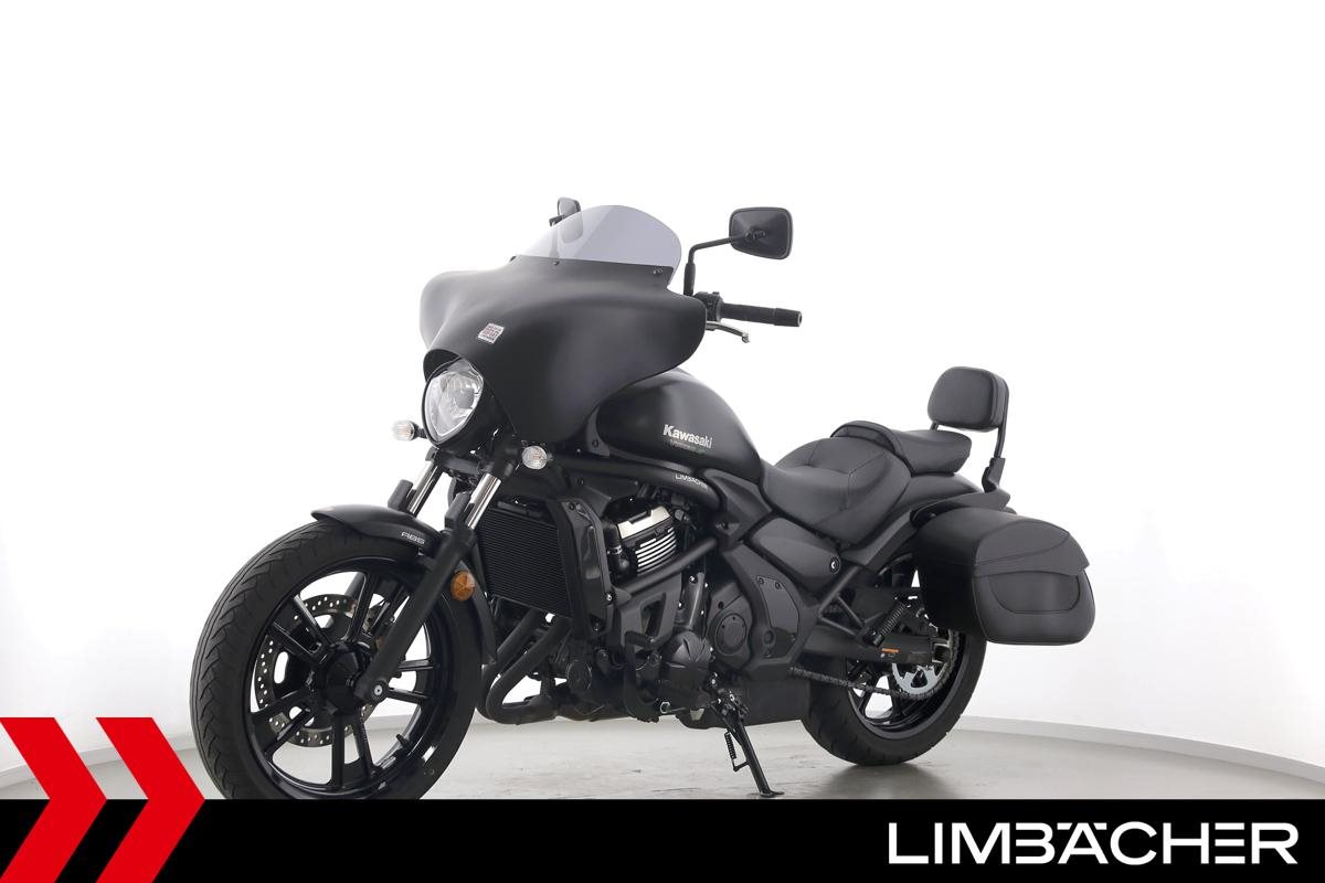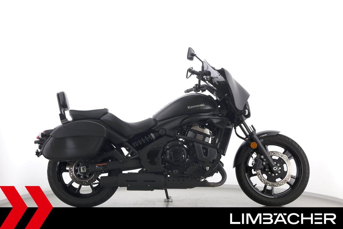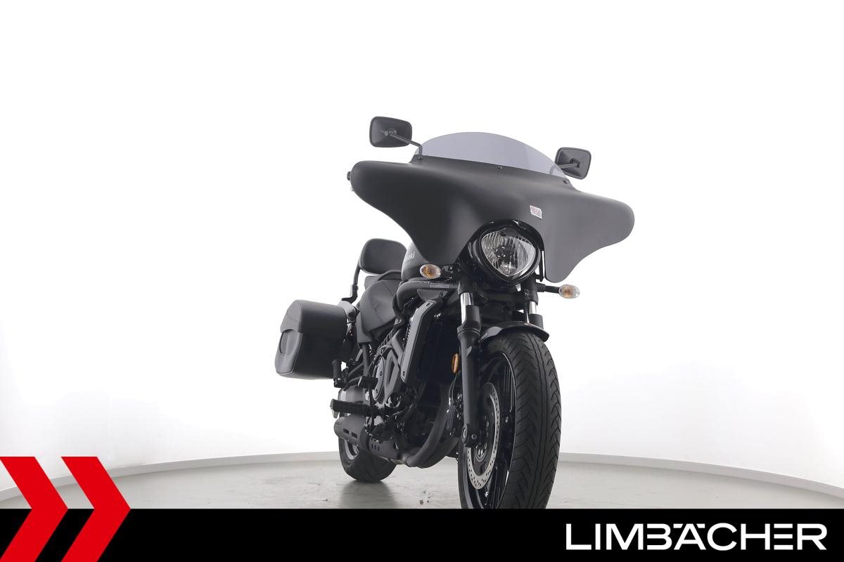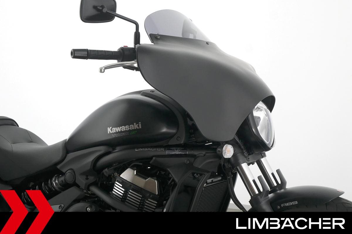 Eine scheckheftgepflegte Kawasaki Vulcan S aus zweiter Hand in sehr gepflegtem Zustand u.a. mit Miller-Endschalldämpfer und Batwing-Verkleidung.