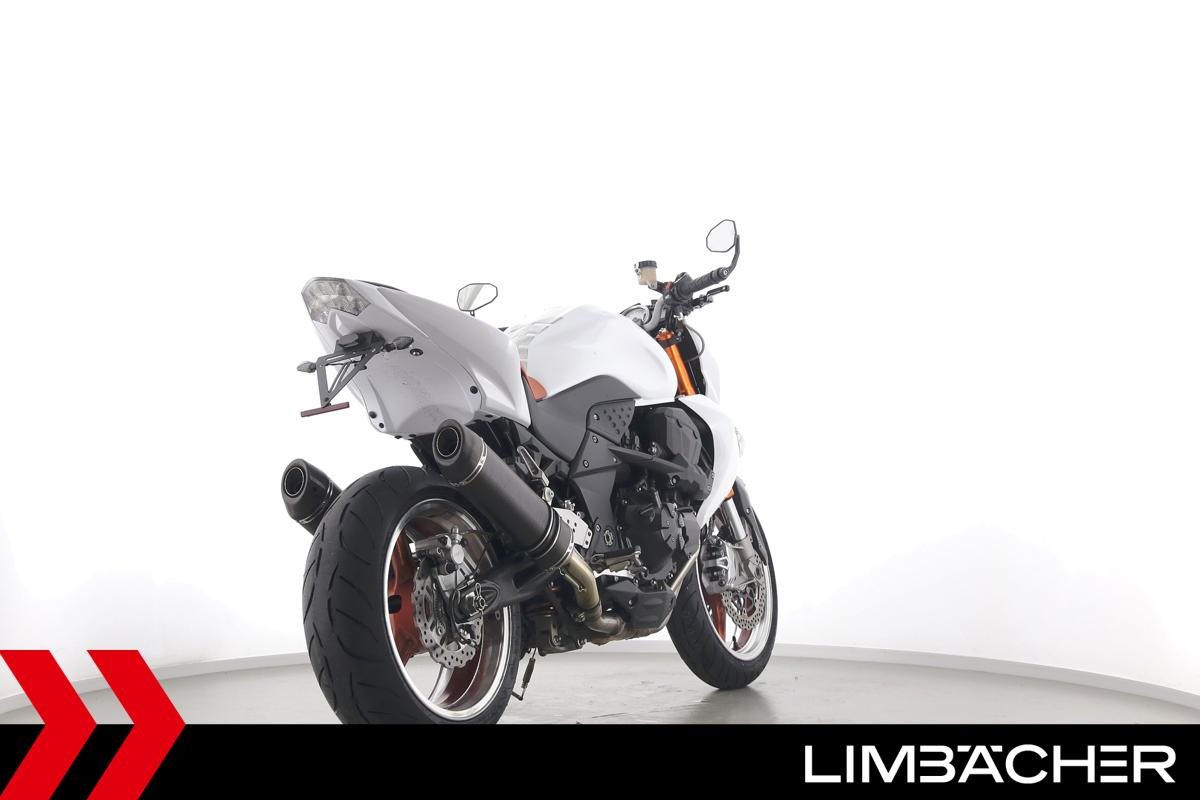 Eine scheckheftgepflegte Kawasaki Z 1000 in gepflegtem Zustand u.a. mit SC-Project-Endschalldämpfer sowie kurzem Kennzeichenhalter.