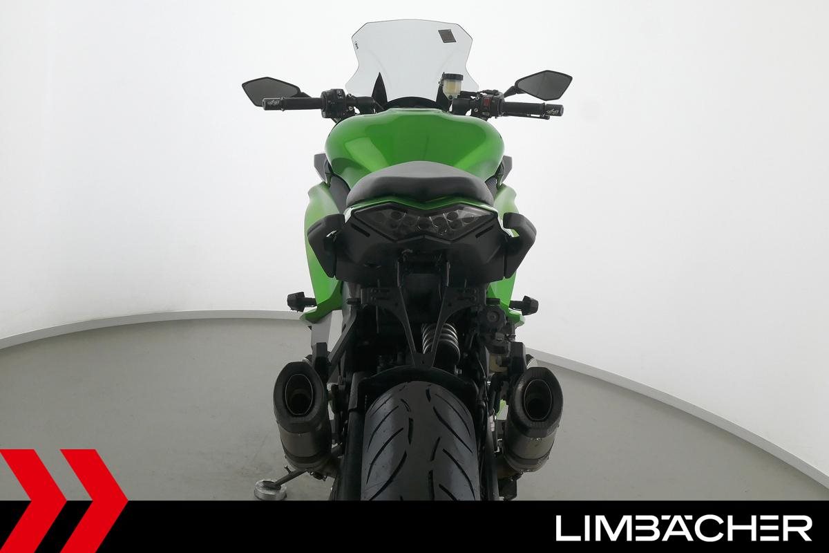 Eine Kawasaki Z 1000 SX in gebrauchtem Zustand u.a. mit LeoVince-Endschalldämpfer sowie kurzem Kennzeichenhalter.