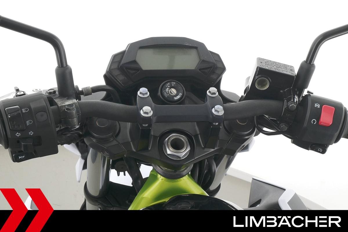 Eine scheckheftgepflegte Kawasaki Z 125 in gepflegtem Zustand u.a. mit Originalausstattung sowie Raximo-Brems- und -Kupplungshebel.