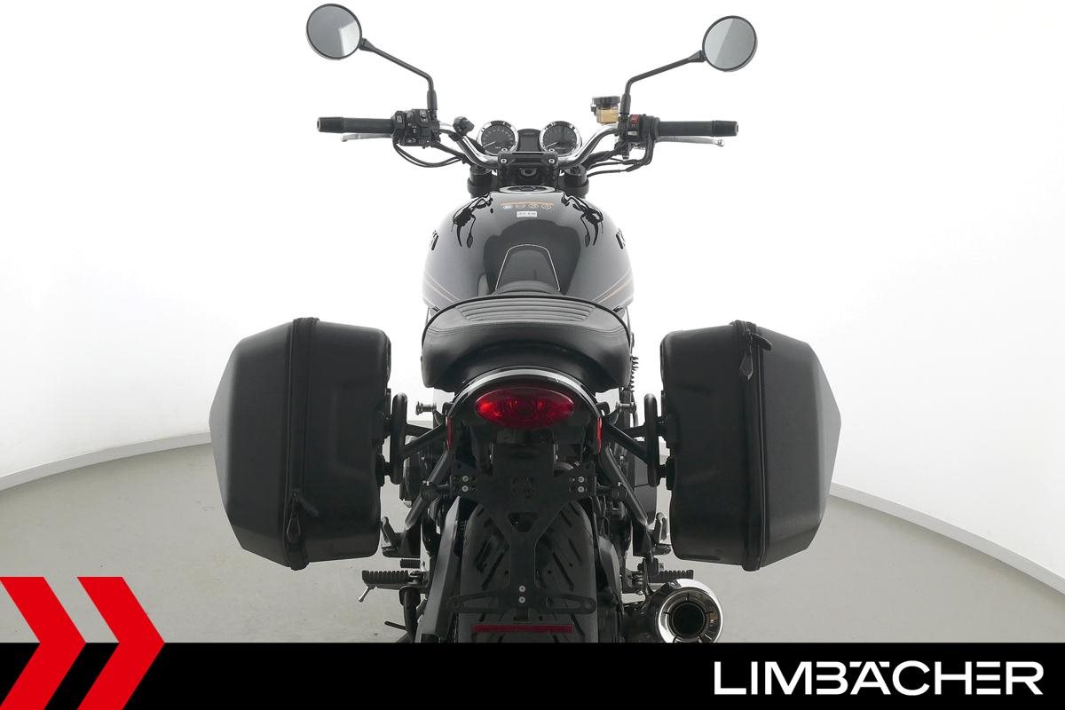 Eine scheckheftgepflegte Kawasaki Z 900 RS in gepflegtem Zustand u.a. mit kurzem Kennzeichenhalter sowie SW-Motech-Softkoffer.