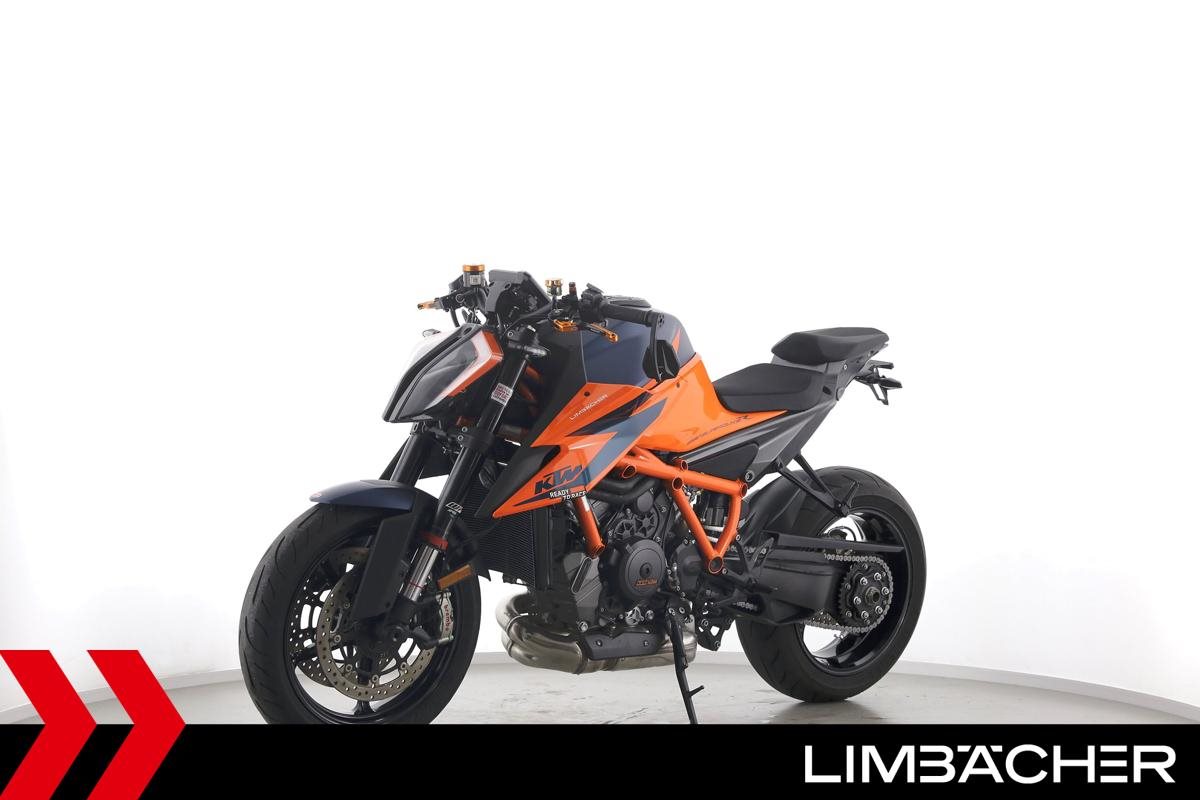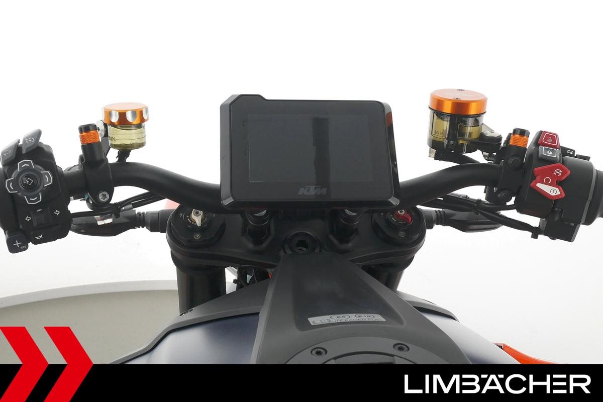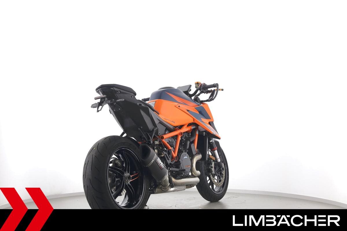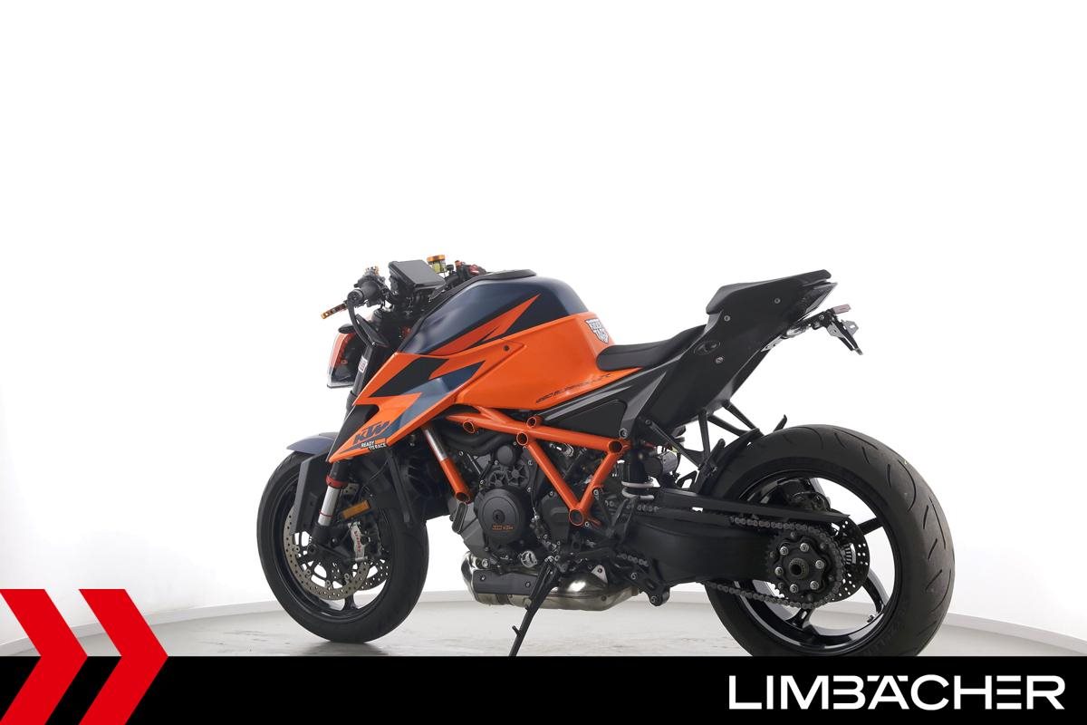 Eine KTM 1290 Super Duke R in sehr gepflegtem Zustand u.a. mit SC-Project-Endschalldämpfer sowie kurzem Kennzeichenhalter.