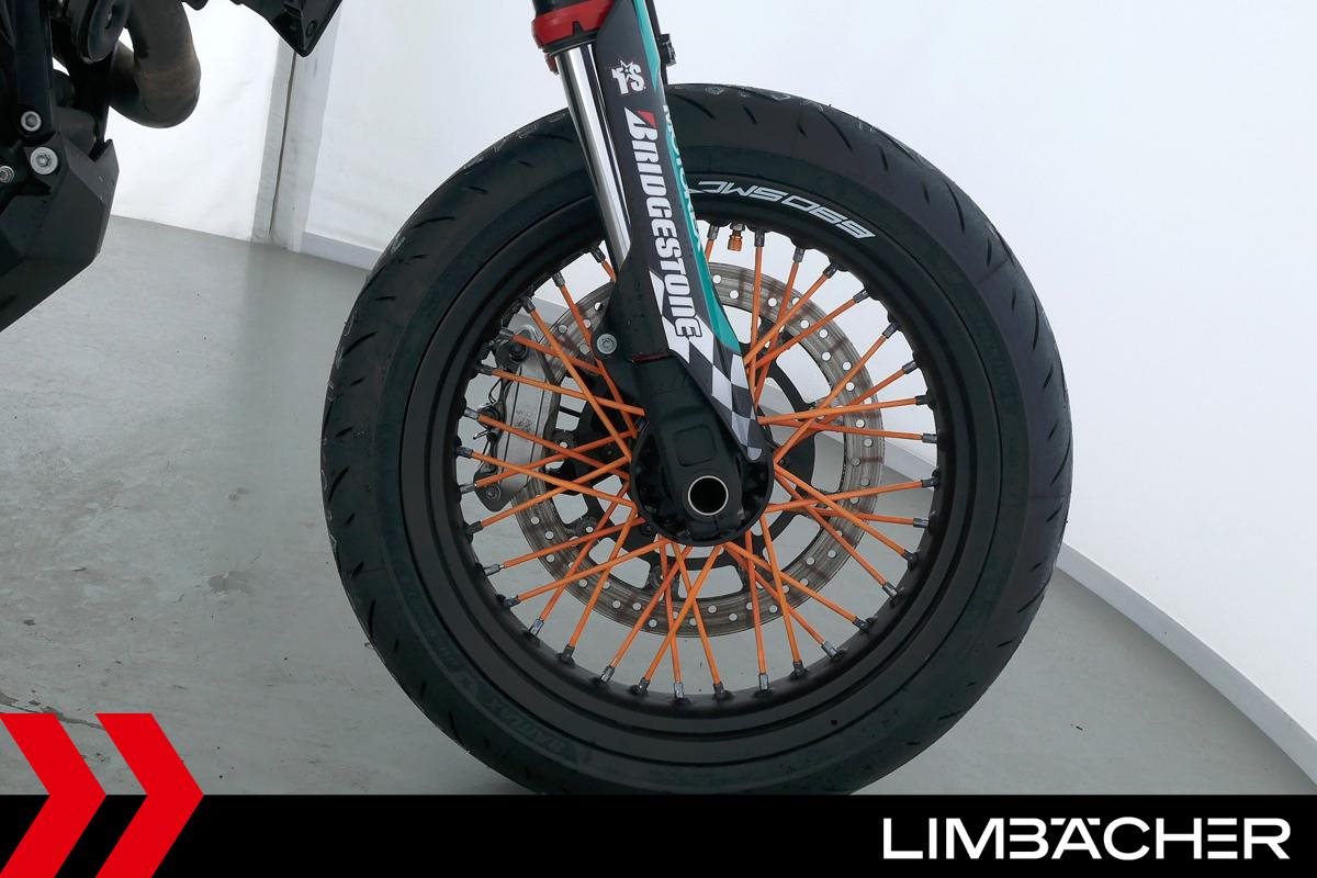 Eine scheckheftgepflegte KTM 690 SMC R aus erster Hand in sehr gepflegtem Zustand u.a. mit kurzem Kennzeichenhalter sowie Raximo-Brems- und -Kupplungshebel.