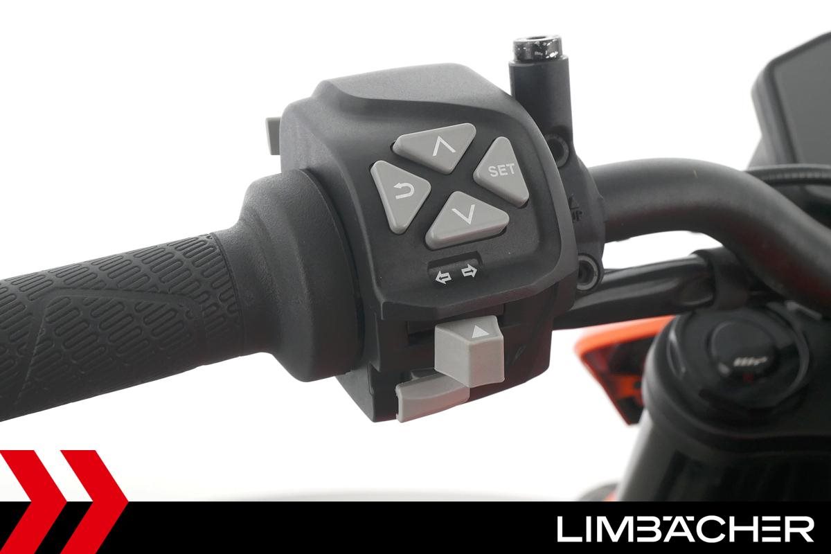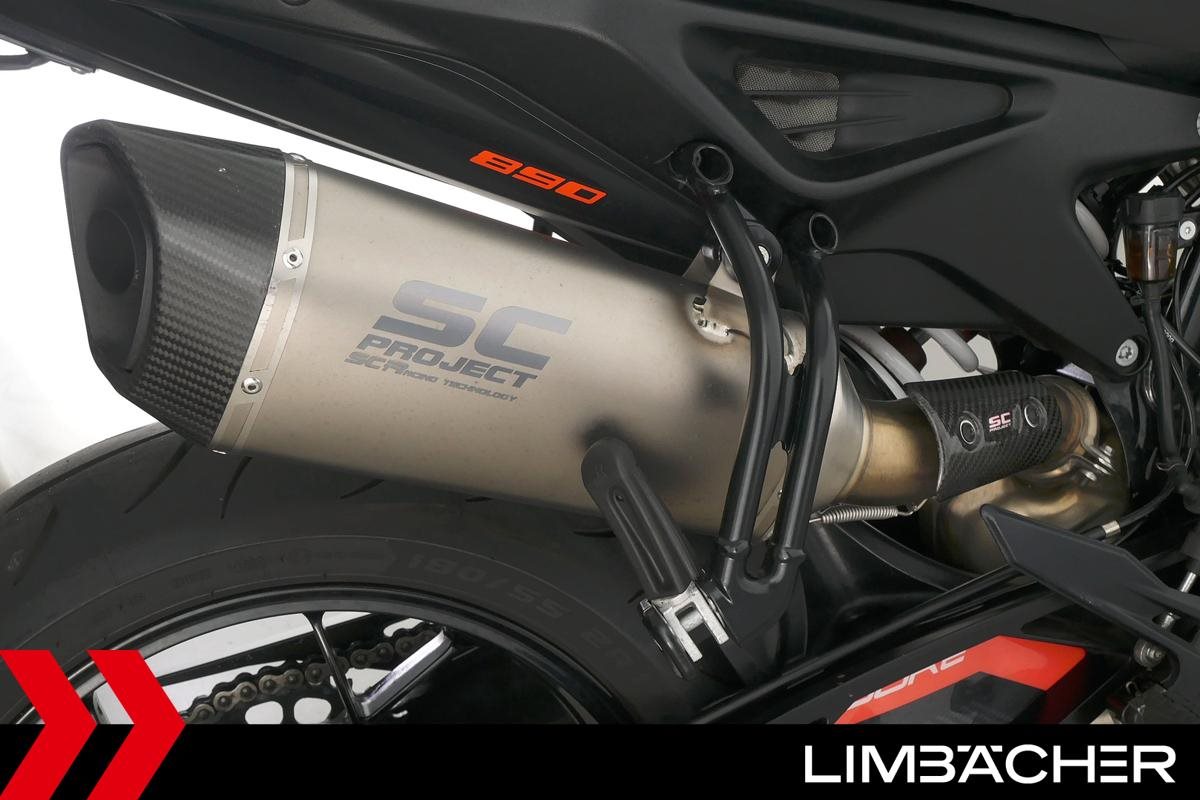 Eine scheckheftgepflegte KTM 890 Duke in sehr gepflegtem Zustand u.a. mit SC-Project-Endschalldämpfer sowie Raximo-Brems- und -Kupplungshebel.