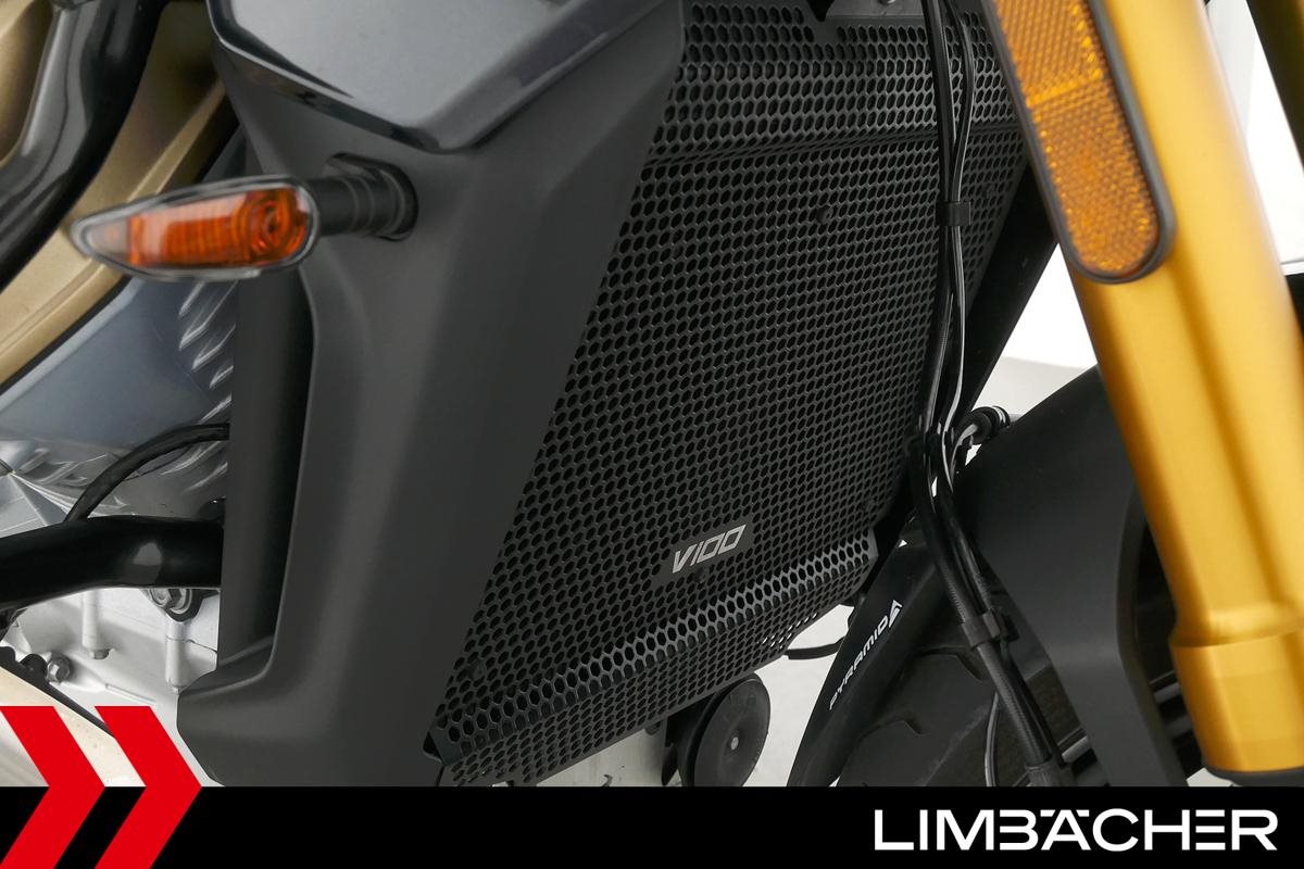 Eine Moto Guzzi V100 Mandello S aus erster Hand in gepflegtem Zustand u.a. mit Öhlins-Fahrwerk sowie MotoGuzzi-Koffersystem gleichschließend.
