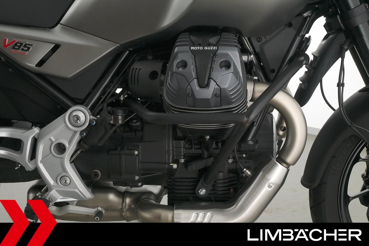 Eine Moto Guzzi V85 Strada aus erster Hand in gepflegtem Zustand u.a. mit MotoGuzzi-Koffersystem und Sturzbügel.