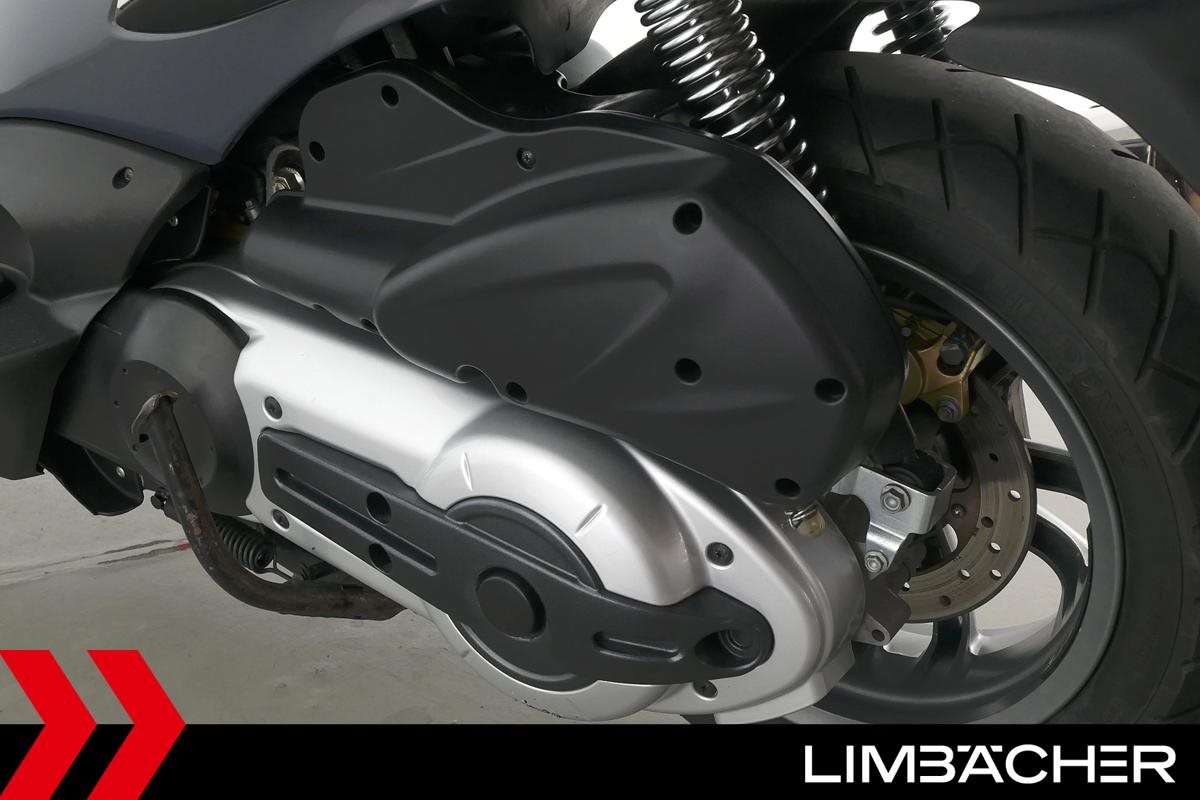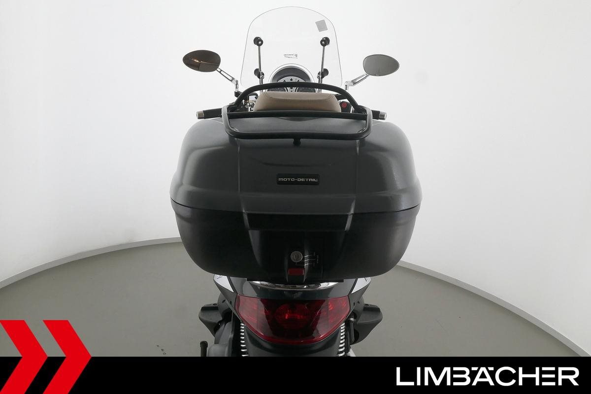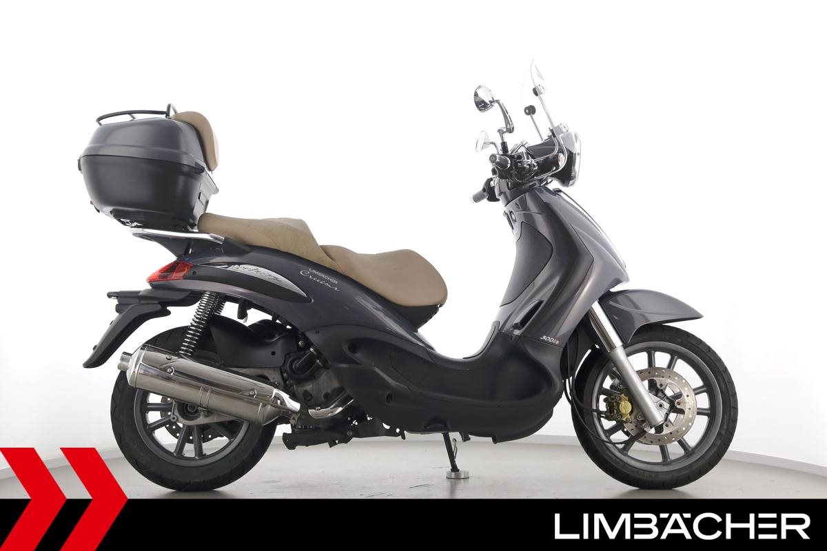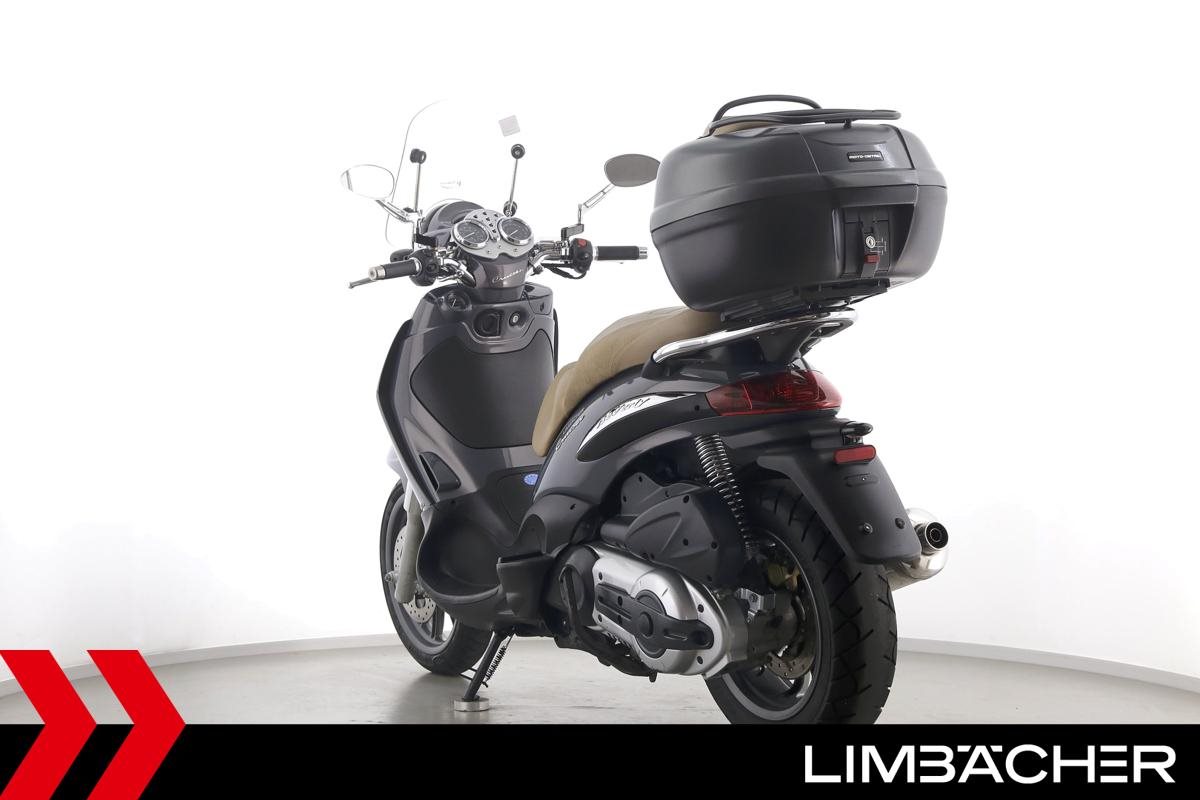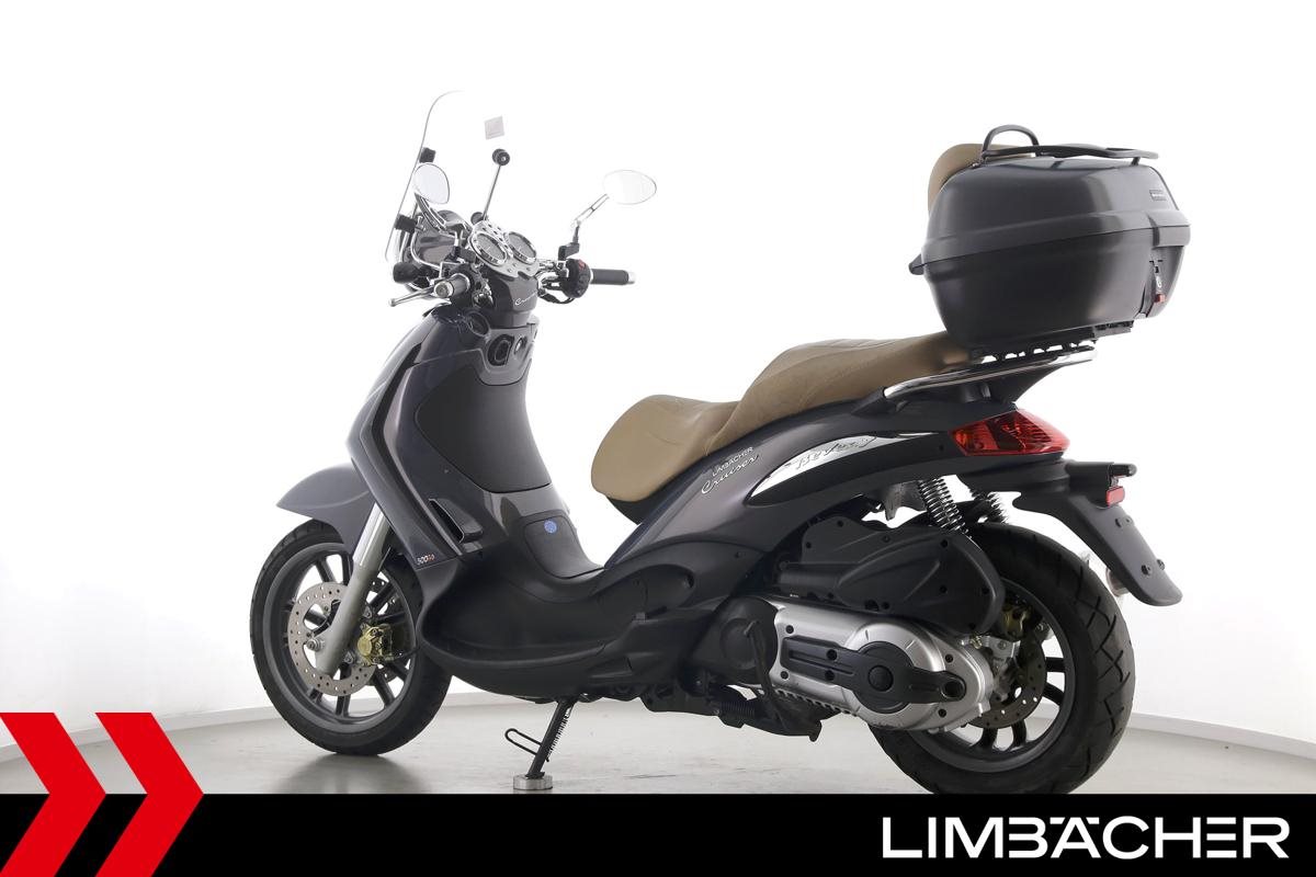 Ein Piaggio Beverly Cruiser 500ie in gepflegtem Zustand u.a. mit grossem Topcase sowie Piaggio-Scheibe.