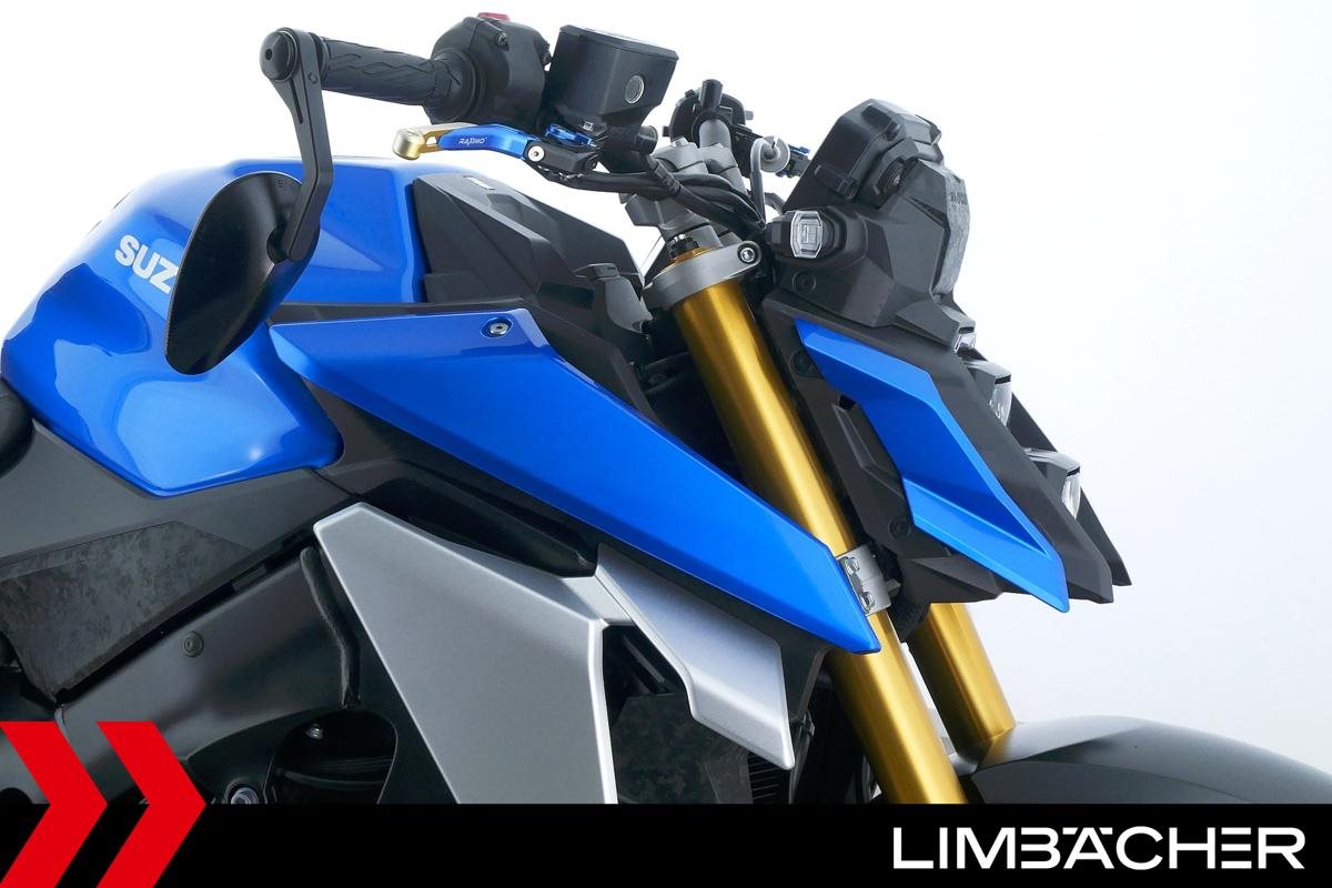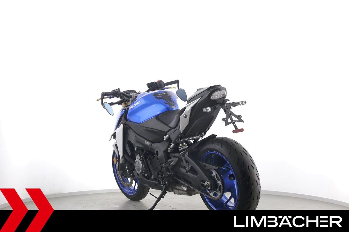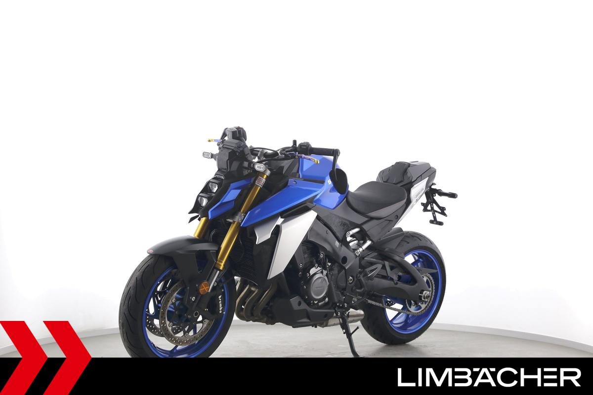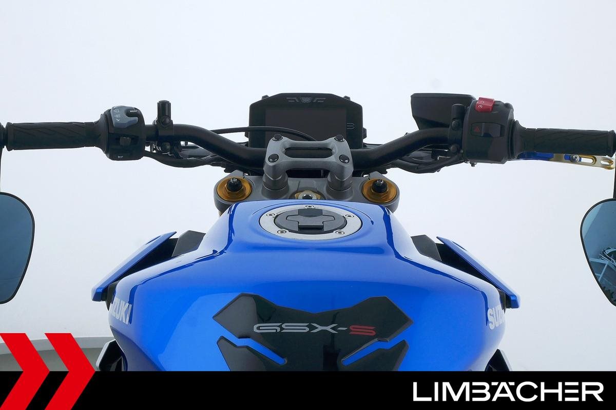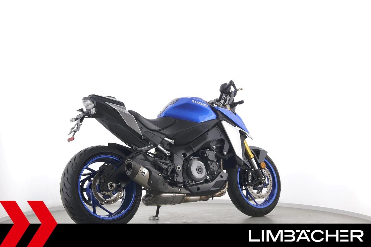 Eine scheckheftgepflegte Suzuki GSX-S 1000 aus zweiter Hand in gepflegtem Zustand u.a. mit Akrapovic-Endschalldämpfer sowie Raximo-Brems- und -Kupplungshebel.