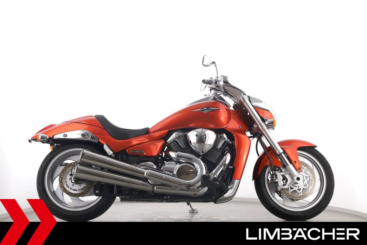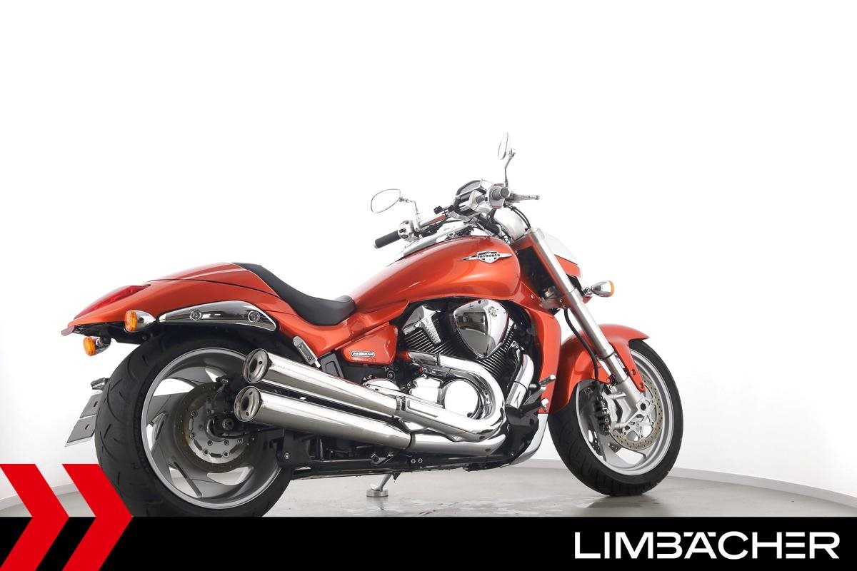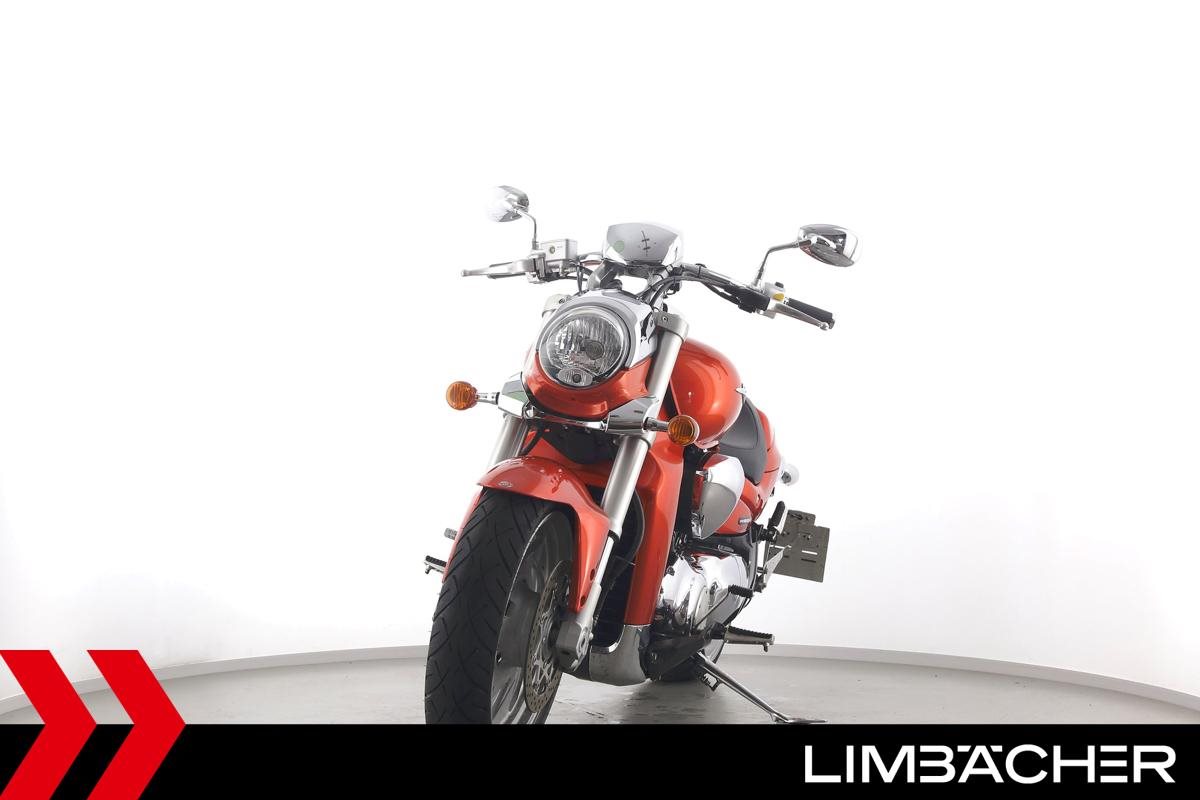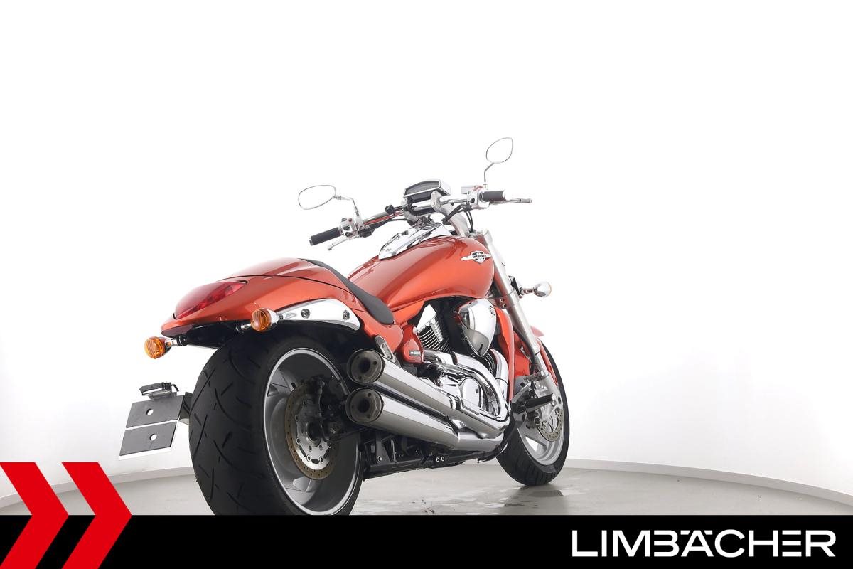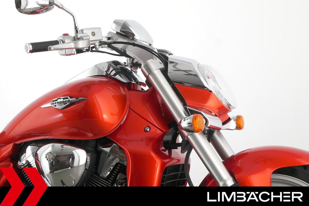 Eine Suzuki VZR M 1800 R Intruder in gebrauchtem Zustand u.a. mit Thunderbike-Endschalldämpfer sowie seitlichem Kennzeichenhalter.