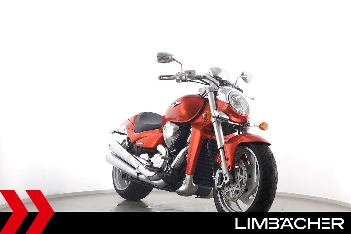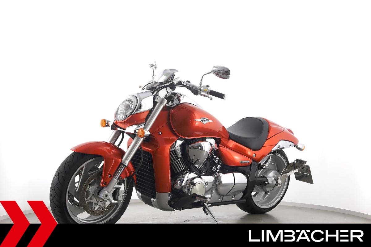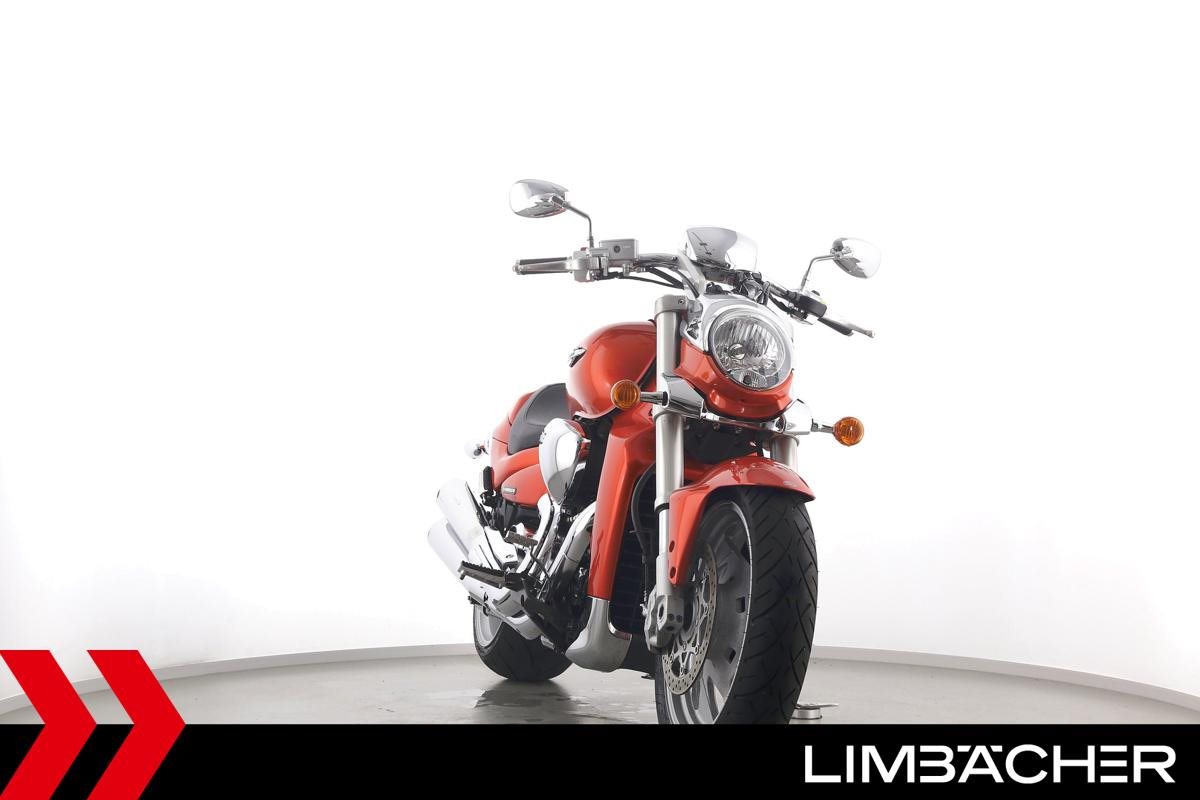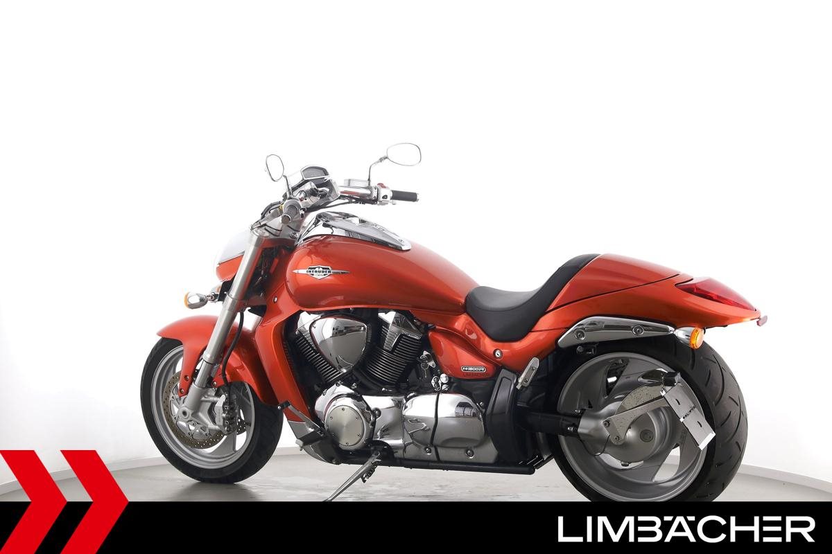 Eine Suzuki VZR M 1800 R Intruder in gebrauchtem Zustand u.a. mit Thunderbike-Endschalldämpfer sowie seitlichem Kennzeichenhalter.